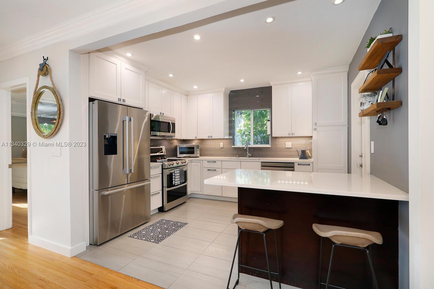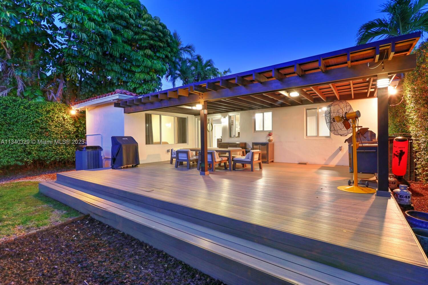 This stunning home in Coral Gables has undergone a modern renovation, making it an ideal choice for discerning buyers. The property includes 3 bedrooms & 2 bathrooms, & is located on a peaceful cul-de-sac. The interior features a recently updated kitchen & bathrooms, as well as hardwood & tile floors, hurricane impact windows, & a 2022 Trane A/C unit equipped with smart sensors, controls & UV light air purifier. In addition to a new electrical panel & tankless water heater, the home comes with brand new appliances, including a washer & dryer. The property's beautiful landscaping in the front & back yards adds to the sophisticated appeal, with the backyard featuring a new pergola & outdoor deck fitted with smart lights, which expands the outdoor living space by an additional 700 sqft.