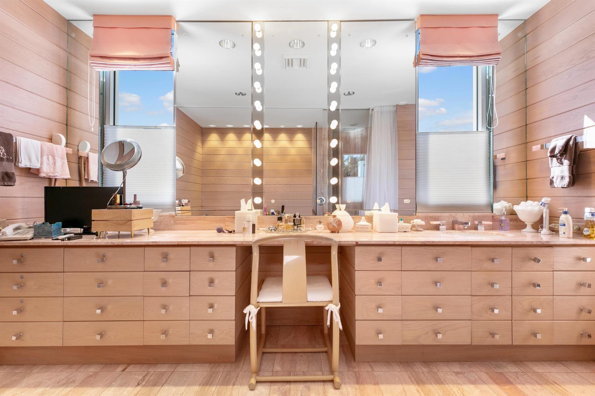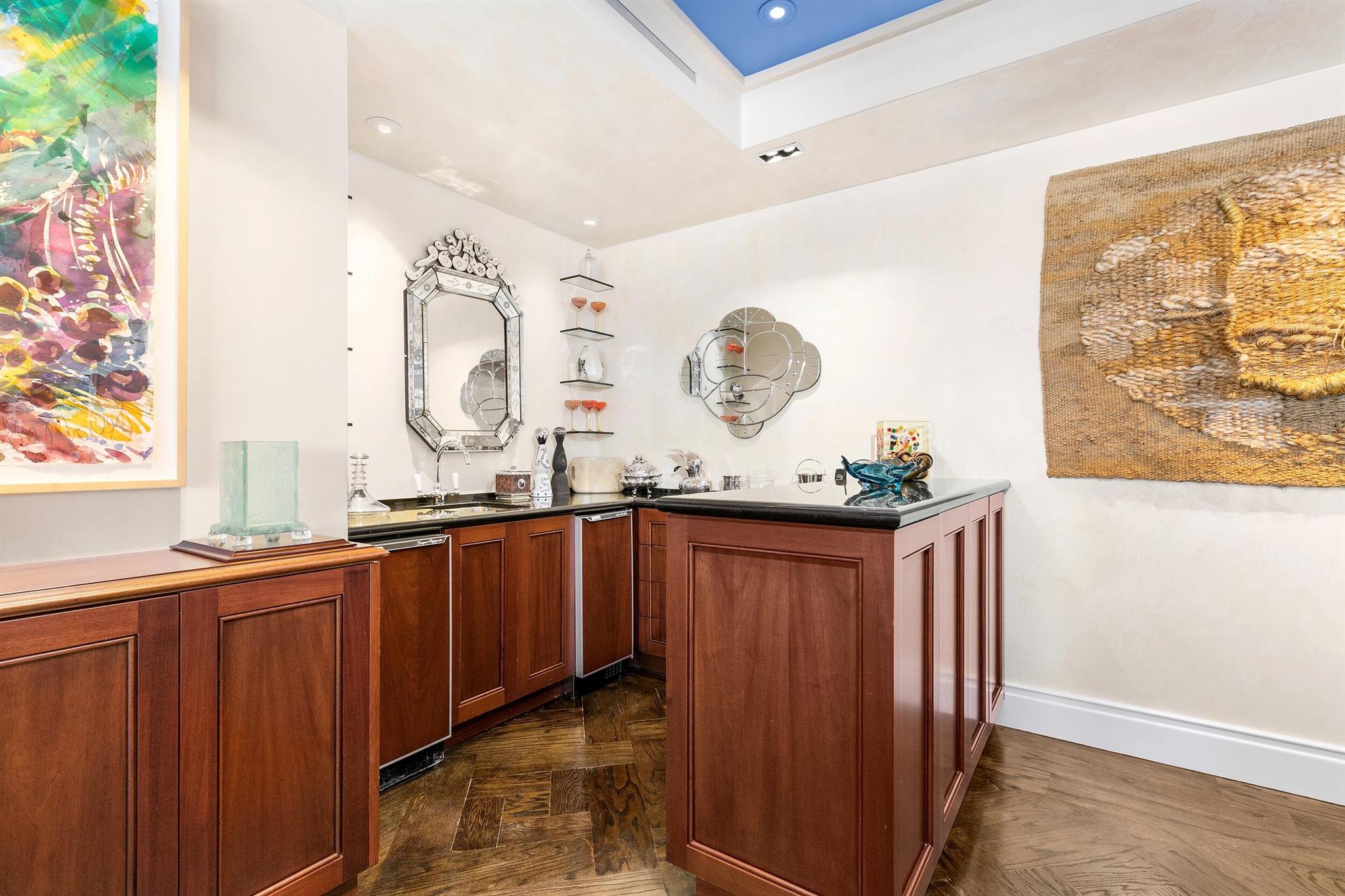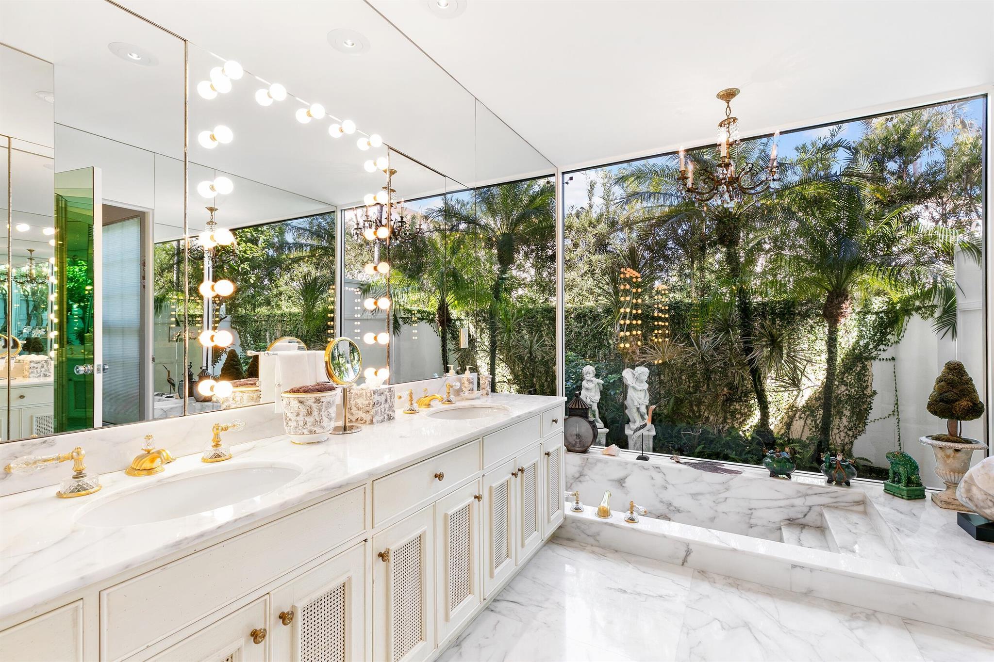 Stunning Contemporary Regency with dramatic views of the Intracoastal waterway and the motor yachts at Rybovich Marina. Excellent open floor plan perfect for indoor and outdoor entertaining. Features gracious living room, formal dining room, sunny and bright interior loggia. Family room with entertaining bar and office with beautiful views of the lake. Elevator leads to expansive second floor primary suite with sprawling, oversized terrace and dual baths. Additional highlights include chef's kitchen, staff bedrooms, and 2-car garage. Beautiful outdoor spaces with pool, Intracoastal dock, and access to the Lake Trail.