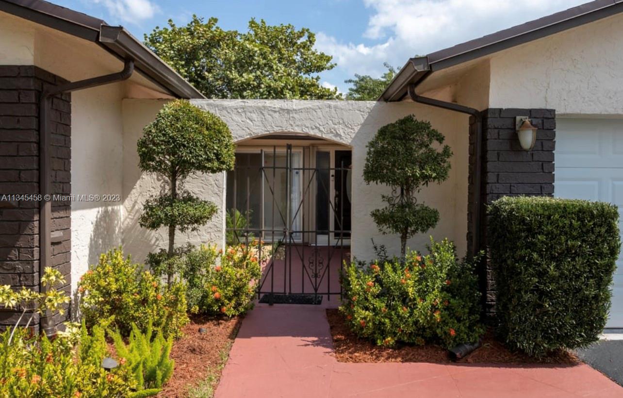 This home is located in one of the most sought-after neighborhoods in Sunrise. You will fall in love with the uniqueness of this house. After walking through a gated entranceway, you enter a bright and open floor plan with your kitchen, living & dining room all flowing together. The living space transitions into a screened in porch and a beautiful backyard oasis, boasting a saltwater pool. The entire yard is perfect for both relaxing and entertaining. Your first 3 bedrooms are surrounded by floor to ceiling windows and natural light taking you to the main ensuite bedroom, with its own access to the patio/pool area. The home is located on the end of a quiet cul-de-sac, close to schools, parks, & Sawgrass Mall with great shopping, dining & entertainment! LOW HOA!