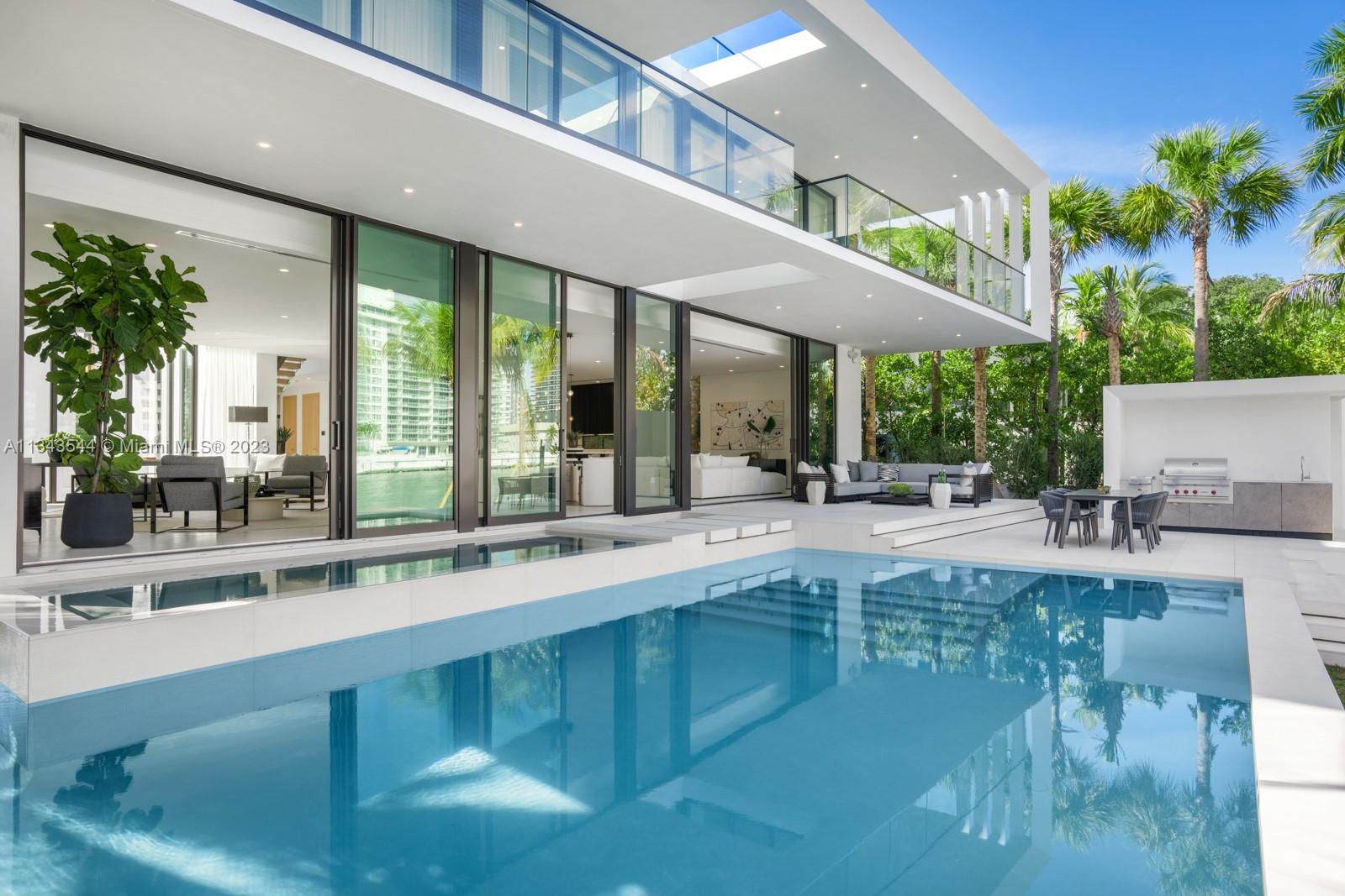 Step Inside With Me! 5777 is the only brand new waterfront home available on the esteemed Pinetree Drive. Designed with modern lines and warmth, the light-filled foyer’s striking 26ft ceilings and floating white oak staircase lead you to a great room for today’s style of living. With water all around, benefit from dual Mia Cucina kitchens, show & chef, featuring Calacatta stone and Miele/Wolf appliances. The 2nd floor, characterized by white oak planks and floor-to-ceiling ESW windows, is home to 6 versatile bedrooms and a media lounge. Entertain on the water by the 37ft long pool, soak in the oversized hot tub, and enjoy a summer kitchen + full cabana bath + new 76’ Seawall. More noteworthy features: chilled wine room, custom bar, elevator, Savant System, 3-car garage and rooftop terrace.
