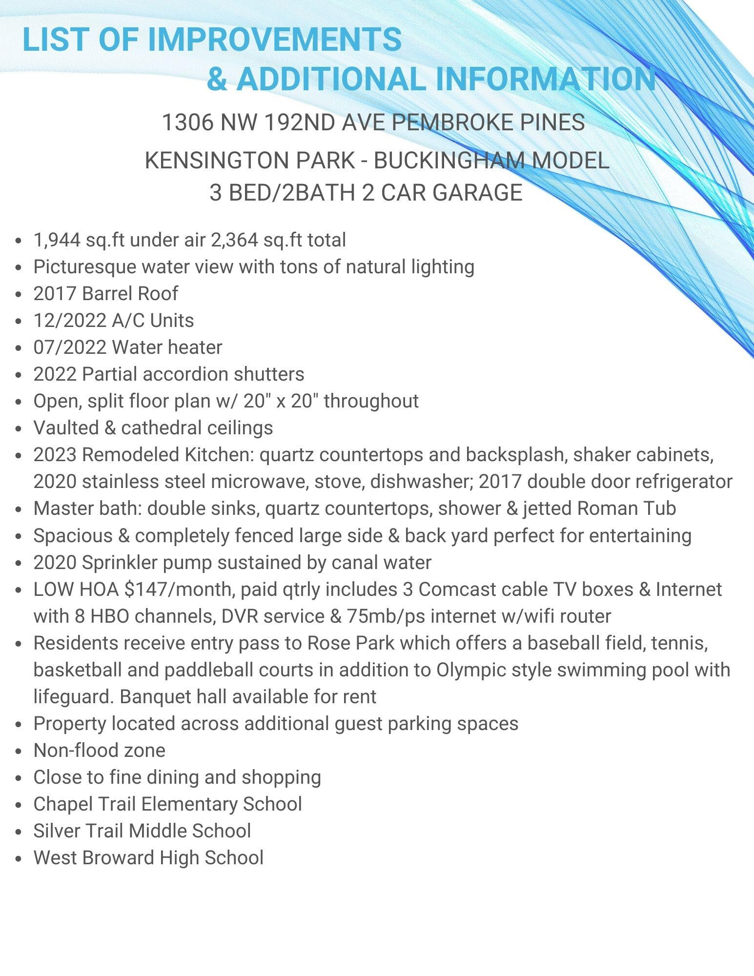 Bright, open & airy 3 bedroom, 2 bathroom, 2 car garage, split floorplan in highly sought Kensington Park at Chapel Trial! Enjoy vaulted ceilings with arched windows as you view plenty of wildlife in the picturesque, huge flowing canal right in your own private, fenced backyard - perfect for entertaining! 2017 roof; 2022 A/C; 2022 partial accordion shutters; 2022 water heater; sprinkler system sustained by canal water; 2023 kitchen with quartz countertops, backsplash, shaker cabinets and newer stainless steel appliances. Master bedroom welcomes you with water view, cathedral ceilings, large master bath with quartz countertops, double sinks, shower & jetted Roman Tub. 20''x20'' tile flooring throughout. LOW HOA $147/month, paid qtrly, includes 3 Comcast cable