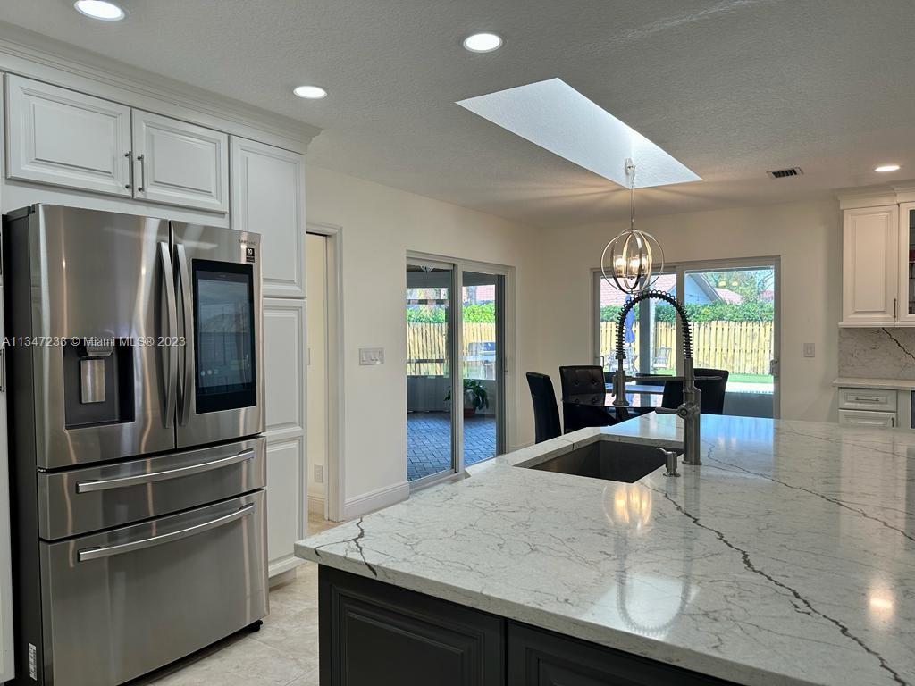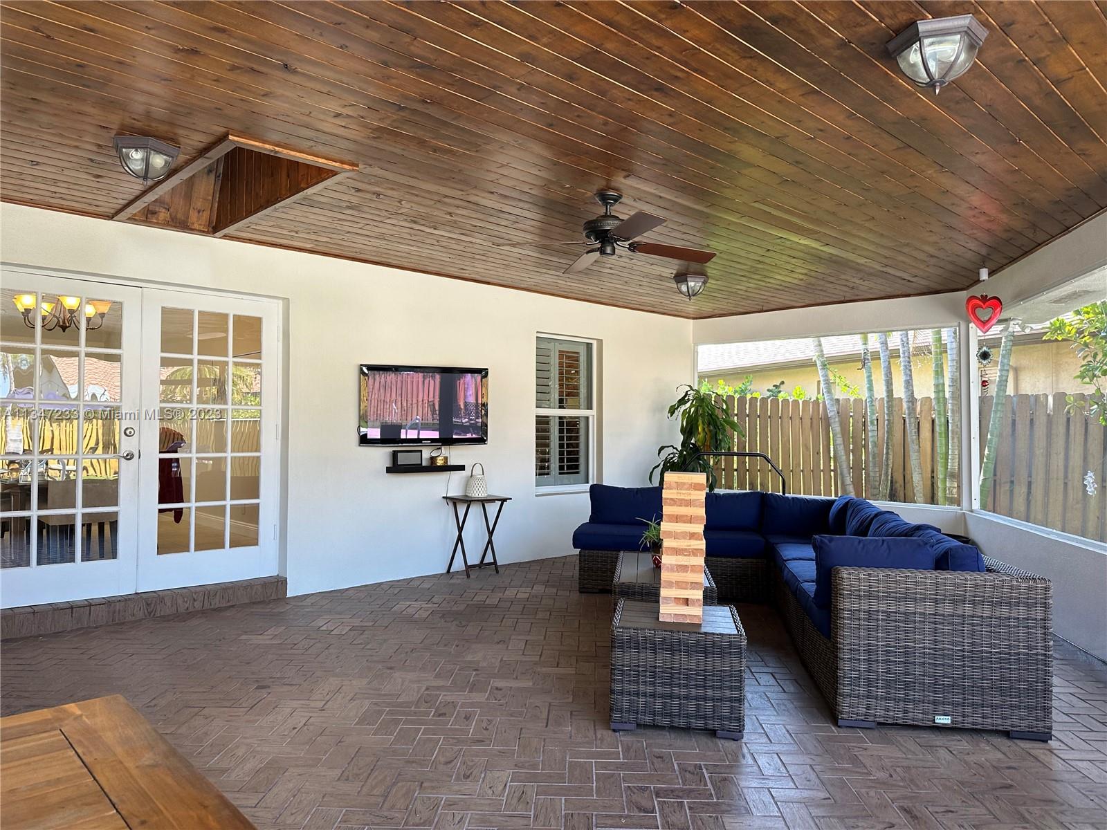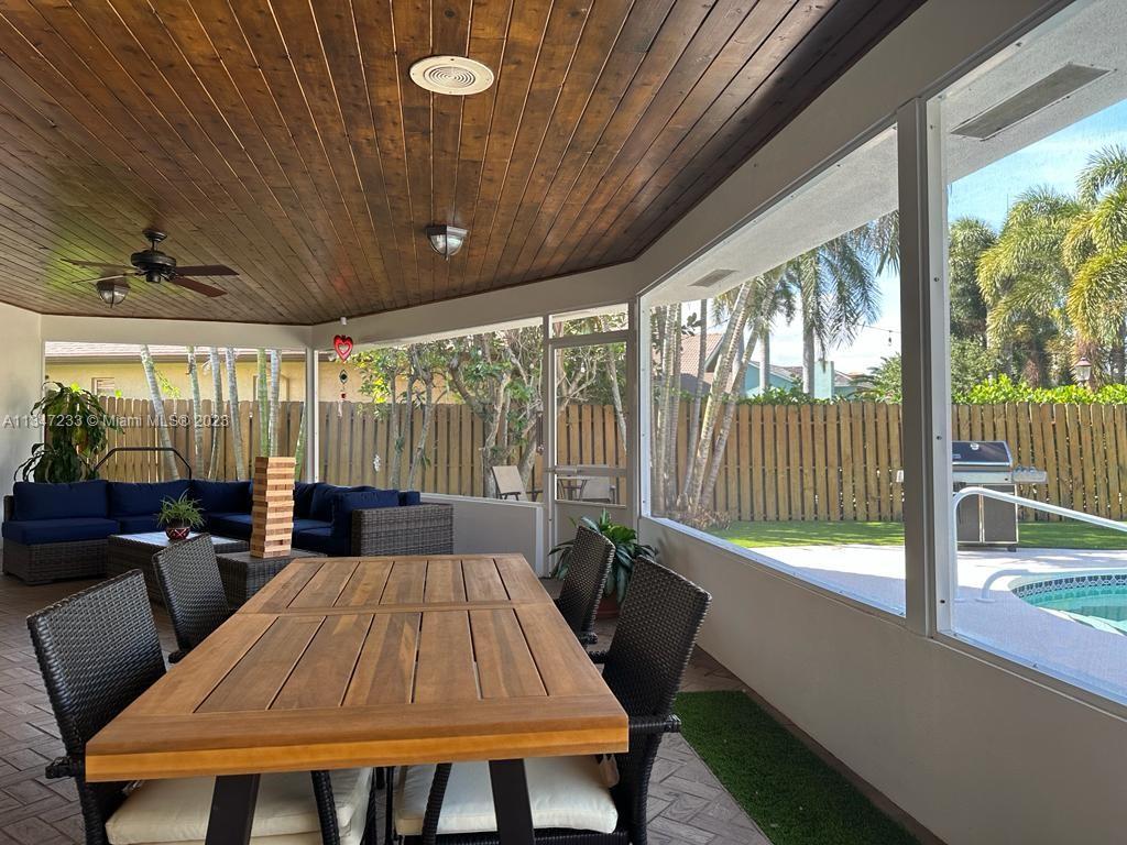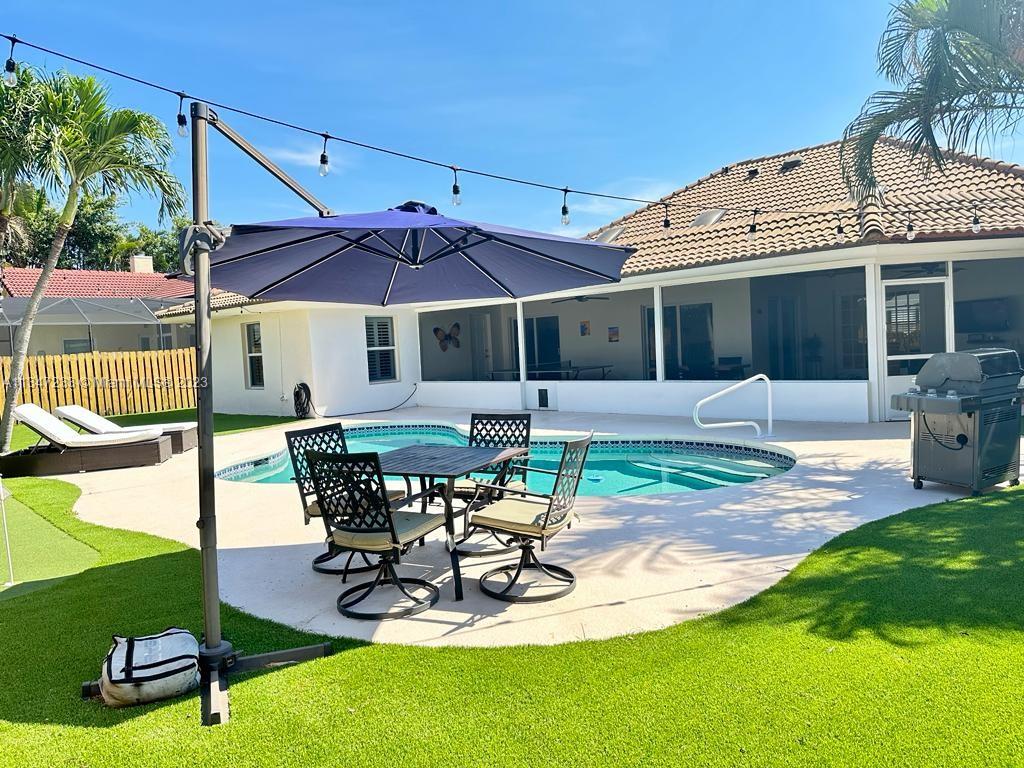This stunning single-story, 3-bedroom, 2-bath concrete block structure (CBS) pool home with room to add a den/office under the existing roof and a 2-car garage is a rare find located in the highly sought-after gated community of Frenchmen's Landing. The home's prime location is less than 5 minutes to the beach and shopping mall and close to 5-Star restaurants. The backyard is one of the largest yards in the neighborhood with new turf. Hurricane impact sliding glass doors and windows. The house is in pristine condition, boasting an open kitchen into great room with new appliances and quartz countertops. Split bedroom floor plan, formal dining and living rooms, tile and wood laminate flooring, and a laundry room with ample storage.
