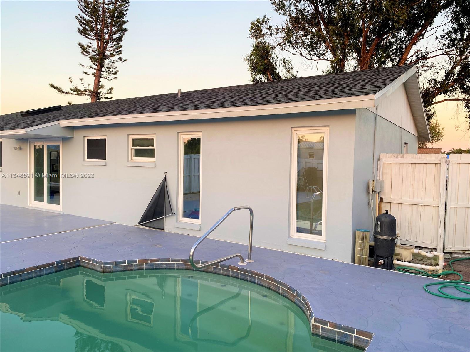 Everything New!!! full remodeled 3 bedrooms 2 bathrooms pool house, 2023 new roof, 2021 AC, granite countertop kitchen, brand new stainless steel kitchen appliances, new bathrooms, come and see!!!!! New Tiles throughout recently installed, freshly painted. Attached garage, 7,500 feet lot, great space for parking large vehicles, RVs, trucks, boats and trailers. Amazing pool. This is the house of your dreams, call soon, it won't last!!!! Property is vacant, call for showings. We accept FHA and conventional.