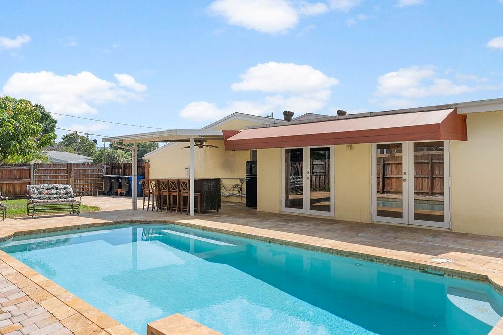 This Resort Style Pool Home In Flamingo Park Is Meant For Entertaining! Very Private & Situated On A Corner Lot! Highlights Include Covered Patio Area w/Connections For Outdoor Kitchen, Salt Water Pool w/Waterfall, Heater & Spa features. Chef Ready Kitchen Boasts GAS Range, Oversized Island w/Pendant Lighting, Recessed LED Lighting, SS Appliances, White Cabinets & Marble Countertops. Spacious Family, Dining & Living Rooms. 2 Master Suites With Modern Bathrooms, Garage, Laundry Rm, Tankless Gas WH, Neutral Tile Floors, A/C 2021, Parking Possibly For Boat Or RV, Extra Storage Sheds, Sprinkler & Pool Pump Recently Replaced, Electrical Panels = Main 2017, Second 2018, Roof 2007, Impact Windows & Shutters, Well Water Sprinkler. Close to Beaches, Downtown, Airport, Public Boat Ramp & More!