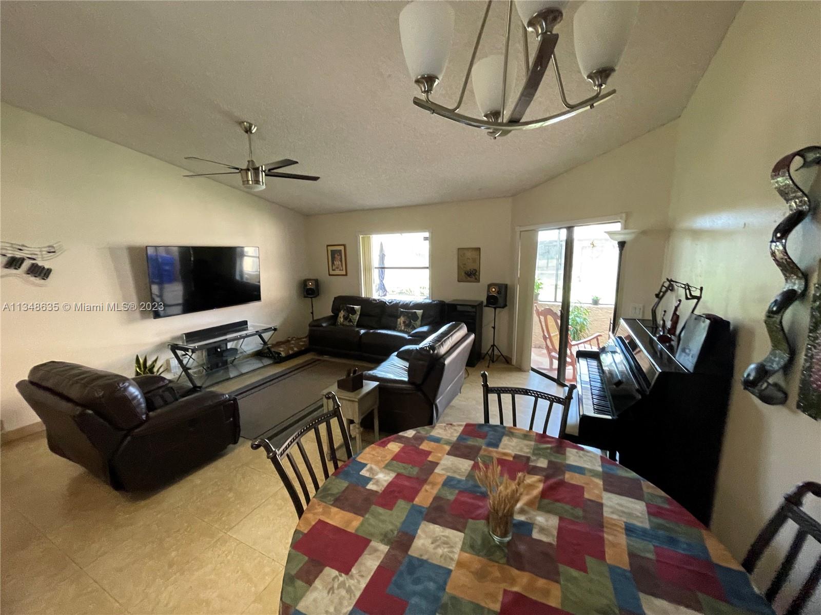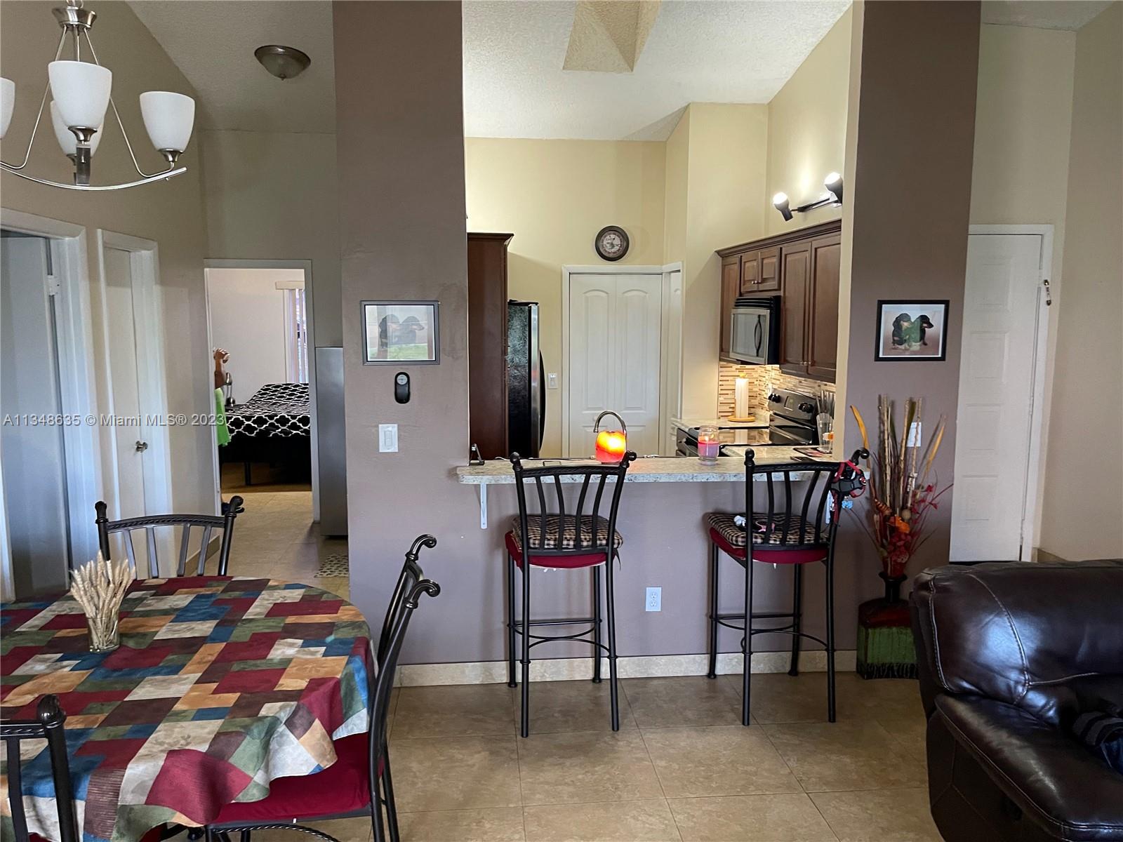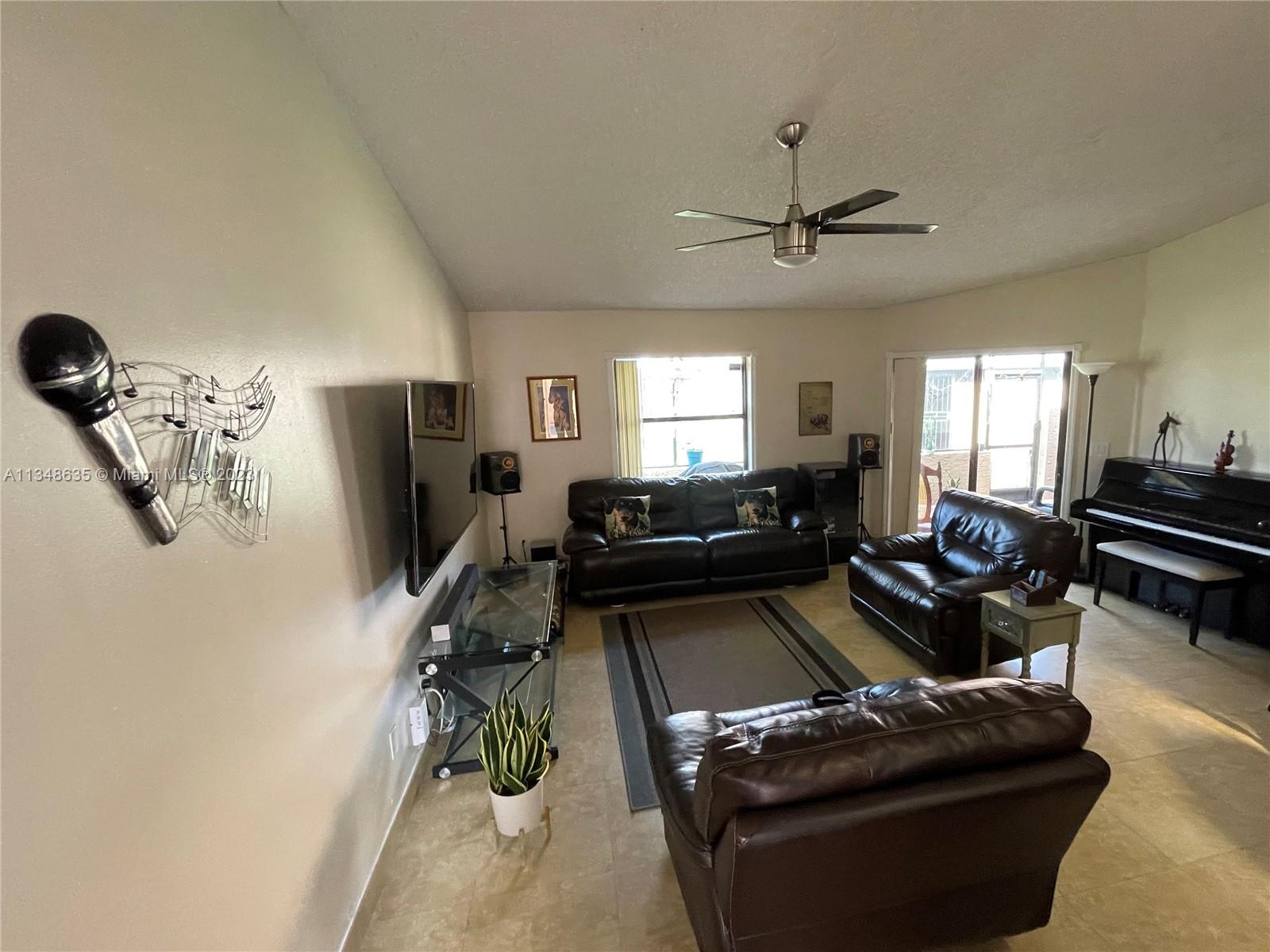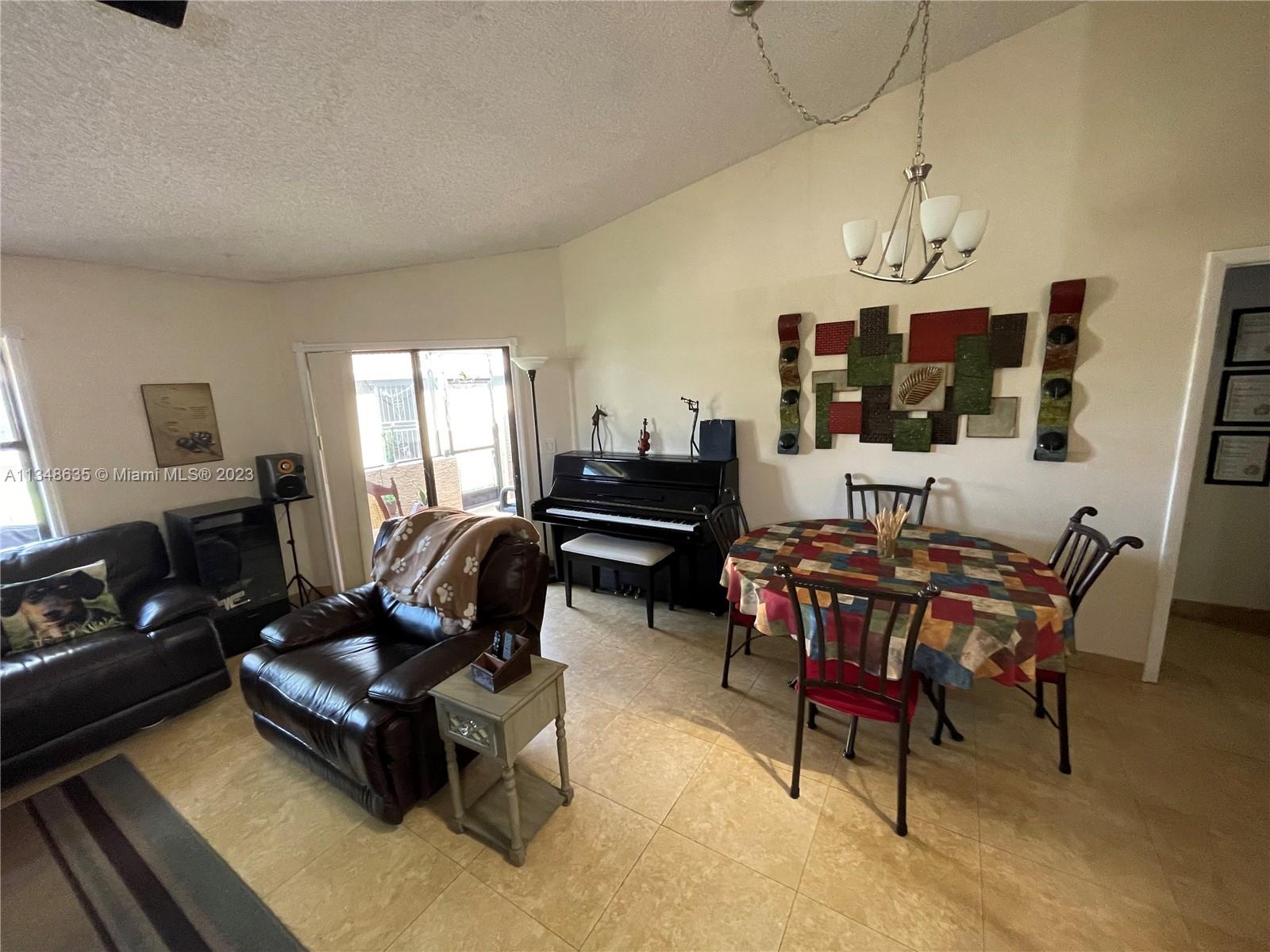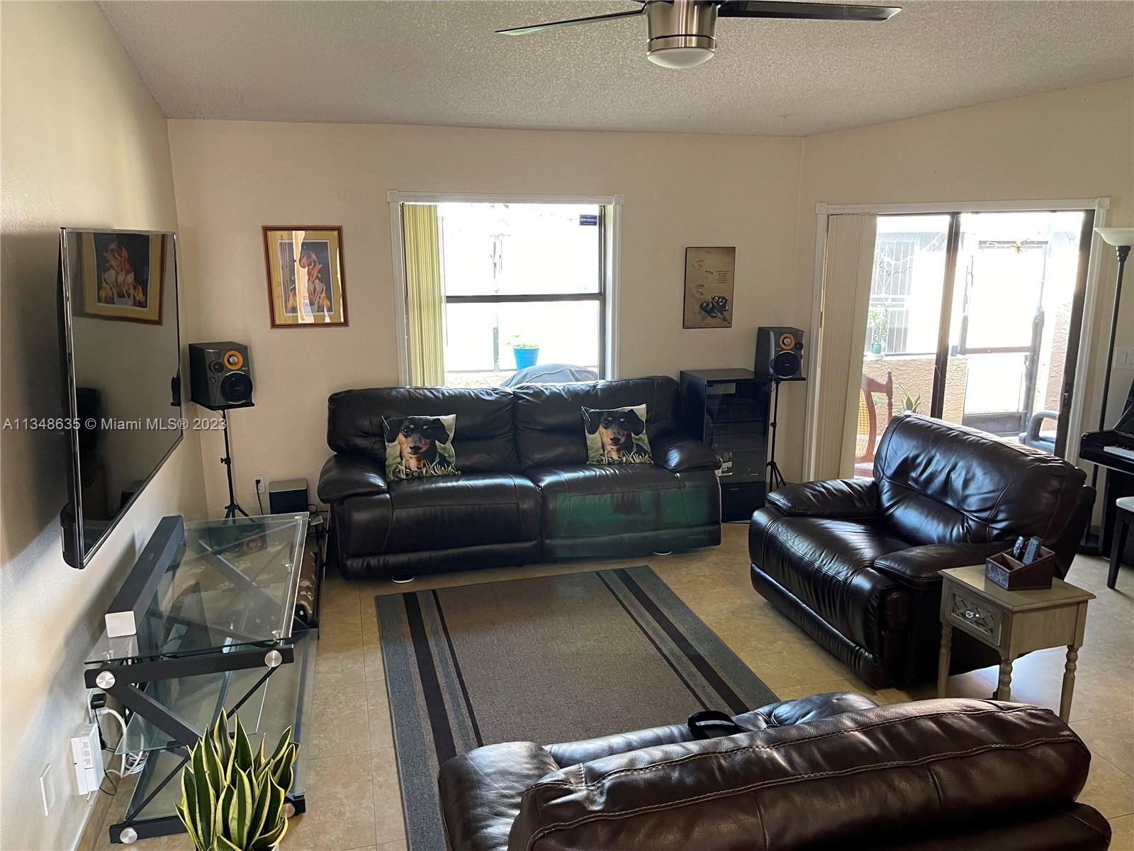 Excellent and beautiful one-story town home in strategic location a few miles from shopping, restaurants and main roads. This corner unit features two bedrooms, two baths, two assigned parking spaces, vaulted ceilings, brown wood cabinets, Laminate countertop, stainless steel appliances, marble floors and walls in bathrooms, hurricane shutters, enclosed patio with a beautiful view. This gated community features a community pool, clubhouse and playground great for family entertainment. The best part is the low HOA fee of $168 per month.