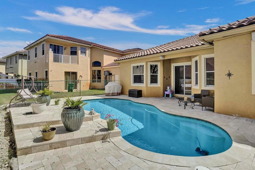 Great Escada Estate, well maintained home with 4 bed / 3 bath and pool. Remodeled bathrooms, 1y.o. AC, new floors. Lots of natural light, open floor plan, plenty of entertainment space. This one story Bergamo model has a 3 way split plan. Large Master bedroom with a huge built in walk in closet. Large Family room overlooking the pool and a private back yard. Viscaya is a gated community with plenty of amenities, including a gym, a clubhouse, a pool. Great schools, minutes to major highways. Won't last long - call today.
