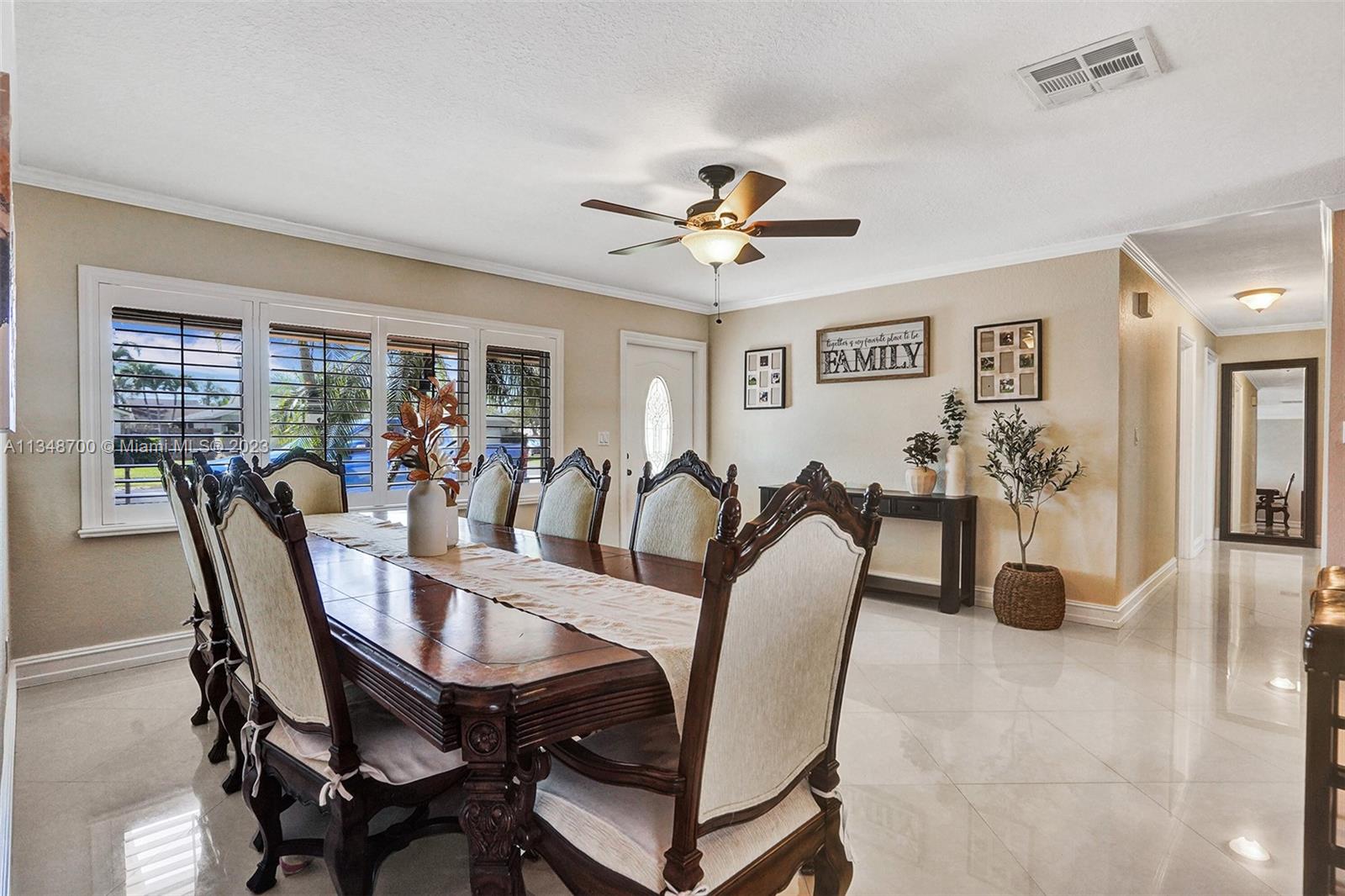 Stunning 3/2 in one of the most desired neighborhoods in Cooper City. The lush landscaping and large circular driveway welcome you and your guest. Enter the open floor plan with recessed lighting, crown molding, plantation shutters and beautiful marble tile. The chef's style kitchen is complete with granite countertops, SS appliances, double oven, and a large sit-down island. Primary Suite features farmhouse sliding doors that lead to the walk-in California style closet. The private backyard is fenced-in with a travertine tiled patio while also having lots of green space for pets! Beautiful Saltwater pool, newly resurfaced. Complete hurricane impact windows throughout, 2-car garage, new roof and a dedicated laundry room. AC and plumbing updated it 2019!
