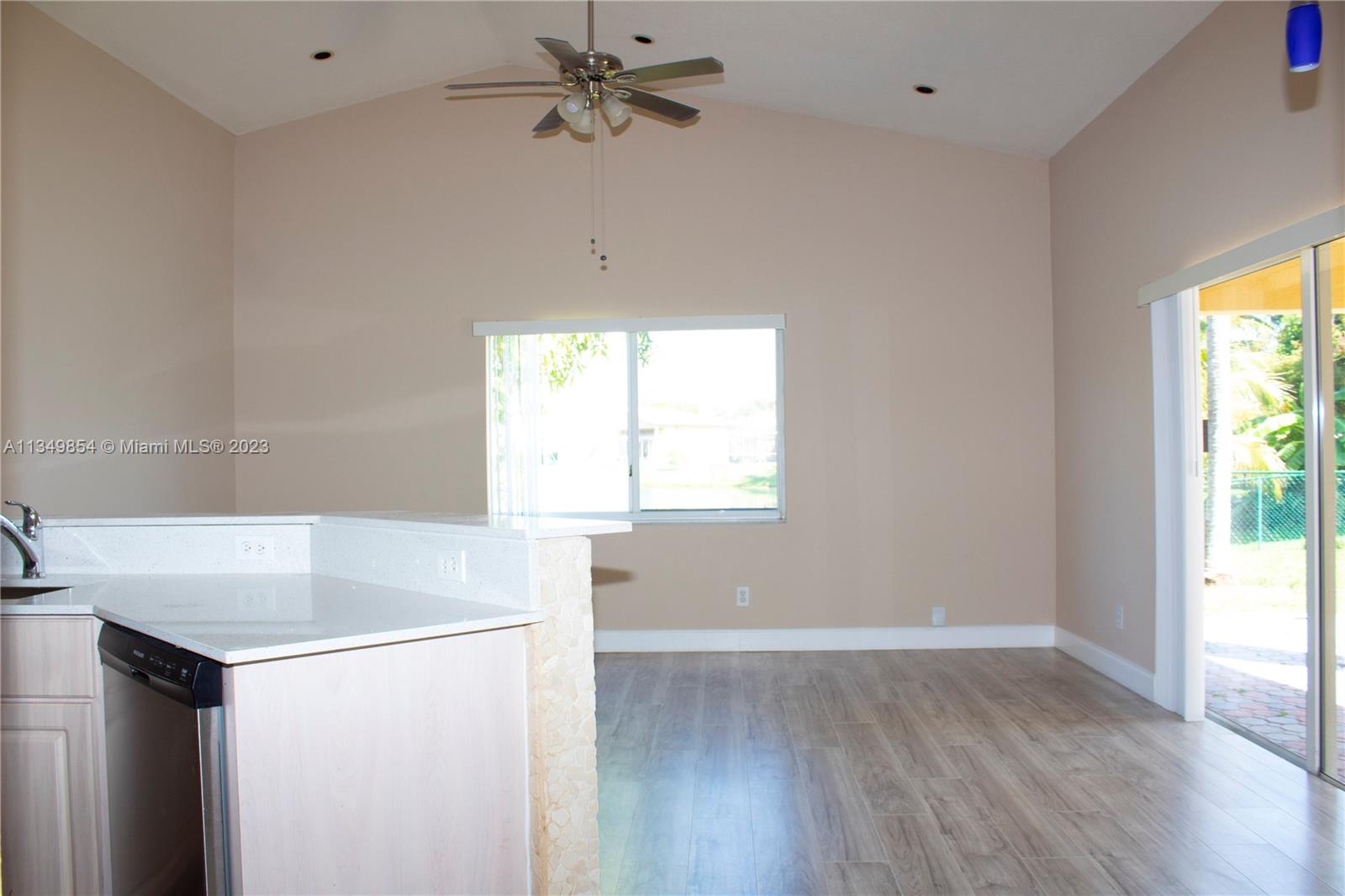 This gorgeous 3-bedroom, 2 bathrooms home is ready for you to call home! Offers a lovely layout with beautiful living space, vaulted ceilings, spacious bedrooms wonderful kitchen with quartz countertop and ample cabinet and counterspace, stainless steel appliances and dining area, 2 car garage with washer/dryer hookup and fabulous backyard with sere lakeview. Amaizing area where you get the best of both Miami Dade and Broward county. Nearby you have plenty of shopping plazas where you have supermarkets, restaurants, shop, beauty parlor, gyms, parks and pleanty to do. EASY TO SHOW