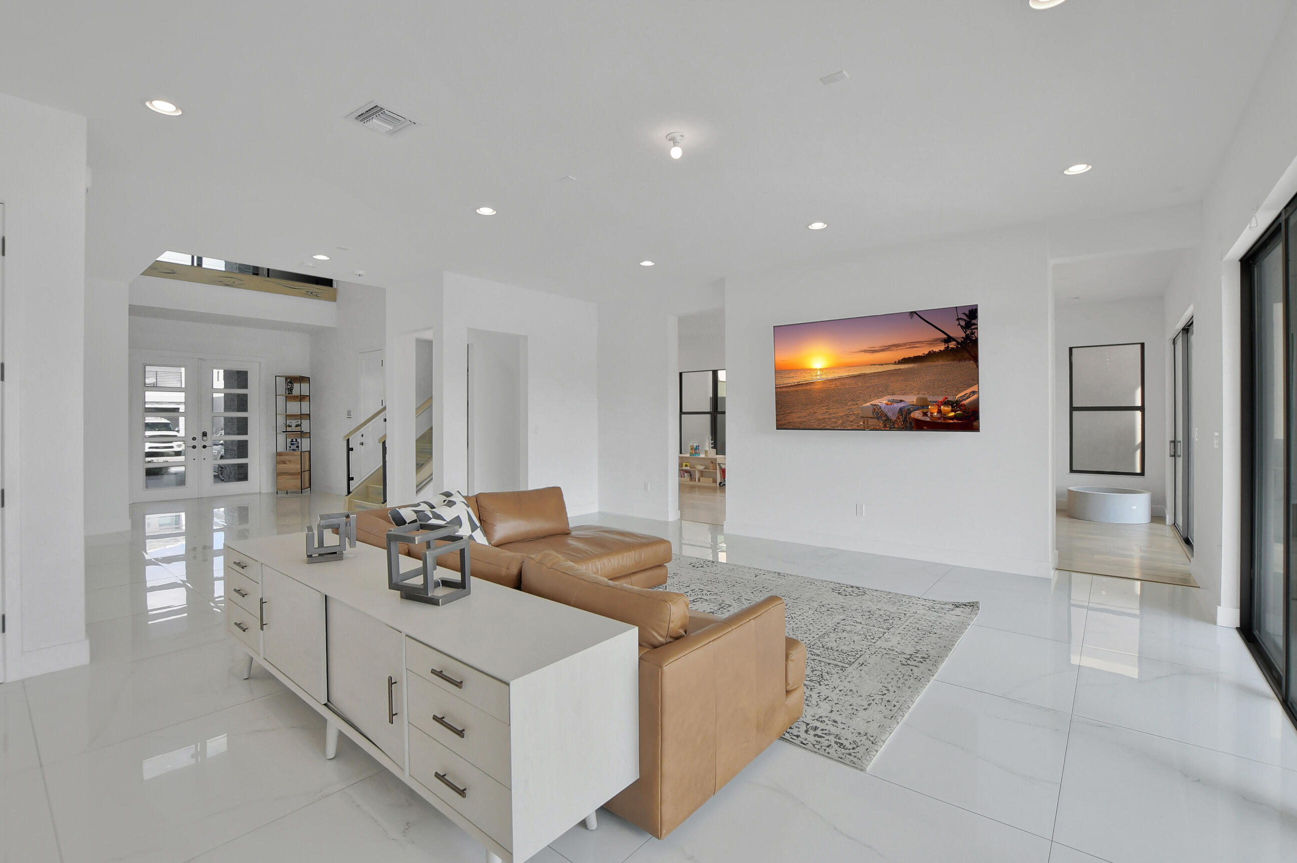 DESIGNER READY!! Spacious Maldives model with over 5300 sq feet! Home is new with builder warranty and no wait! Great features include water lot, 40x40 porcelain flooring, wood look tile and top of the line hardwood on 2nd level. Don't miss this deal with 3 bedrooms, loft and media room up and 1 bed & full bath down. . Come enjoy Lotus; the best of Florida living with room Tennis, pickleball, indoor b-ball, tot room, game, resort pools, restaurant + bar!