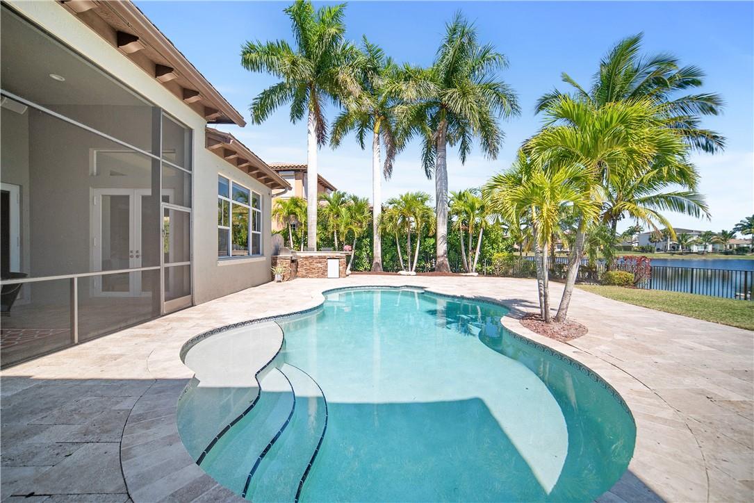 Amazing 4 Bedroom, 3 Bathroom Burgess Model w/ Over $65,000 In Upgrades! This Home Sits On A Fully Fenced, Large, Waterfront Lot & Has Plenty Of Room To Entertain. Enjoy Outdoor Living: Pool w/Travertine Deck, Custom Summer Kitchen, Screened-In Covered Porch & A Large Yard For Kids & Pets. Upgrades Include: Recently Painted Inside & Out, 2020 Both New AC's, New Pool Heater, Crown Molding, LED Lights & Custom Shades/Drapes Beautiful Kitchen w/Granite Counters, Wood Shaker Cabinets, Stainless Steel Appliances Opens To Large Family Room w/Built-In Entertainment Center & Wine Fridge. Spacious Master Suite w/Large Sitting Area Is Perfect For Office Or Nursery. 3 Car Garage, Enjoy Living In Prestigious, Guard Gated Heron Bay w/2 Clubhouses, Resort Style Amenities & Attend All A-Rated Schools!