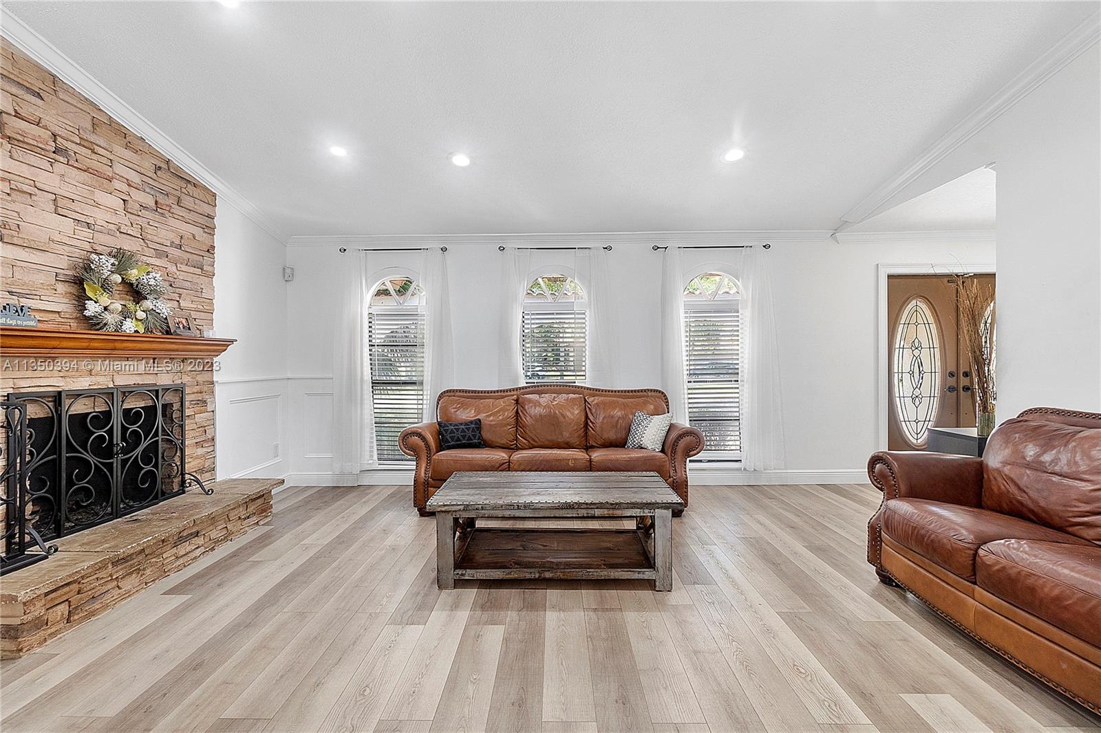 Wow! Beautiful Updated 4 Bed 2 1/2 Bath Pool Home W/ 2 Car Garage On An Oversized Corner Lot & Cul-de-sac In Prestigious Cypress Run Coral Springs. This Home Features Pavers Driveway, New Modern Custom Kitchen W/ Quartz Counter, & SS Appliances. New Luxury Wood look Vinyl Floors In Common Areas & Laminate Wood In Bedrooms. Crown Molding. Vaulted Ceilings. Wood-burning Fireplace. Primary Suite W/ Walk-in Closet & En-Suite Bath W/ Dual Sinks, Custom Vanity Quartz Counter, Large Mirrors, & Updated Shower. Open Split Floor Plan With Living, Dining, & Family Rooms. Updated Cabana Hall Bath W/ Dual Sinks, Custom Vanity, LED Mirrors & Tile Tub/Shower. Screened Pool & Patio W/ Paver Deck. New W/D, Tankless Water Heater & Upgraded Electric Panel. NO HOA. Close To Parks, Dining,& Highways. Must See!