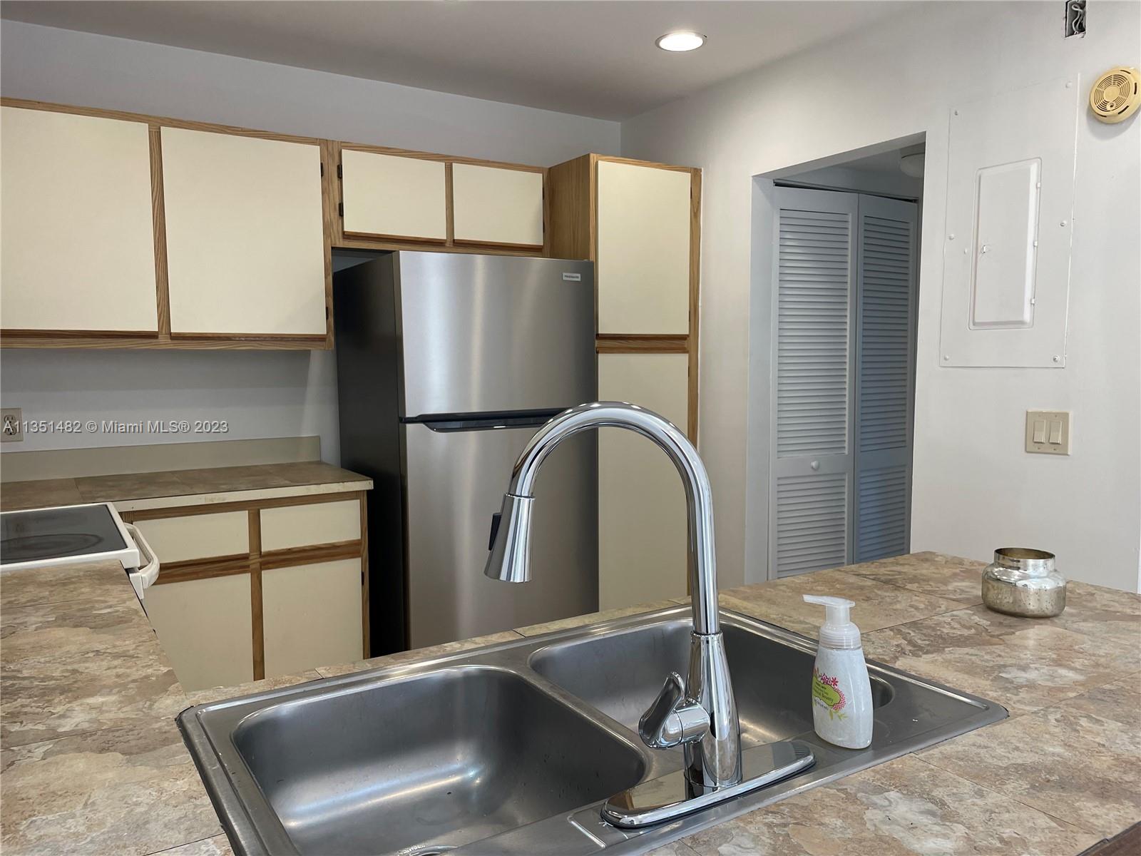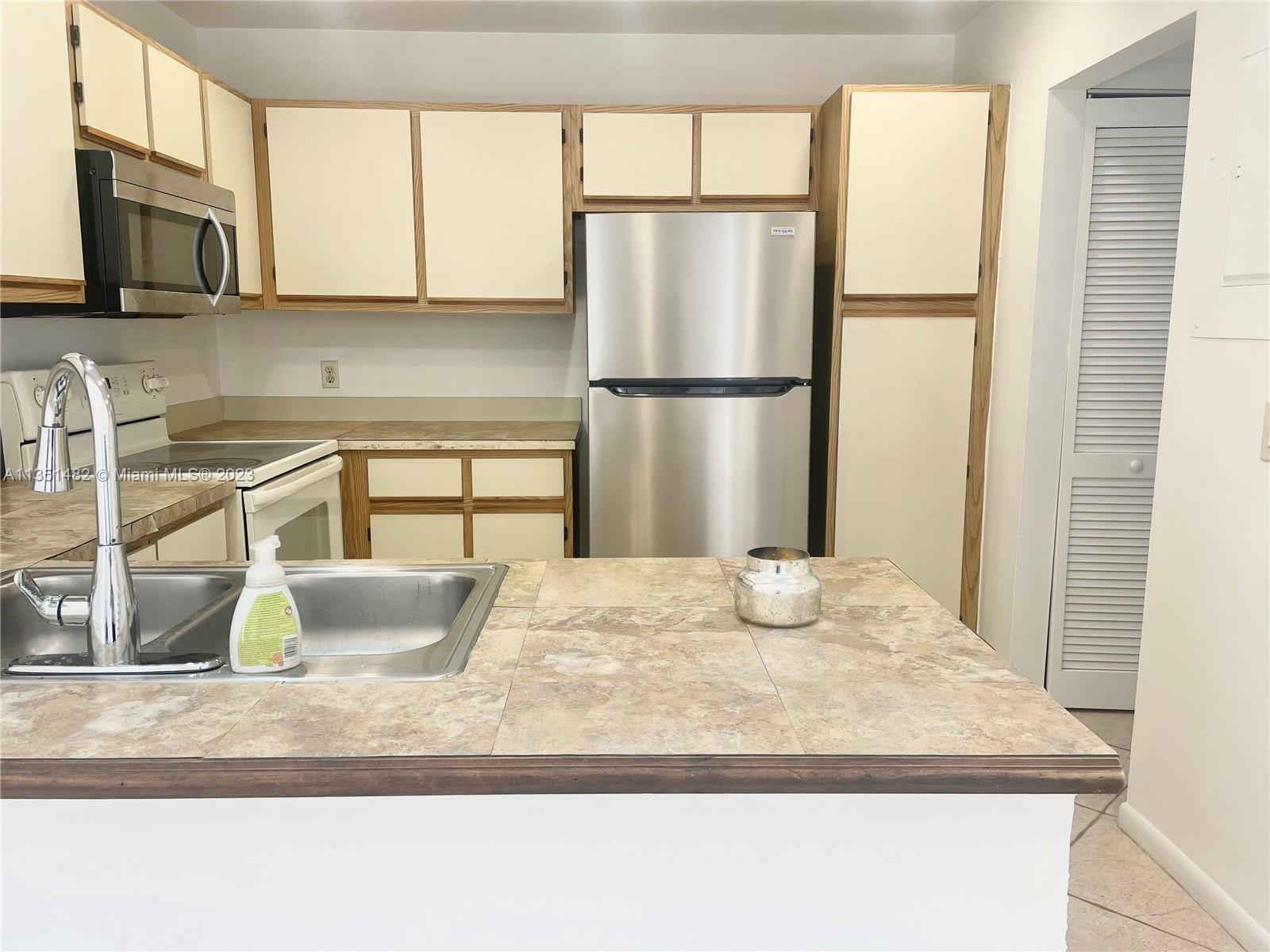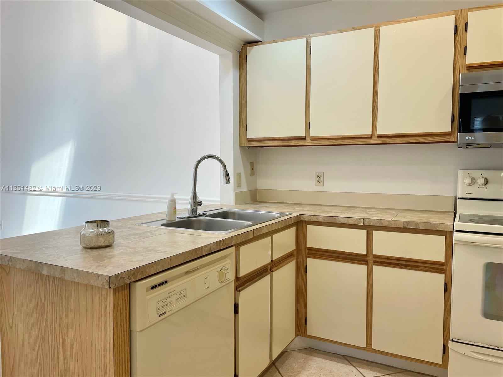 Fantastic Rare Model with 2 Bedroom + 1 Bathroom + Convertible Den! FLAT ROOF part of the unit COMPLETED WITH PERMITS! Home has had full interior paint as well as recently fully serviced a/c and hot water heater. Brand new refrigerator, newer washer/dryer, ready to move in! Located in lovely Lake Colony with low HOA includes Pool, Tennis, and a tranquil lake.