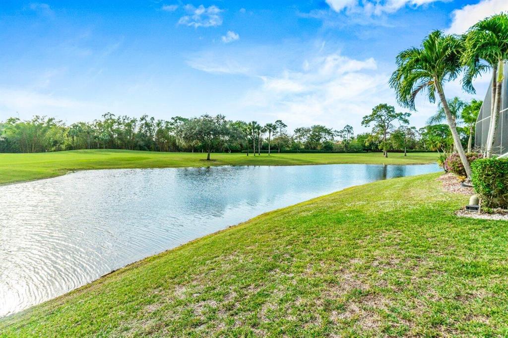 Incredible EXPANSIVE WATER & GOLF views from this meticulously maintained home with screened in pool area and expanded patio located at the end of a cul-de-sac on an oversize lot. This 2 bedroom/2 bath home includes a den that can easily be converted into a 3rd bedroom. Boca Woods is a prestigious all age Country Club community which offers resort style amenities including two 18 hole golf courses, tennis, pickleball, new state of the art Fitness Center, spa, game room and fine dining! Mandatory Membership required $95,000.