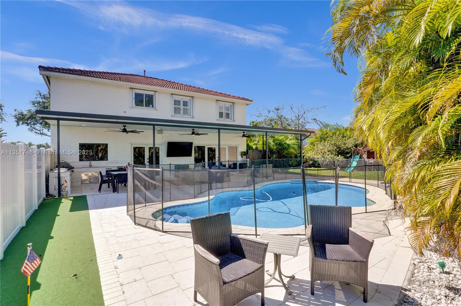 Beautiful 4-bedroom 2.5-bathroom two story home. Park in the newly insulated garage with A/C or one of the 6 spots in the driveway. Enter thru the brand new gorgeous double doors into the sitting, living & dining area with natural light & plantation shutters on all the windows. Tile floors throughout the first floor, kitchen with SS appliances, gas range, & granite countertops. 4 Bedrooms upstairs, very spacious master with built-in office space, leading into the walk-in closet (w&d inside) & updated primary bath with dual sinks & vanity. Enjoy your the backyard hosting a bbq in the brand-new outdoor kitchen, overlooking the lake & enjoying a dip in the salt water, heated pool. Have some fun jumping on the in-ground trampoline! & don’t forget to get creative in the SheShed/ManCave.