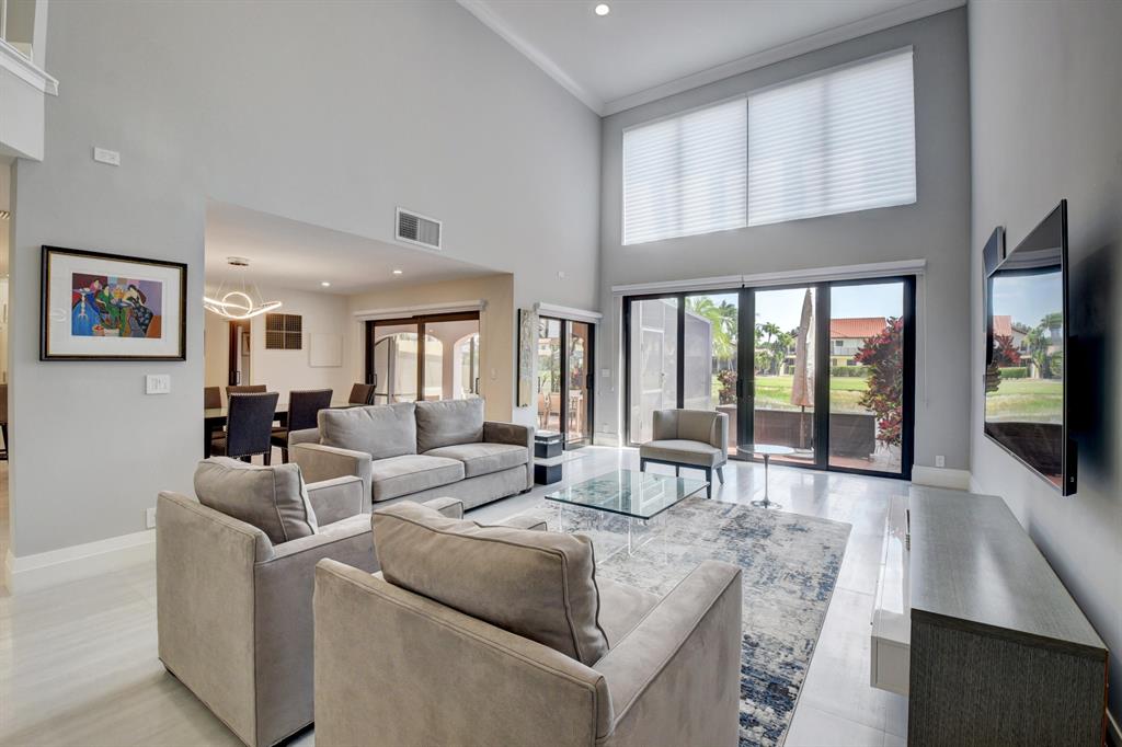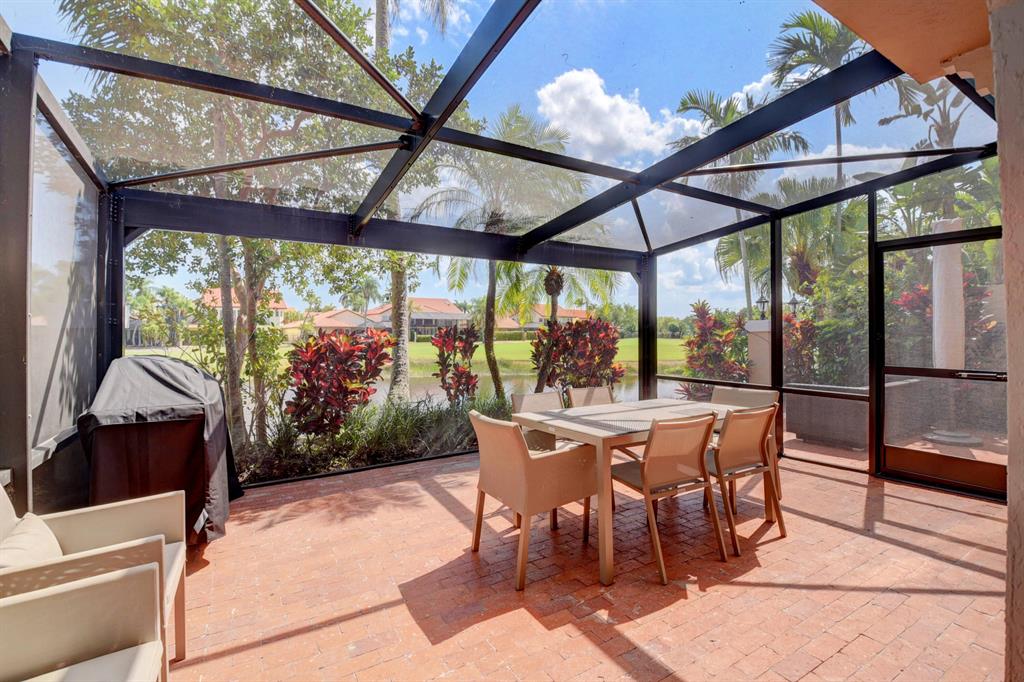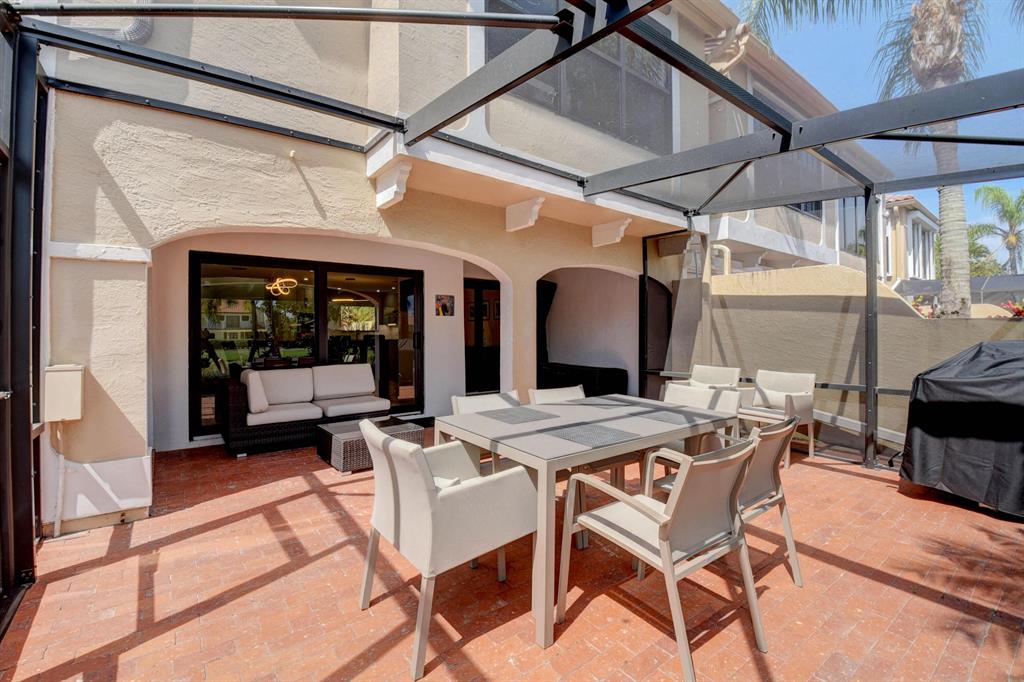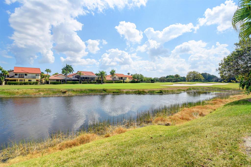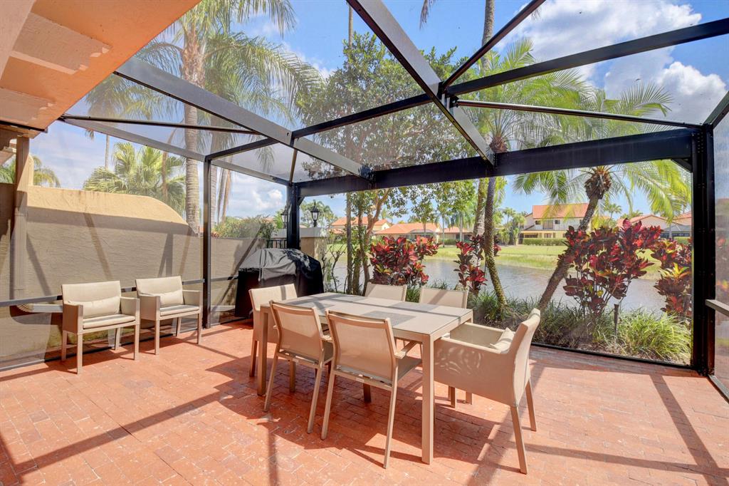 Stunning and completely renovated custom designed 3BR, 3BTH townhouse in coveted Caravelle section of Boca Pointe! Premium location overlooking lake and golf course views! No details spared with all high end finishes. Featuring 24x48 porcelain tiles throughout living areas. Kitchen with quartz countertops, mother of pearl backsplash and SS appliances including the farm sink. Bedroom and full bathroom on 1st floor. Double height living room, LED lighting, magnificent fixtures, IMPACT WINDOWS THROUGHOUT! 2 zone a/c, newer roof and plenty of closet space. Relax and enjoy your spectacular views on your open or screened outdoor patio. Do not miss this one! Boca Pointe is a non-mandatory club with several optional memberships you may choose from.