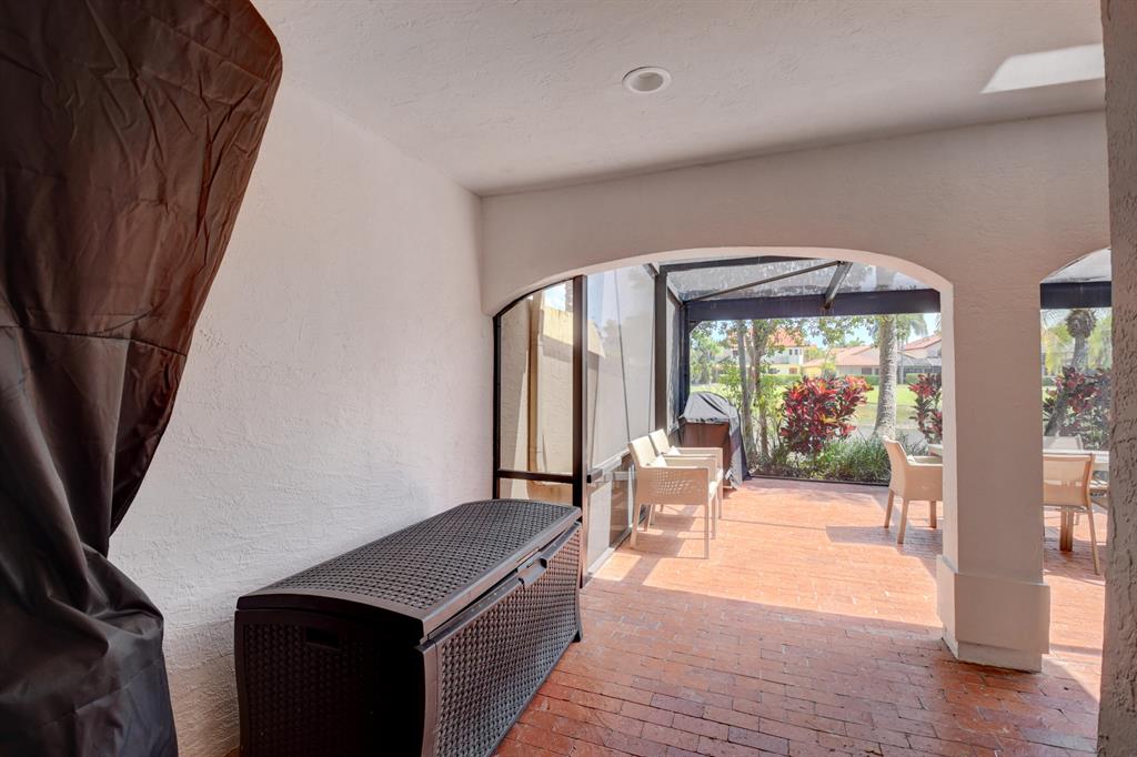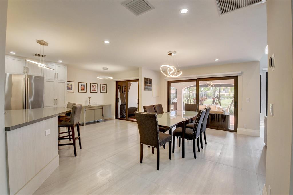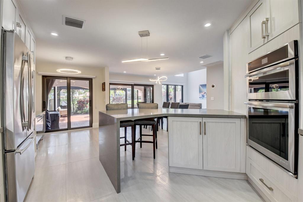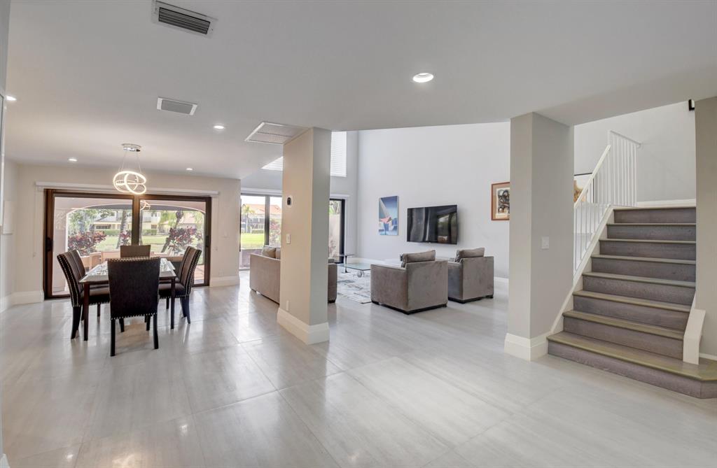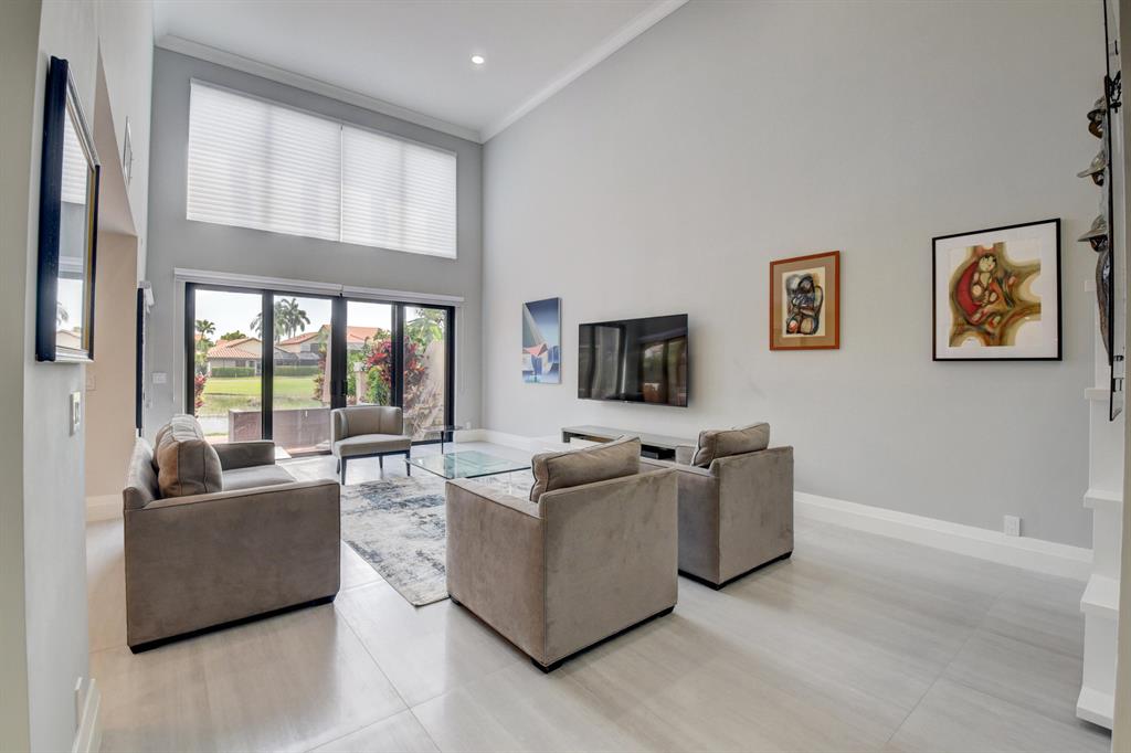 Stunning and completely renovated custom designed 3BR, 3BTH townhouse in coveted Caravelle section of Boca Pointe! Premium location overlooking lake and golf course views! No details spared with all high end finishes. Featuring 24x48 porcelain tiles throughout living areas. Kitchen with quartz countertops, mother of pearl backsplash and SS appliances including the farm sink. Bedroom and full bathroom on 1st floor. Double height living room, LED lighting, magnificent fixtures, IMPACT WINDOWS THROUGHOUT! 2 zone a/c, newer roof and plenty of closet space. Relax and enjoy your spectacular views on your open or screened outdoor patio. Do not miss this one! Boca Pointe is a non-mandatory club with several optional memberships you may choose from.