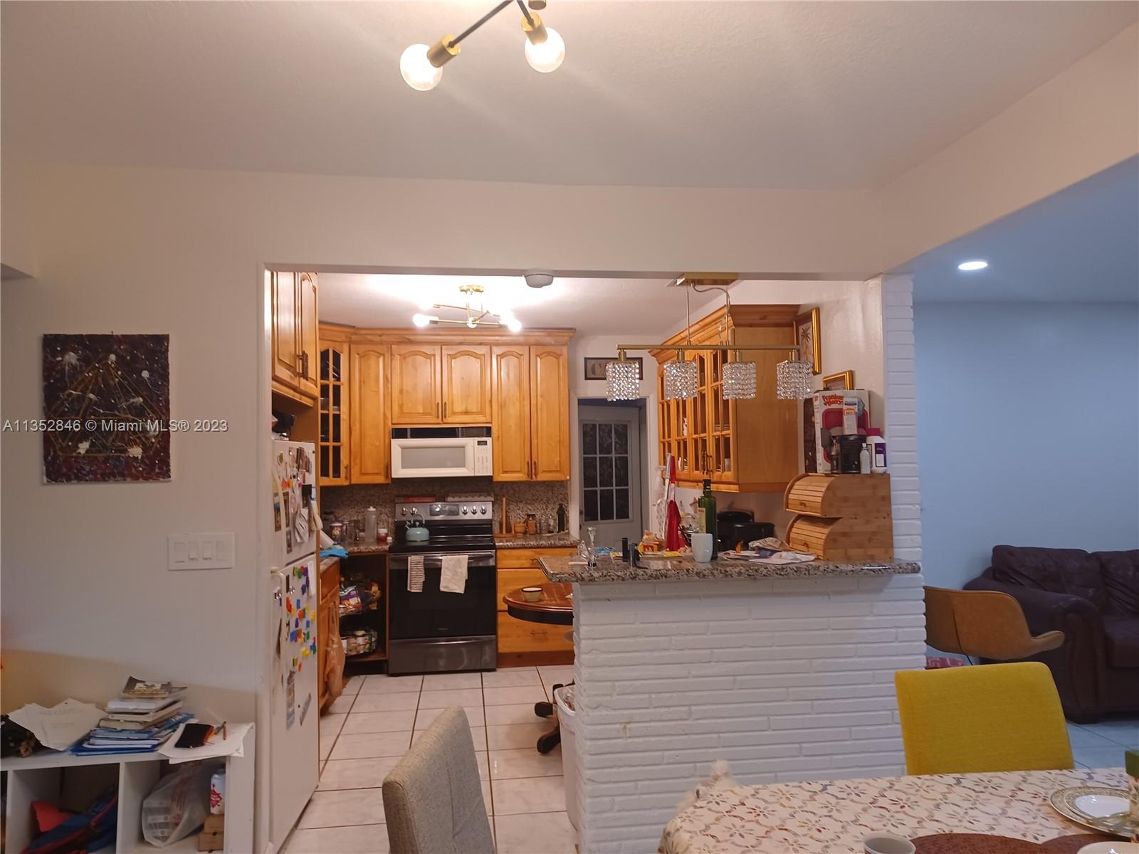 Beautiful spacious 3/2 house in Miramar, permitted converted garage can be used as another bedroom or office. Both bathrooms and living room were recently renovated. New roof, only 2 years old. In-ceiling lighting, tile throughout. Pool in the backyard, patio, and front porch with a mango tree in the front yard. The paved driveway will hold 4 cars. No HOA, beautiful and quiet neighborhood.