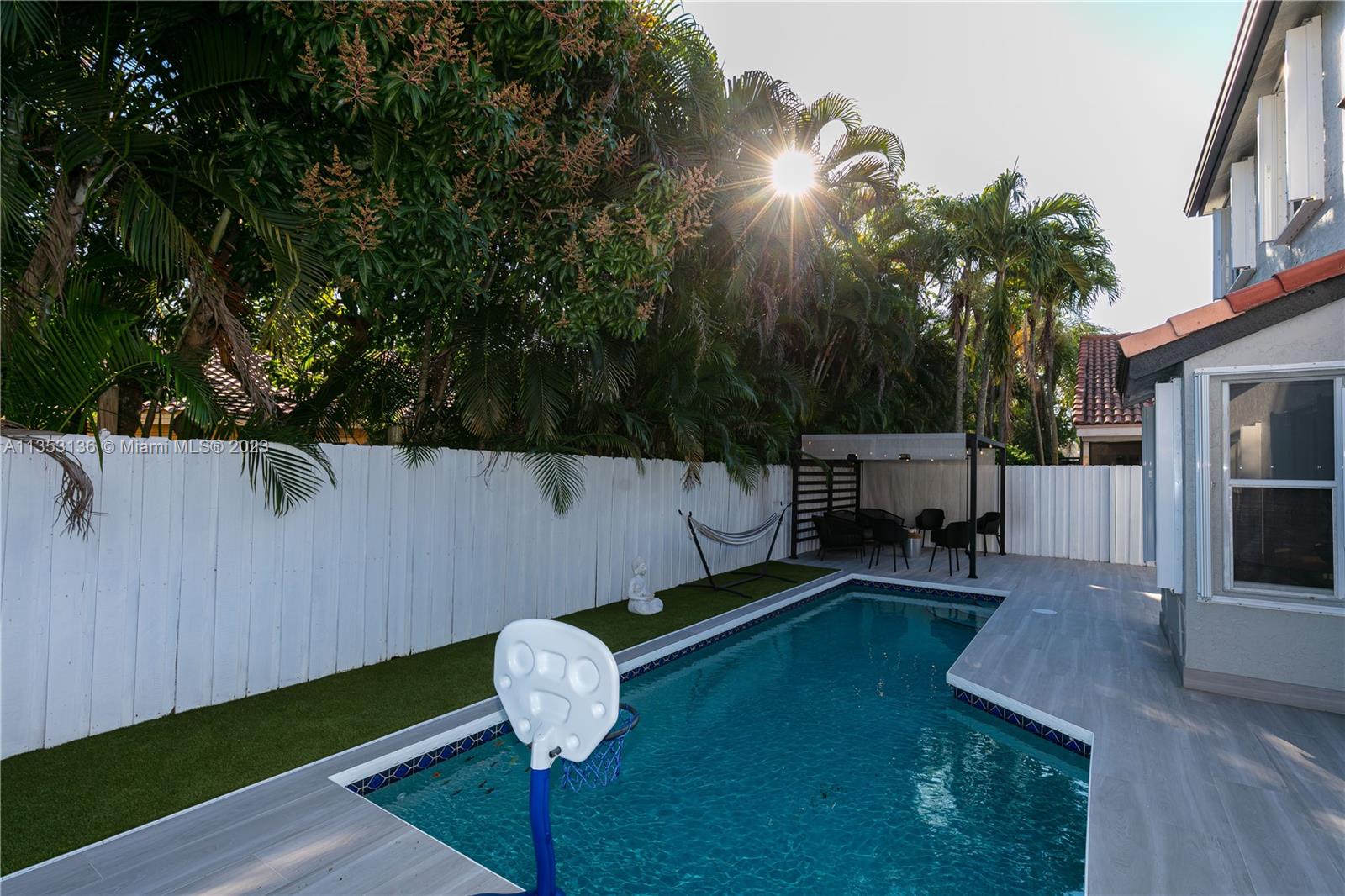 Live the dream in this exceptional Silver Lakes home. With a refreshing pool, 4 spacious bedrooms, and 3 beautifully designed bathrooms, this home is the perfect place to call home. Unique floorplan with a comfortable bedroom and bath downstairs. Plus, the location can't be beat – it's close to everything Pembroke Pines has to offer! This stunning home offers the perfect blend of luxury and comfort. There is plenty of room for the whole family to enjoy, perfect for both relaxation and entertaining so you'll feel pampered every day. Accordion Shutters throughout, 2016 Top-of-the-line Trane A/C, new pool pump installed in 2022, 2 baths renovated in 2021, 2016 water heater, recently painted outside, pool area redone in 2022, vinyl floors in main living areas and laminated floors in bedrooms