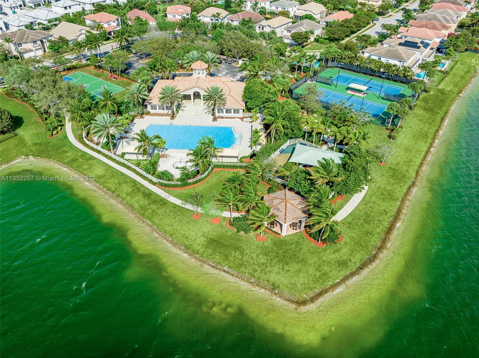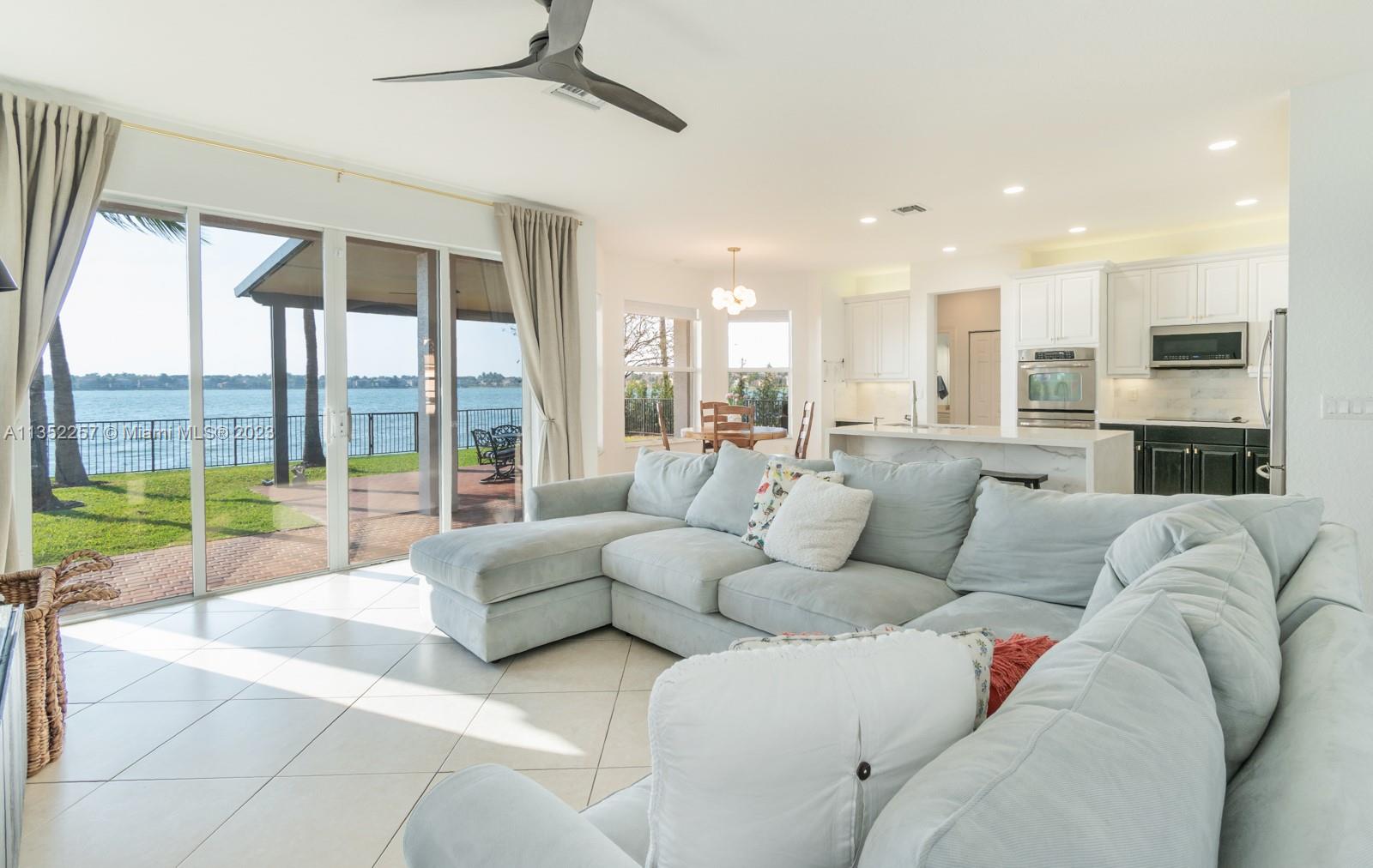 Enjoy outdoor living & beautiful water views in Sunset Falls, West Miramar’s most prestigious gated community! This 5 bed, 4 bath, 3 car garage home showcases impressive wide water views from the moment you walk in! The first floor features a remodeled kitchen w/waterfall quartz island, Alexa enabled refrigerator, breakfast nook & 1 full bed/bath, perfect as an in-law suite. Upstairs the master suite has a separate sitting room, 2 walk-in closets, his & hers baths & an oversized balcony for relaxing with a glass of wine at sunset. Outdoors, entertaining is easy w/a large fully fenced yard & extended covered patio perfect for BBQ. Keep bugs away year-round w/the included Swat system! Sunset Falls luxury amenities include a resort-style pool & spa, tennis & basketball courts & fitness center