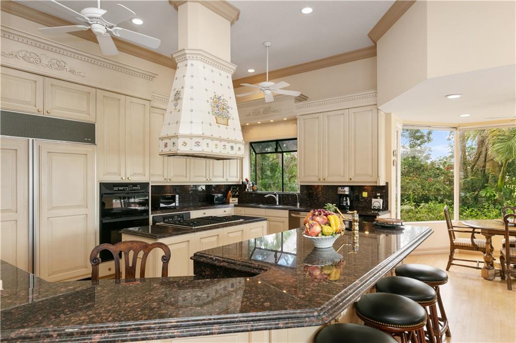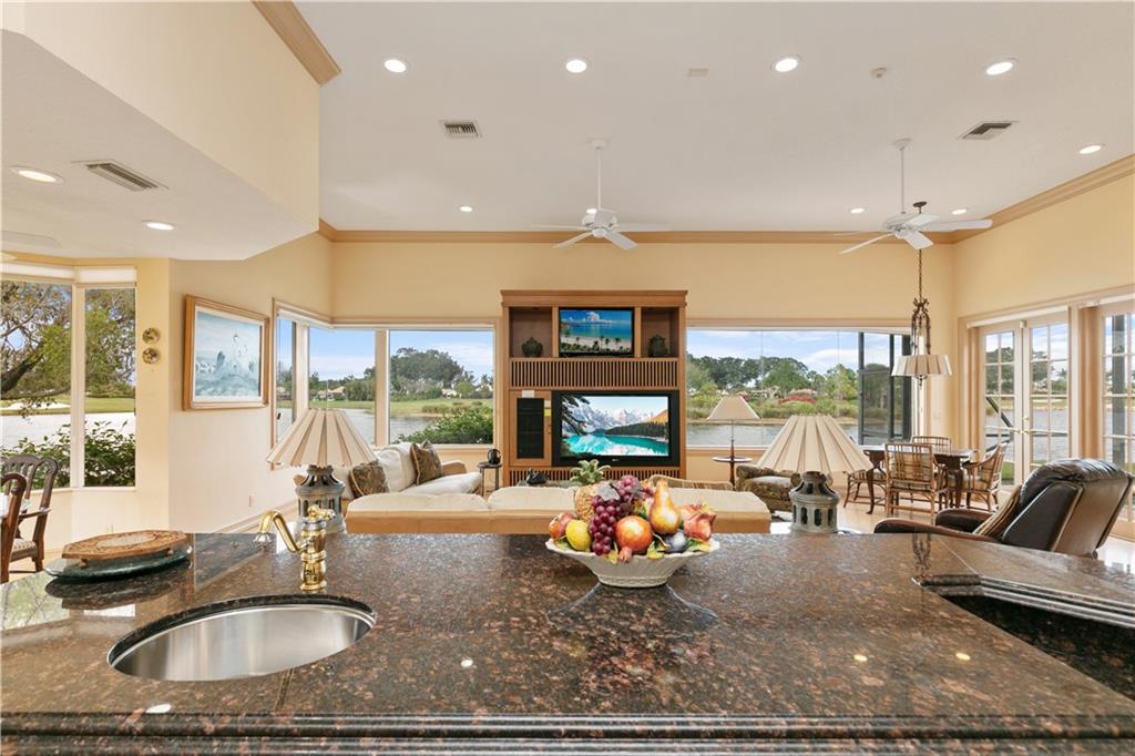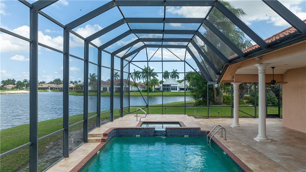 Sensational open floor plan with one of the most exquisite lakefront positionings in Stonebridge Country Club. The property impresses with tranquil, stunning, panoramic lake views from your living area, kitchen, pool-jacuzzi deck and primary suite. An inviting outdoor area perfect for entertaining as the outside-inside living areas create a very large, open space with tremendous screened enclosure. Beautiful natural light, high-volume ceilings, hardwood floors in common areas, large chefs kitchen with hooded exhaust, gas island stove, double wall oven, one convection, second island sink with refrigerated doors and icemaker, granite countertops. Formal dining, formal foyer, split floor plan with second primary suite, walk-in closets, circular drive. Mandatory membership community.