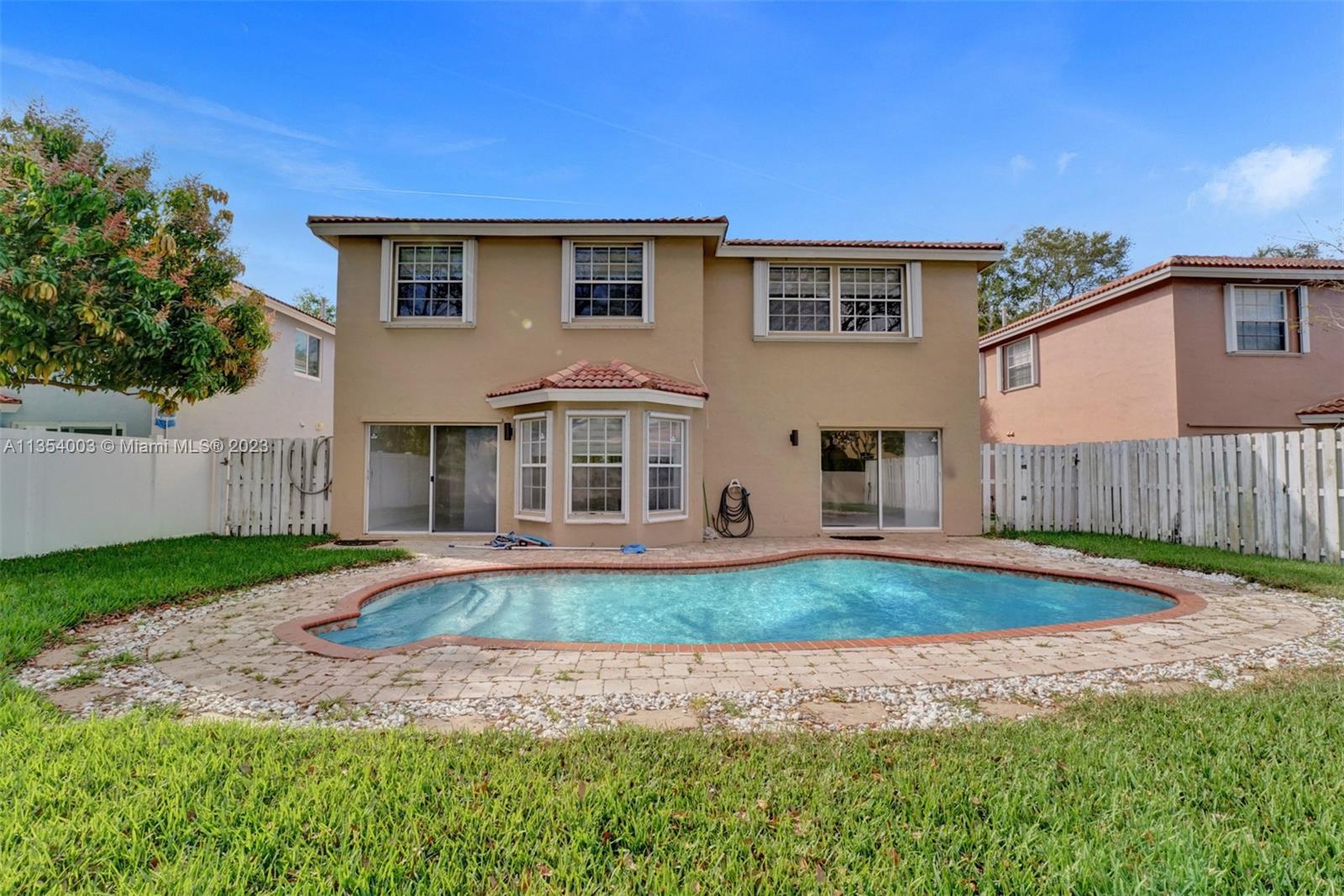 Look no further! Enjoy this beautiful two story pool home from the minute you lay eyes on it. Situated in the highly desirable community of Sawgrass Plantation. Drive up to your pavered driveway with a two car garage. The interior 1st floor boasts two separate living areas with eat in kitchen and formal dining room. Newly remodeled kitchen and tons of light. Great views out to the pool. Large master bedroom with 2 walk-in closets. Updated master bath. All new flooring upstairs. New fence is being installed. Multiple other updates were done to the property. Pet friendly community and low HOA! Close to Flamingo Park and Highways.