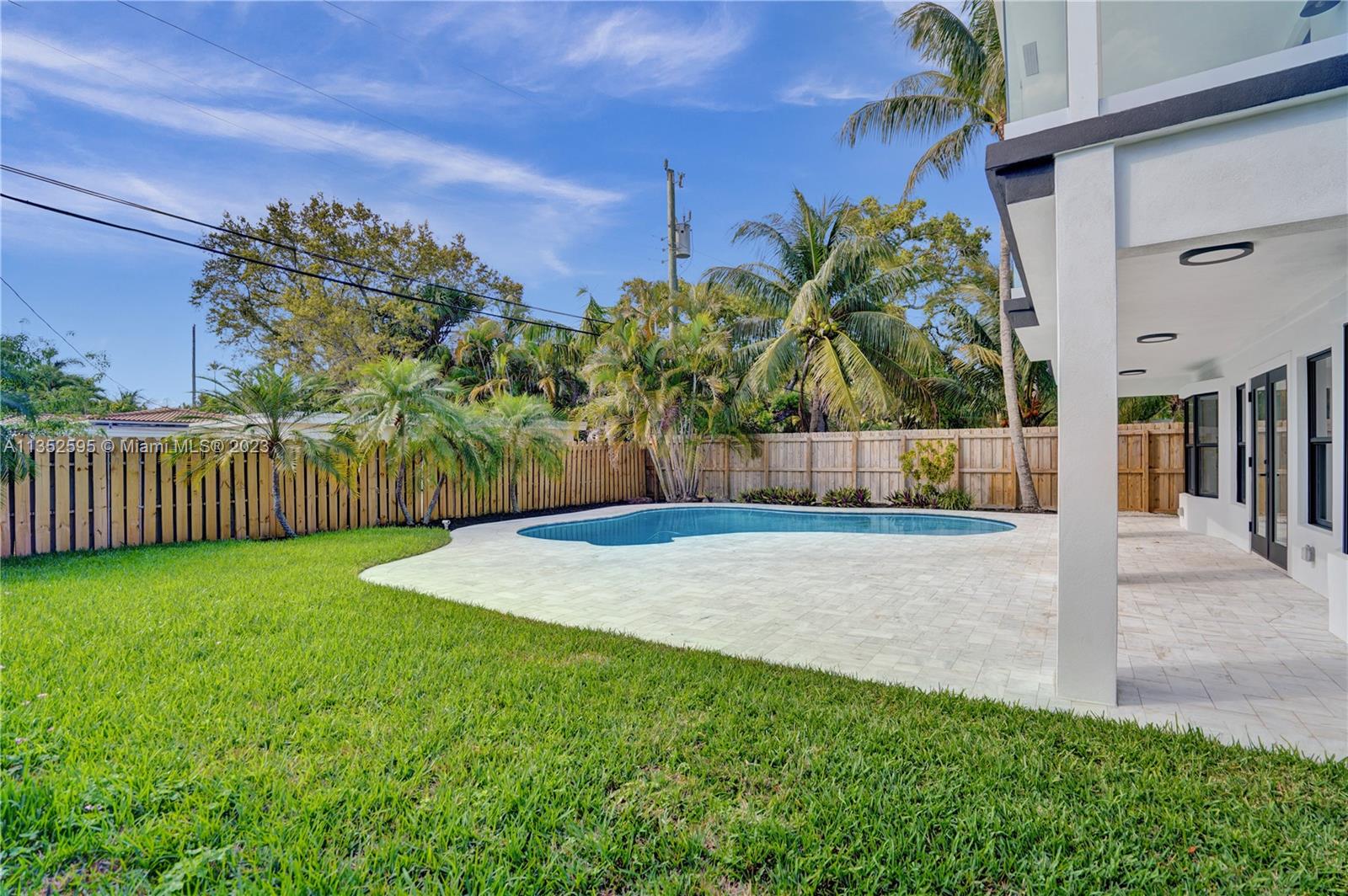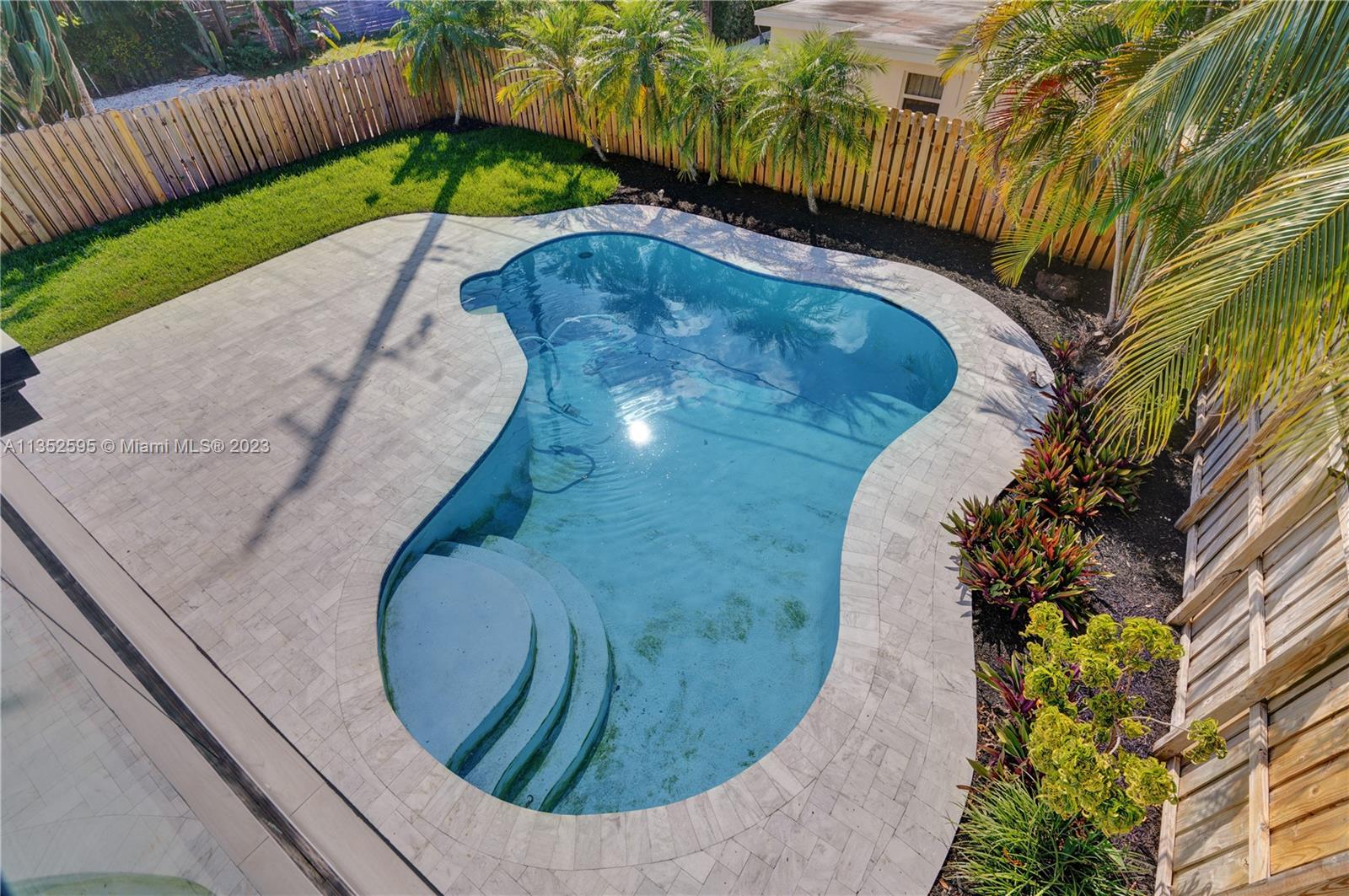 Bright updated 4 bedroom home with a pool 10-minute walk to Las Olas. Open kitchen and living room with views out to the backyard. The kitchen has a nice-sized island made with real stone, which is great for entertaining. There are three bedrooms on the first floor and the primary is on the second floor with a beautiful balcony with a glass banister where you can see out to the pool and backyard when you are relaxing in bed. The primary closet is a great size, made for someone who loves to have a lot of closet space. It even has a skylight to bring in extra light. The primary bathroom has a large walk-in shower, a nice soaking tub, and double sinks. The backyard is so nice for entertaining and relaxing, with a nice-sized pool to cool off from the Florida heat. House is ready to move into.