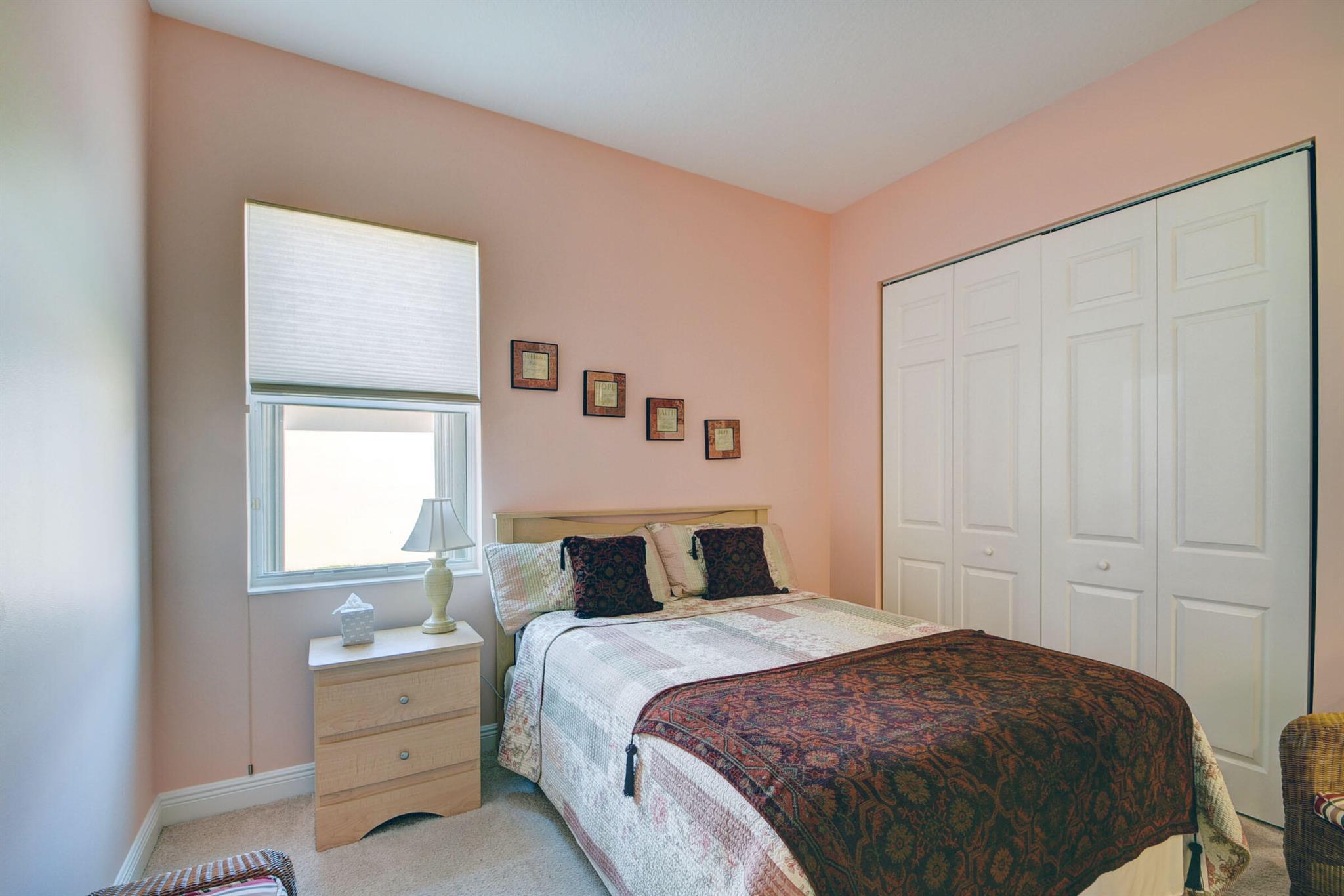 Meticulously maintained home with beautiful lake views and adjacent non-buildable lot. 10'tray ceilings, 18'' ceramic floor tile, granite kitchen countertops. Roll down screen on patio to extend enjoyment of beautiful views. Hurricane shutters on front door & patio. Owner is permitted to leave them down even when not in residence. Low HOA. Close to downtown Wet Palm, PBI airport, shopping, restaurants, 2 major hospitals, beach, park and major roadways.