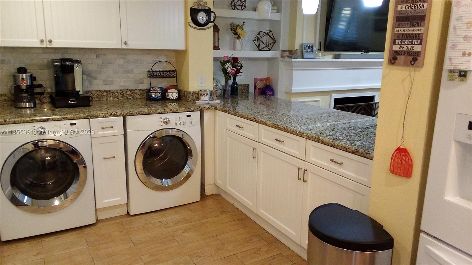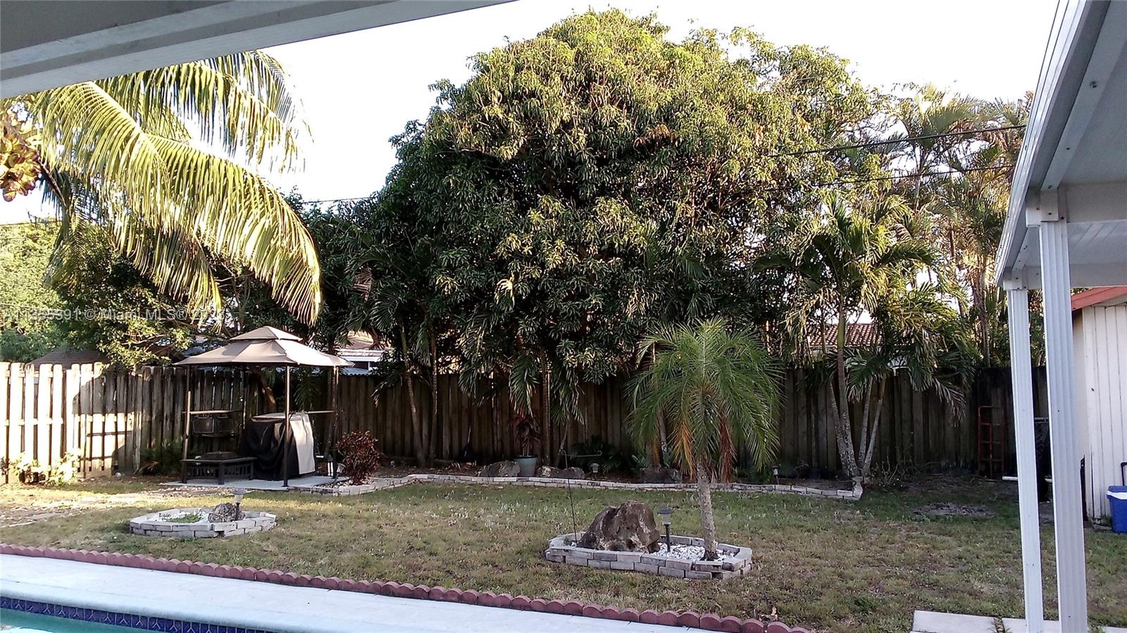 Beautiful, Charming 3bds home w/resort style pool, gorgeous, relaxing backyard perfect for entertaining and tranquility. Welcoming front patio, stamped concrete driveway, garden Magnificent lighting fixtures, gorgeous wood floors, This home offers a charming, inviting ambiance, and opens up to a lovely living room, and fireplace to enjoy warmth and comfort during our So. Flo cold snaps, built-in wine rack, built-in curio cabinet, spacious dining room, off to your spacious gourmet kitchen with granite countertop, large French door refrigerator with freeze bottom, flat top stove, built-in microwave, Hurricane-impact windows, doors, and plantation shutters offer privacy and elegance