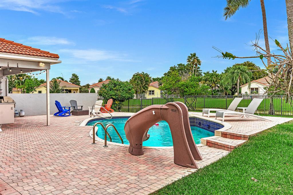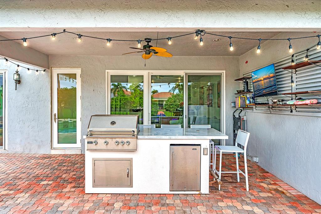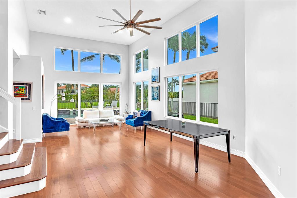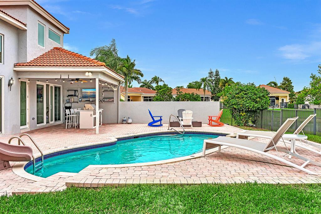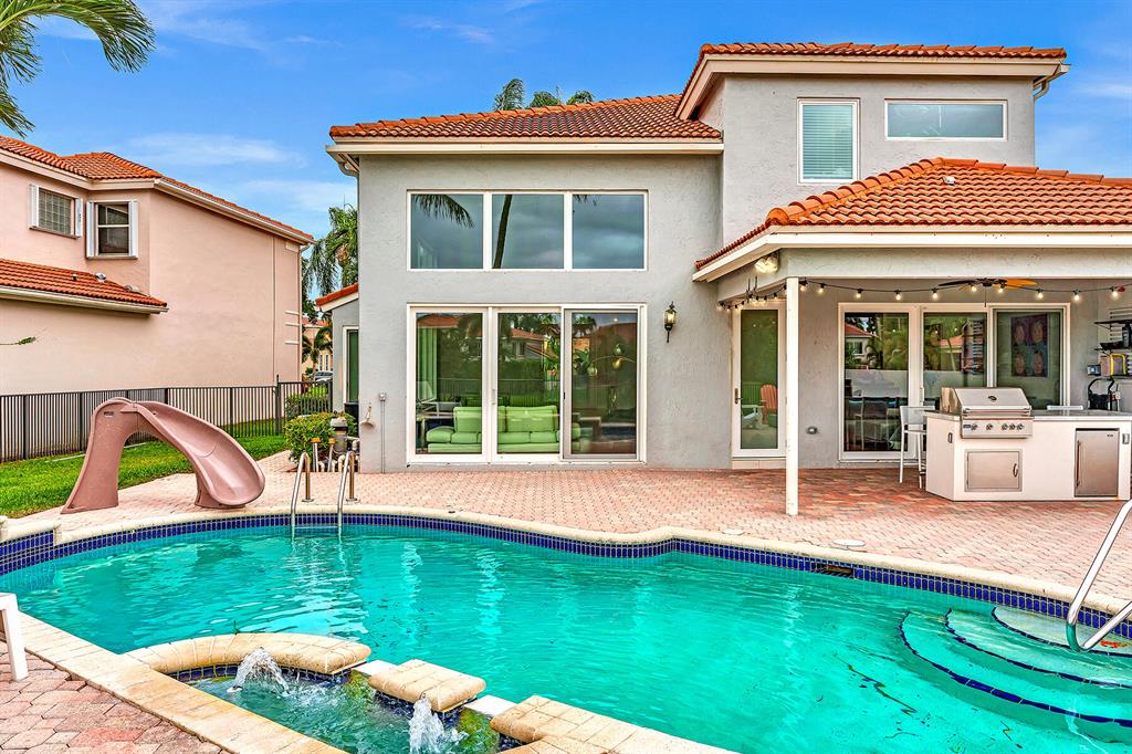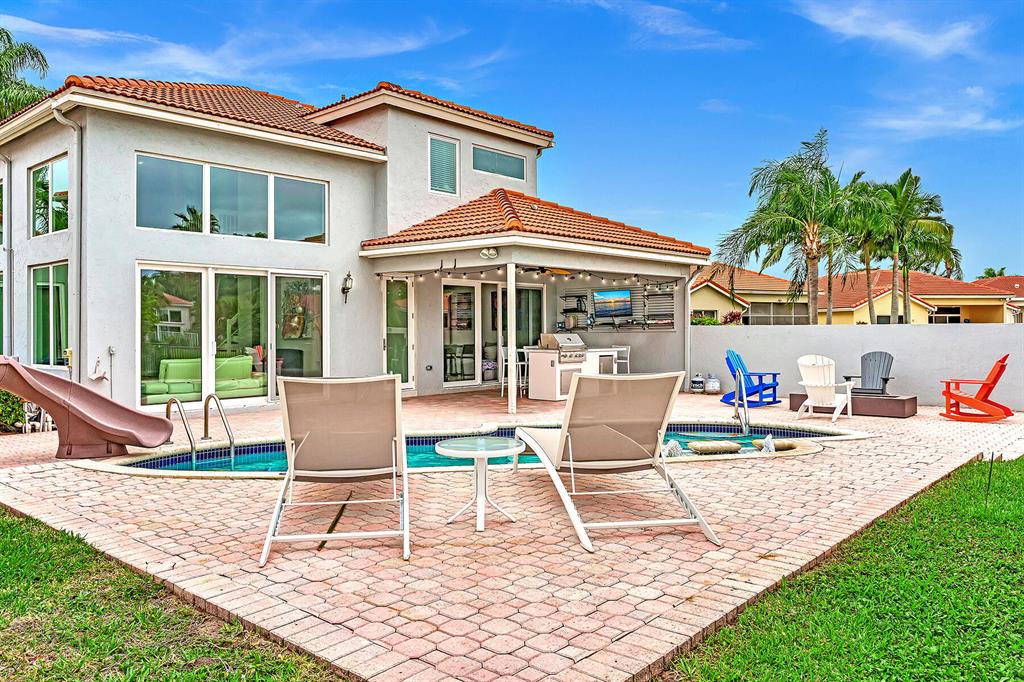 Absolutely Gorgeous 4 Bedroom Plus Large Loft 3.5 Bath Home (Can be put back as a 5th Bedroom easily) on the Lake at the end of the cul-de-sac. This home has it all from the hardwood floors on the main level and the stairs to the Hurricane Impact Windows and Doors (except for the front door and garage door) to the Gorgeous Gourmet Kitchen with Stainless Steel Appliances, Viking Gas Stove, Quartz Countertops with Waterfall Edge, to the Stunning Renovated Master Bath with Grey Slate-Like Tile, Free Standing Tub and Modern Shower to the Premium Contemporary Laminate Flooring Upstairs to the Tranquil Covered Lanai equipped with Summer Kitchen, Countertop, Stainless Steel Grill and Refrigerator and so much more. Newport Bay Club is a Preferred Zone for Morikami Elementary.