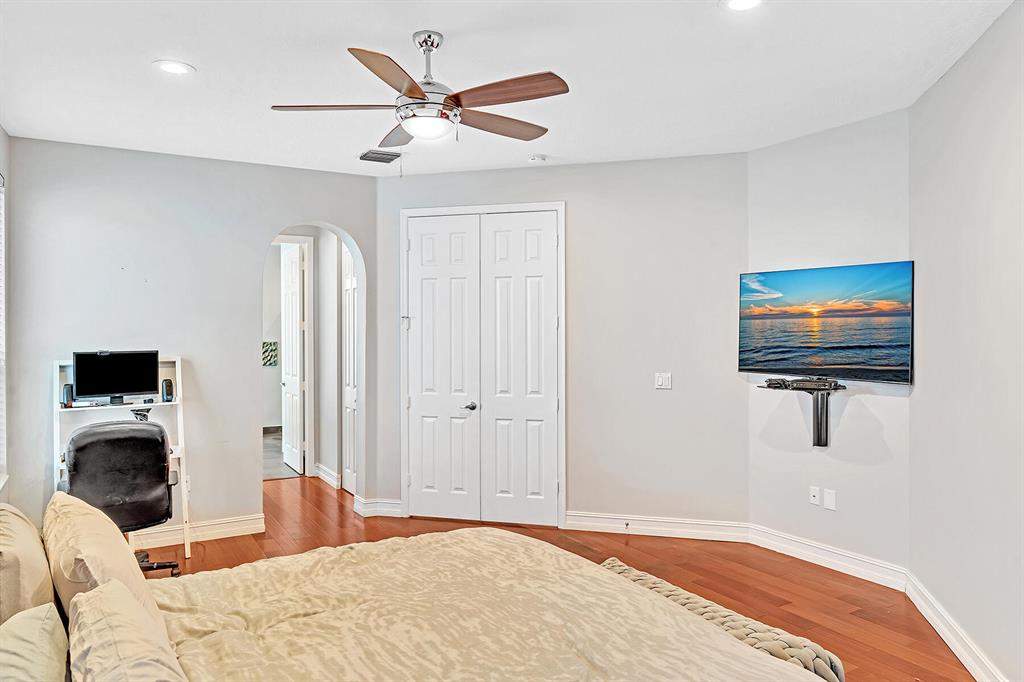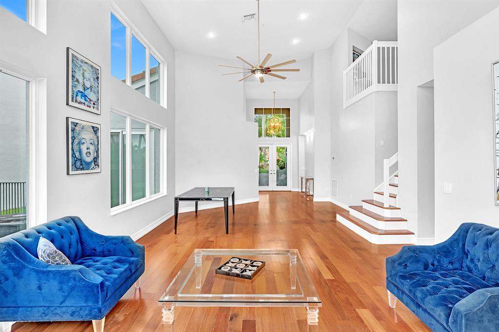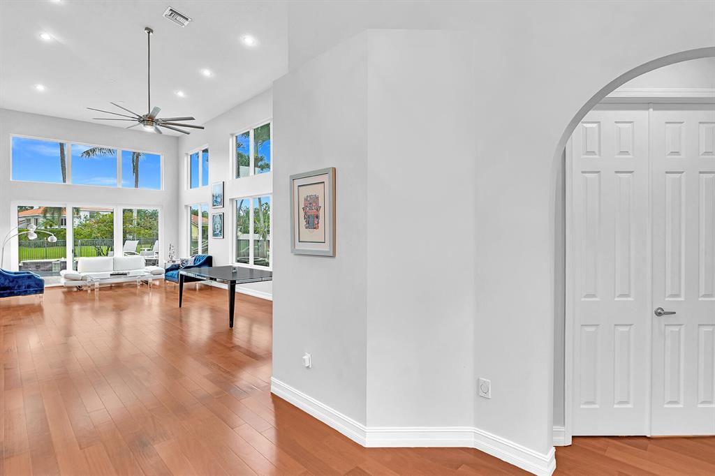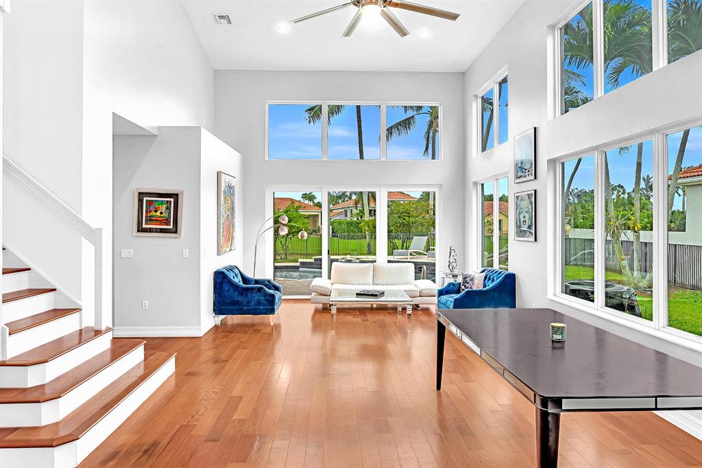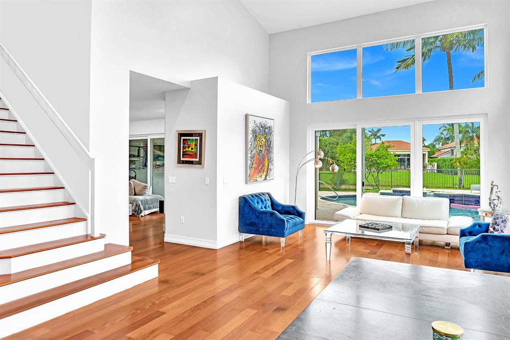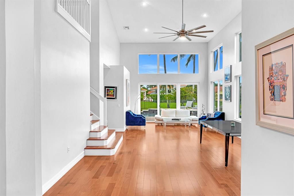 Absolutely Gorgeous 4 Bedroom Plus Large Loft 3.5 Bath Home (Can be put back as a 5th Bedroom easily) on the Lake at the end of the cul-de-sac. This home has it all from the hardwood floors on the main level and the stairs to the Hurricane Impact Windows and Doors (except for the front door and garage door) to the Gorgeous Gourmet Kitchen with Stainless Steel Appliances, Viking Gas Stove, Quartz Countertops with Waterfall Edge, to the Stunning Renovated Master Bath with Grey Slate-Like Tile, Free Standing Tub and Modern Shower to the Premium Contemporary Laminate Flooring Upstairs to the Tranquil Covered Lanai equipped with Summer Kitchen, Countertop, Stainless Steel Grill and Refrigerator and so much more. Newport Bay Club is a Preferred Zone for Morikami Elementary.