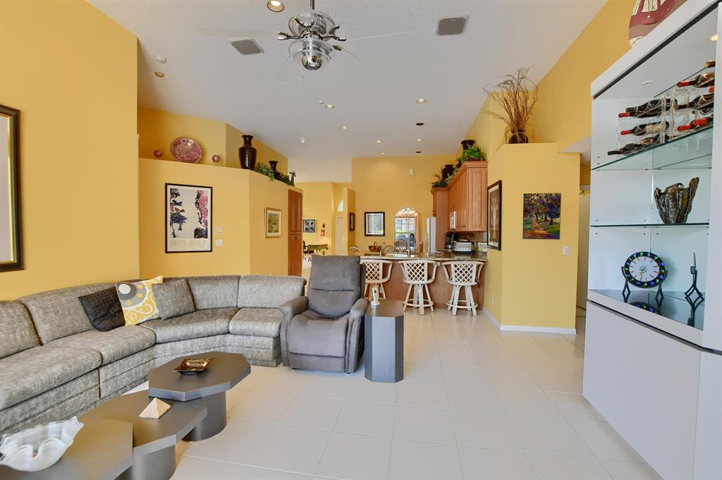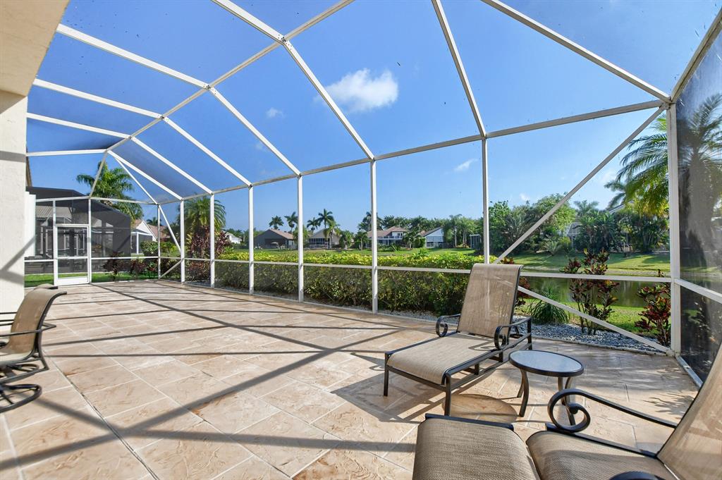 Starting w/the circular driveway for extra parking, this 4 bedroom open concept spacious home has it all. Located on an interior lot w/serene lake views. Entry foyer, formal dining & living rooms, eat-in kitchen w/updated cabinets, pantry & granite counters. Open family room over looks the extended screened in patio ideal for family gatherings & entertaining. Primary bedroom suite, walk-in closets, bathroom w/updated vanity w/dual sinks, roman tub & glass enclosed shower. Split bedroom floor plan, renovated cabana/main bathroom w/glass enclosed shower & vanity. Interior laundry room, ceiling fans, built-in units, a/c 2015, water heater 2013, accordion storm shutters. A rated schools, clubhouse, gym, tennis, pool & playground. Ideal for all ages- a great place to call home.