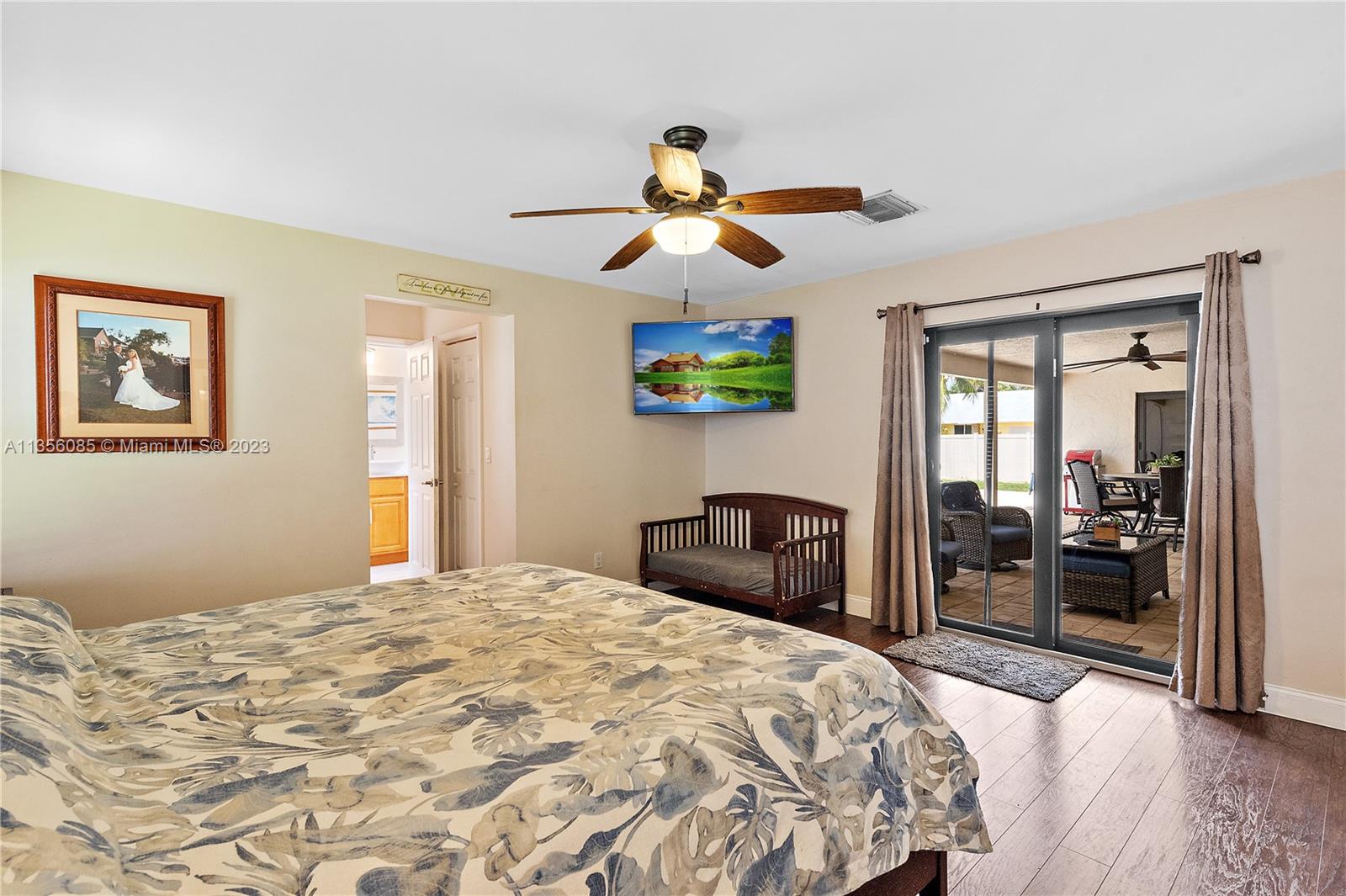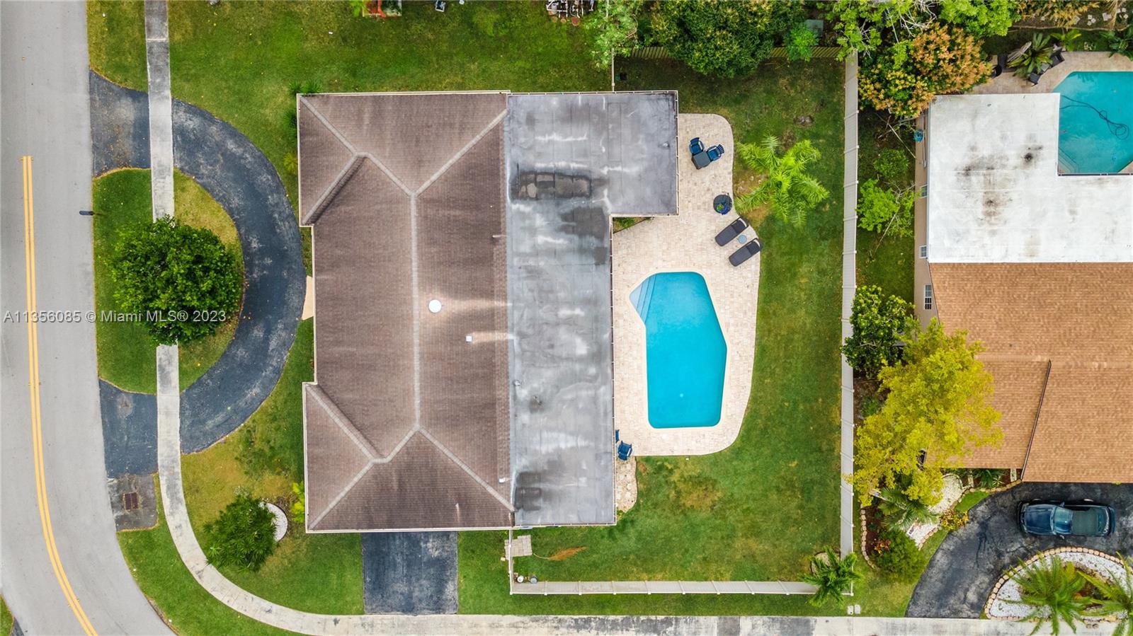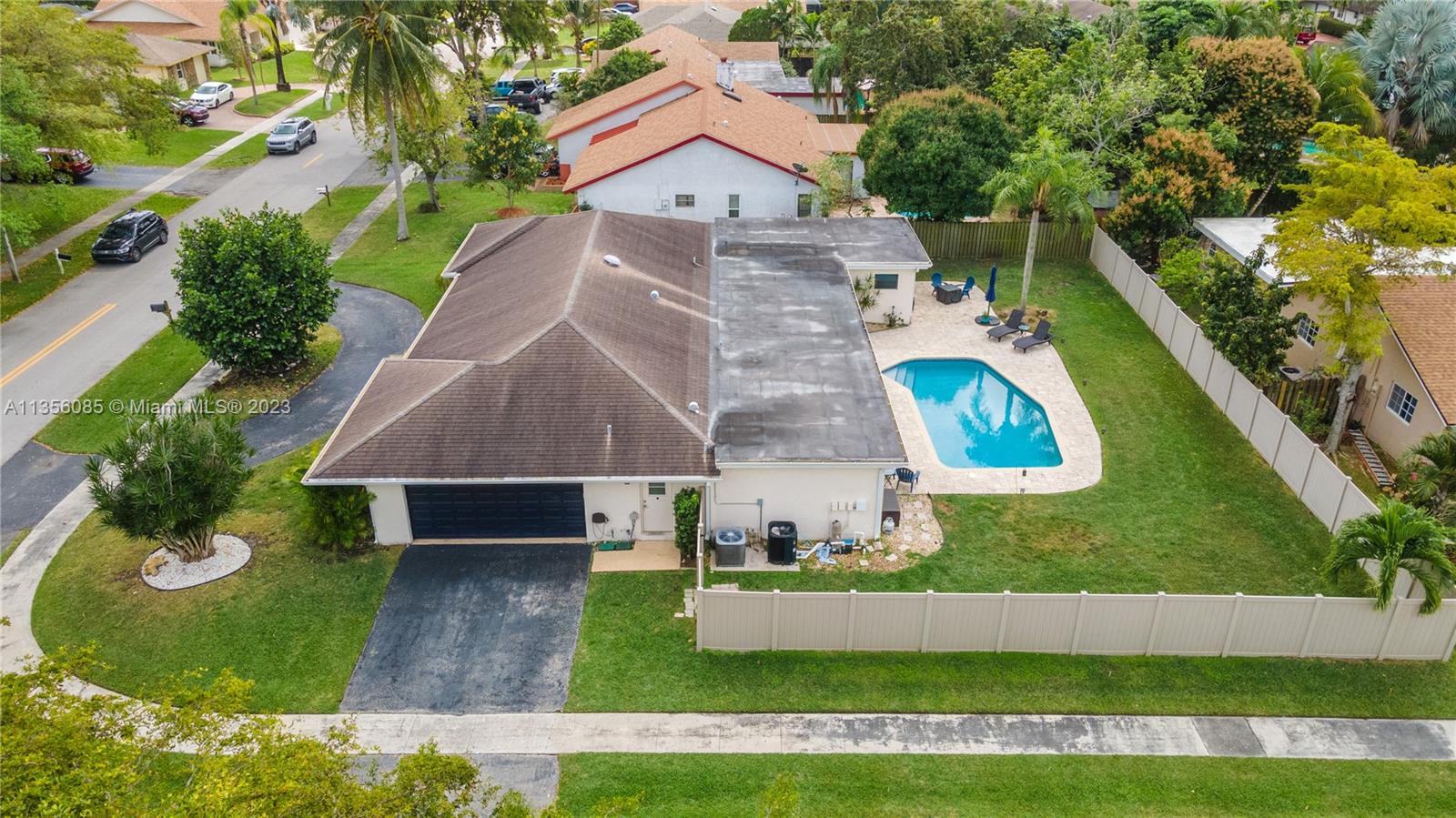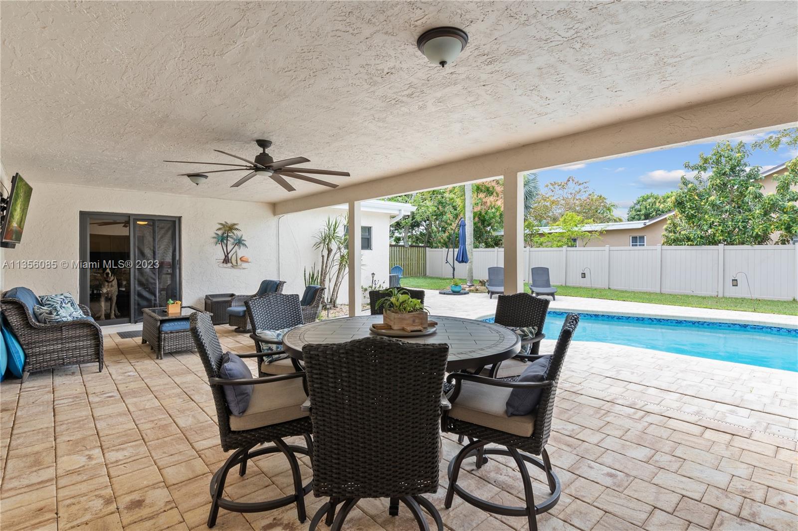 Nestled on over a ¼ acre lot in Marcano Estates, this beautiful home is situated on a private, corner lot and features 4 bedrooms, 2 ½ bathrooms (1 of which is a Cabana Bath), 2-car garage, pool, new impact windows and sliders, formal living & dining, tile floor throughout main living areas & wood laminate flooring in the bedrooms. The spacious kitchen features wood cabinetry, tile backsplash, stainless steel appliances and opens to the Family Room. The Primary bedroom features 2 walk-in closets, sliding door access to the covered patio area & ensuite w/ dual vanities & shower. Additional features include a laundry room, plantation shutters, spacious covered patio area overlooking the pool & yard, 2 driveways w/ ample room for a boat/RV, and a 6ft privacy-fenced back yard and no HOA.