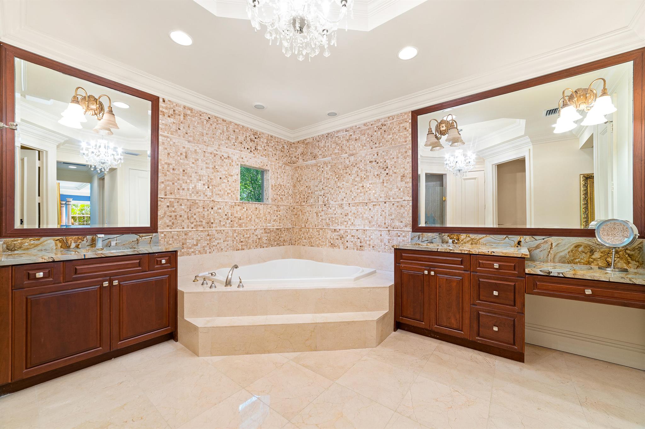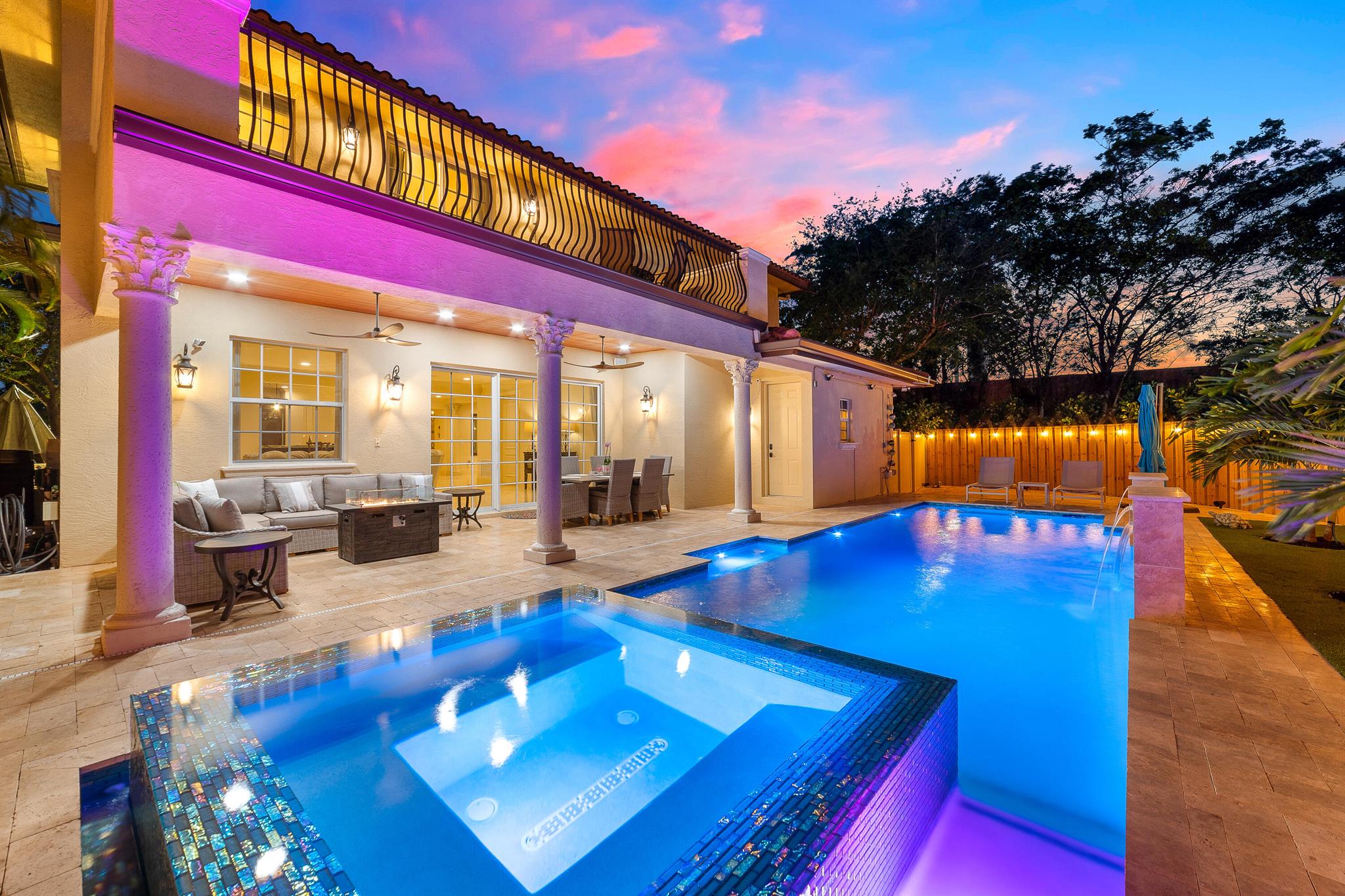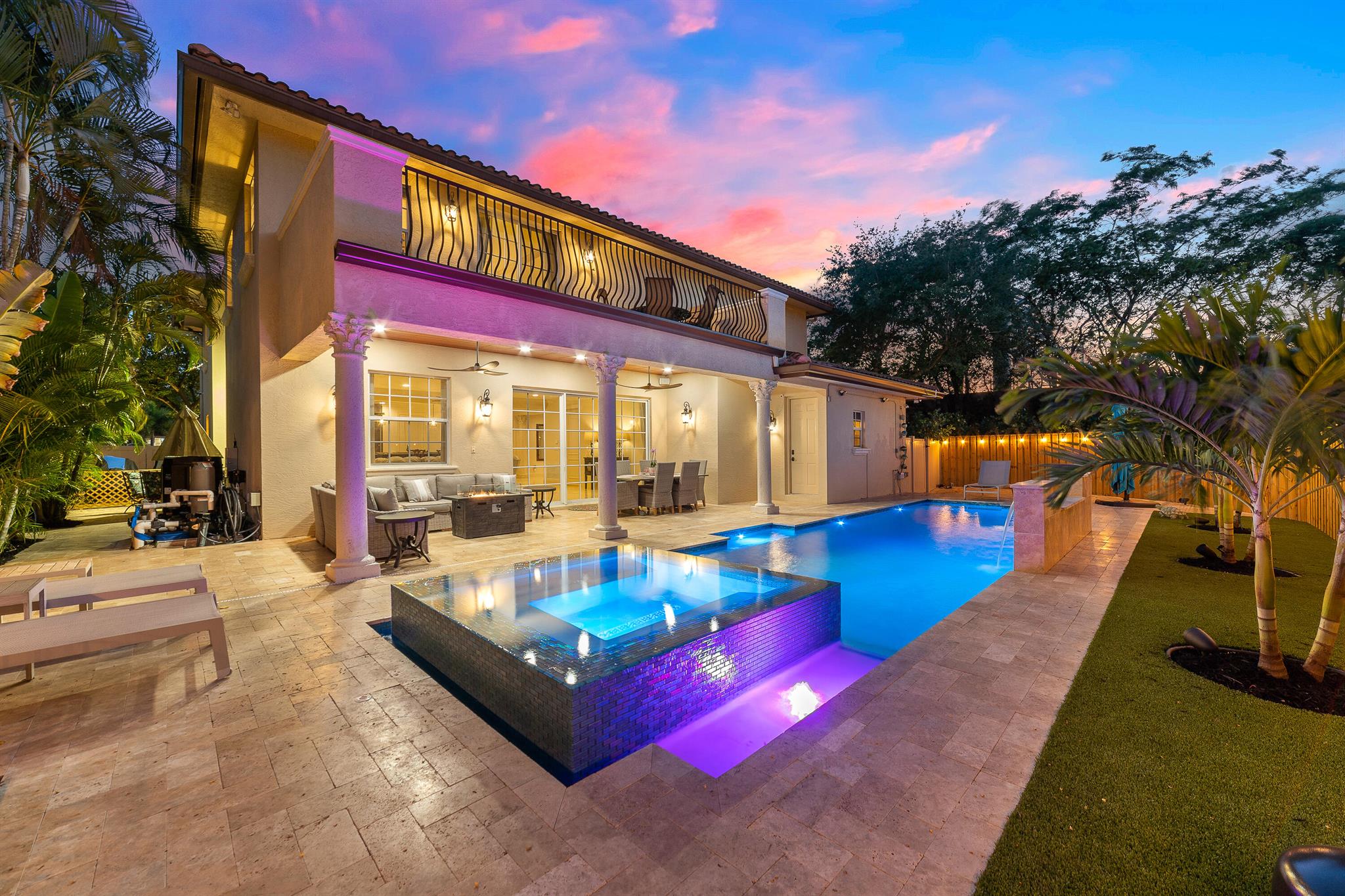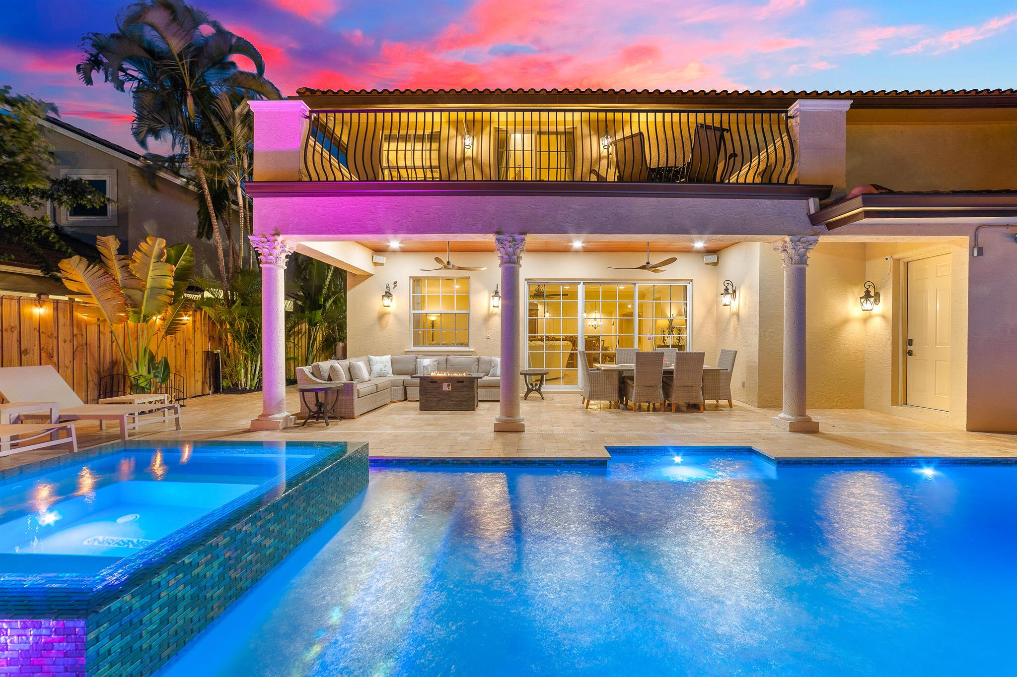 Impressive Mediterranean home on a private corner lot in non HOA community Palm Beach Farms. Close to A-rated schools including Addison Mizner Elementary, shopping, restaurants, parks and beach. Grand entrance with 20 ft ceilings, travertine marble flooring with onyx marble inlay, spacious floorplan, impact windows and doors make the house very quiet, open kitchen with top-of-the-line appliances, exotic quartzite countertops, large walk in pantry, new flat roof, partial home generator, and new hot water heater. Upstairs a spacious spa-like primary suite and four additional bedrooms. Two NEW A/C units. Private, fenced in, resort-style backyard oasis with a fully automated NEW heated saltwater pool & infinity spa & full cabana bathroom. Side yard gives you space for your boat or jet skis.