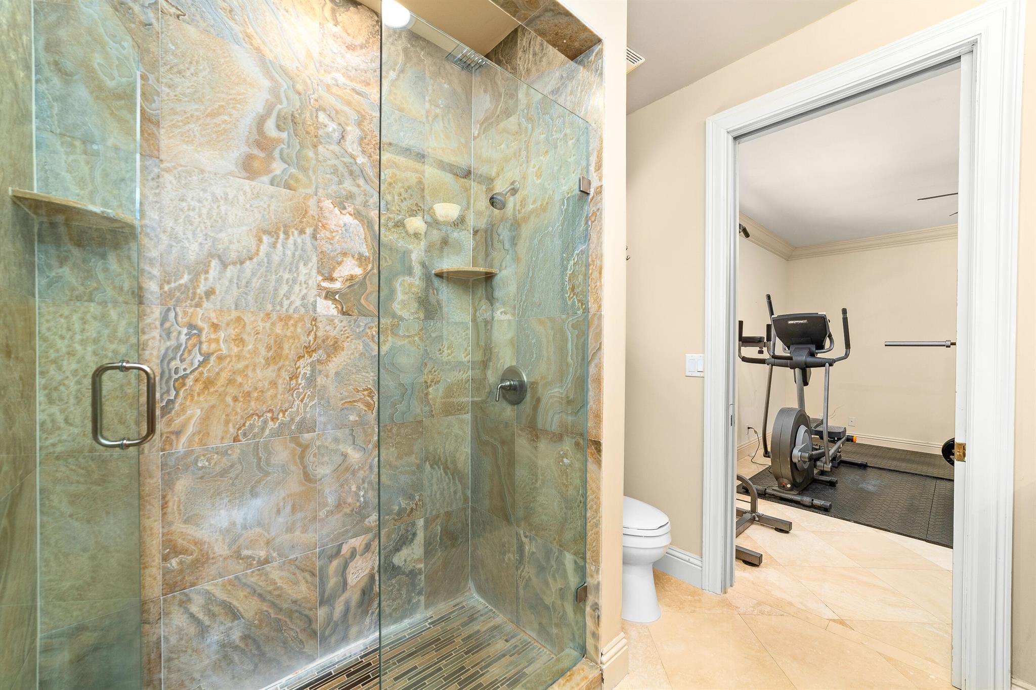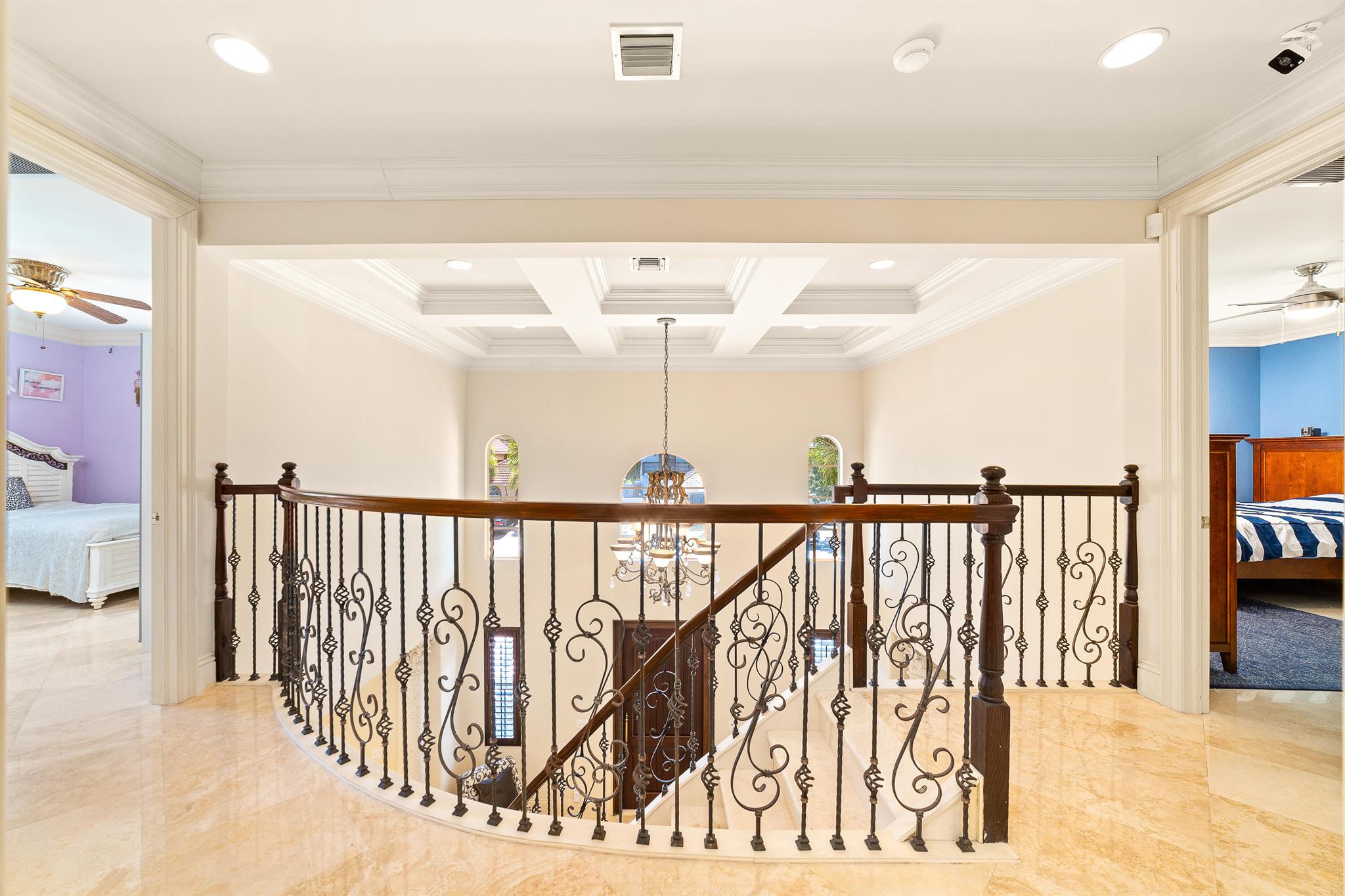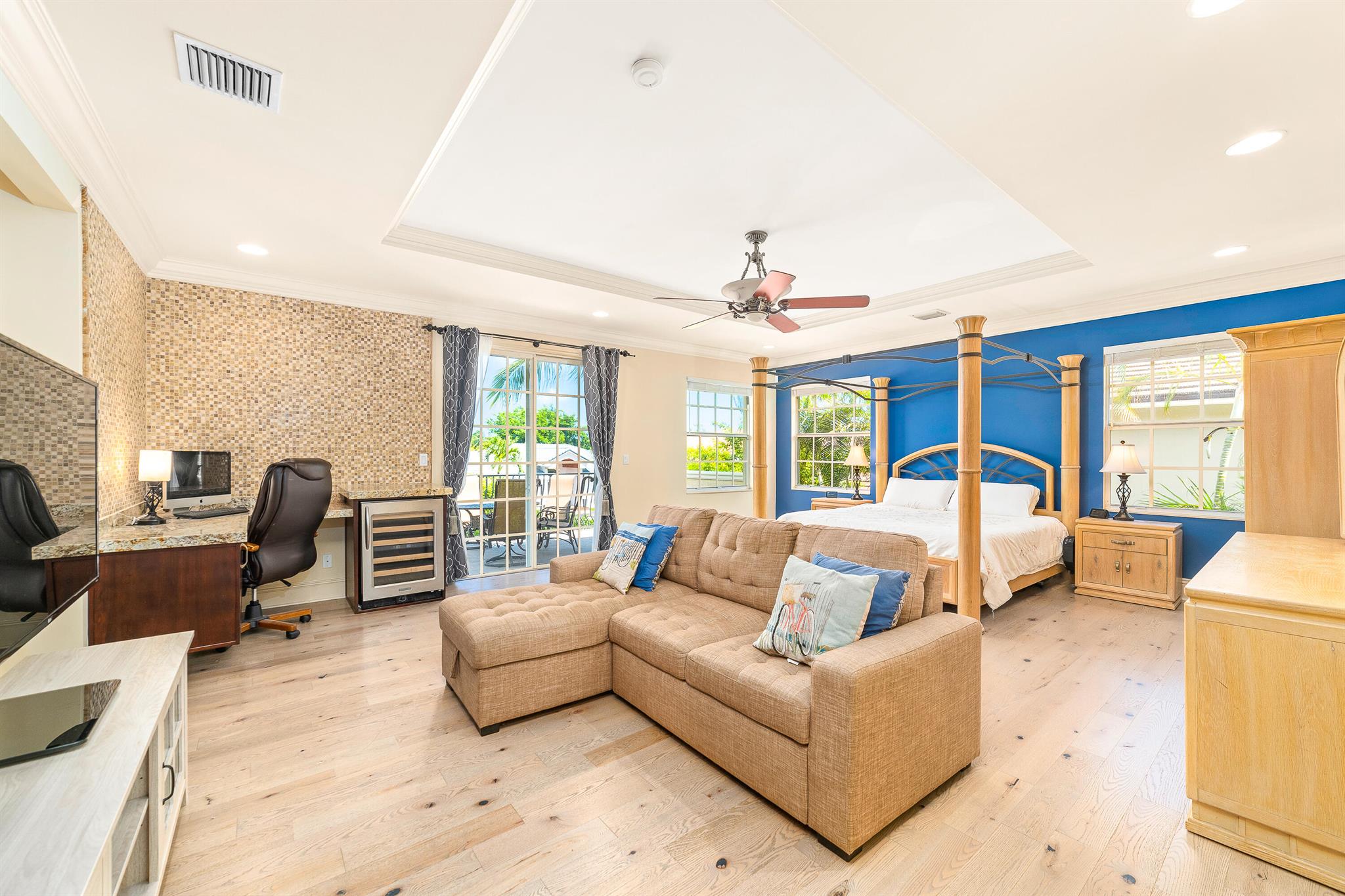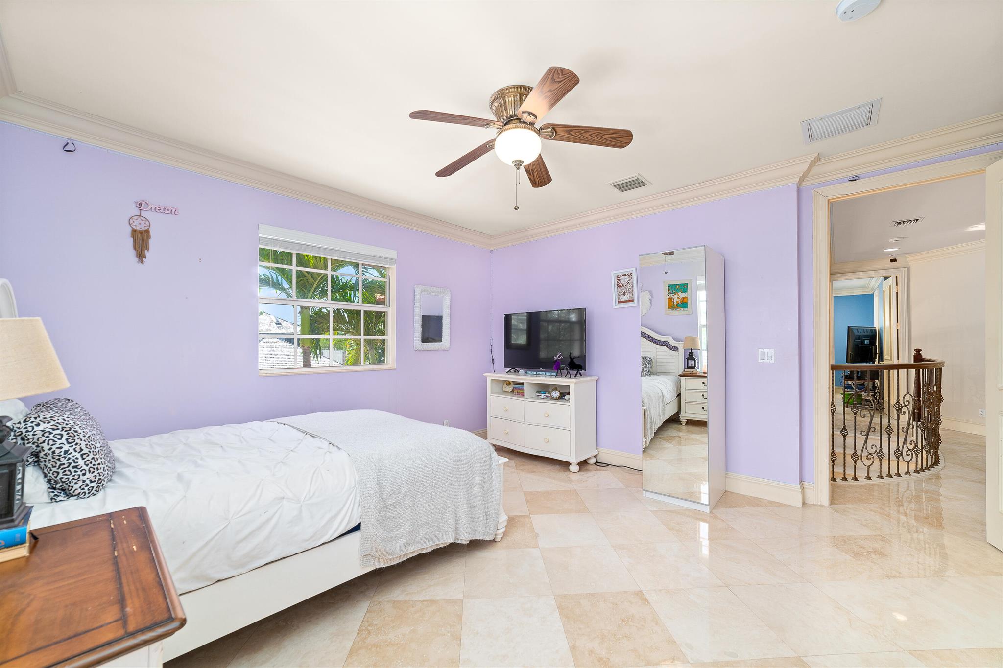 Impressive Mediterranean home on a private corner lot in non HOA community Palm Beach Farms. Close to A-rated schools including Addison Mizner Elementary, shopping, restaurants, parks and beach. Grand entrance with 20 ft ceilings, travertine marble flooring with onyx marble inlay, spacious floorplan, impact windows and doors make the house very quiet, open kitchen with top-of-the-line appliances, exotic quartzite countertops, large walk in pantry, new flat roof, partial home generator, and new hot water heater. Upstairs a spacious spa-like primary suite and four additional bedrooms. Two NEW A/C units. Private, fenced in, resort-style backyard oasis with a fully automated NEW heated saltwater pool & infinity spa & full cabana bathroom. Side yard gives you space for your boat or jet skis.
