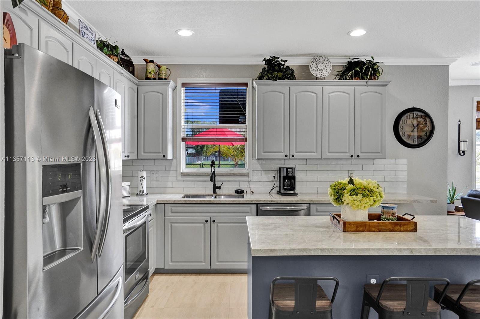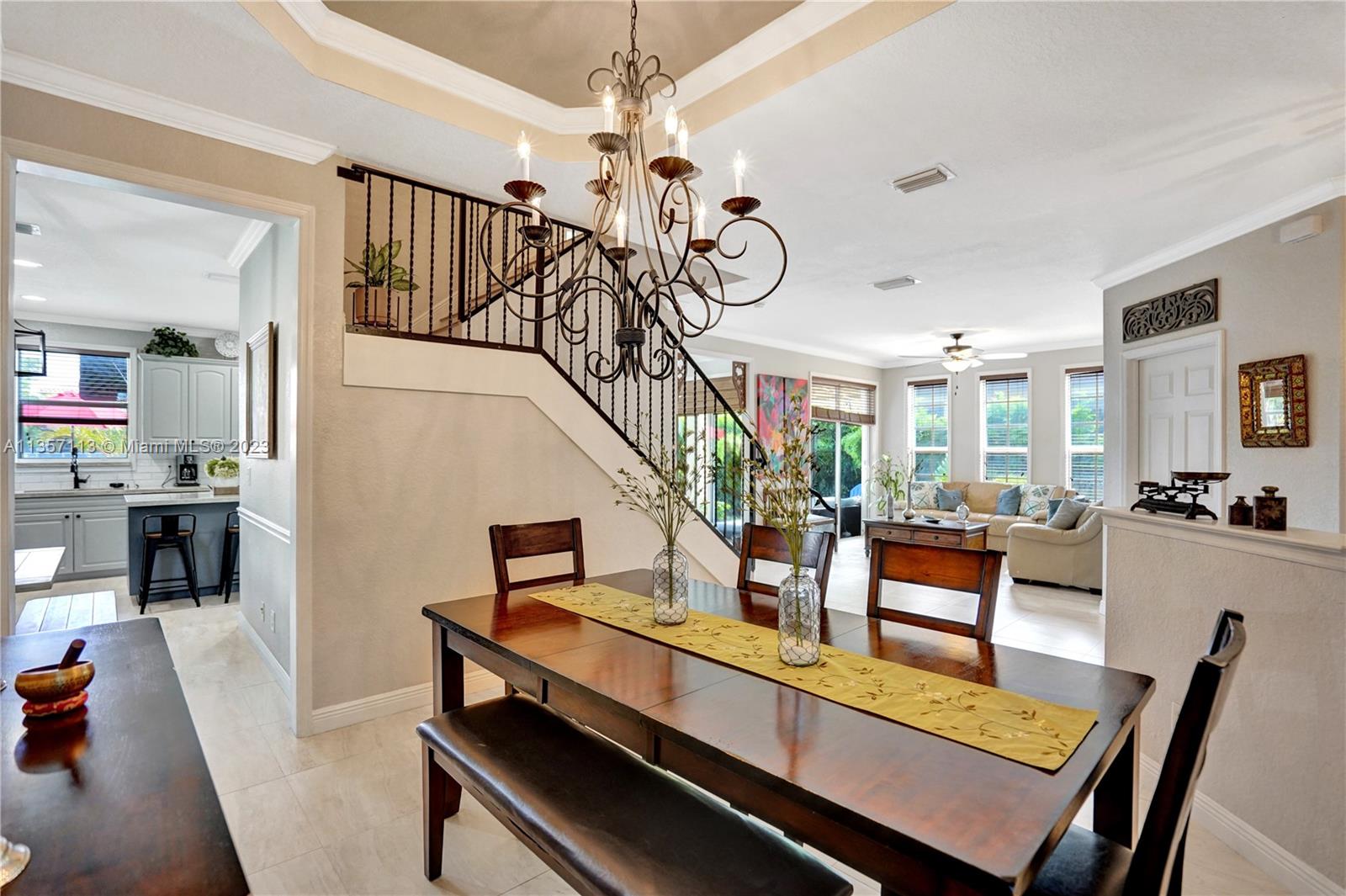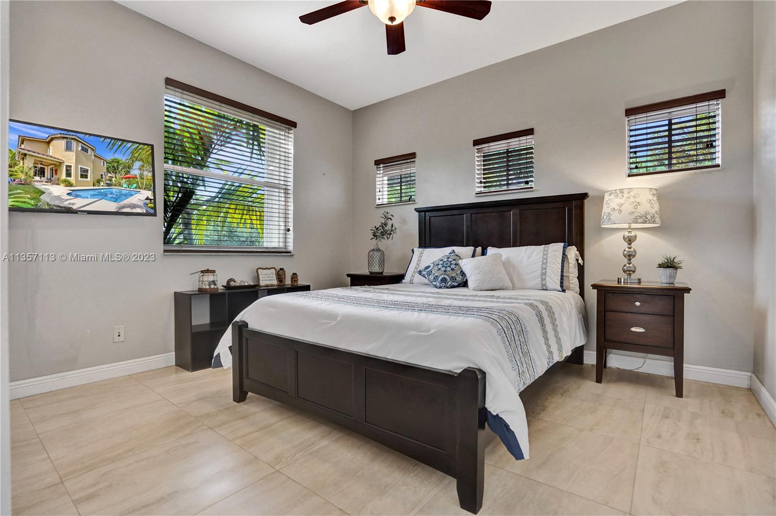 This waterfront home with a pool is absolutely stunning and very spacious! Bright & open floor plan with large social areas. An expansive gourmet kitchen with Quartzite counter tops and top-of-the line stainless steel appliances. The primary bedroom is spacious and offers a large walk-in closet. Fully remodeled bathrooms, new porcelain flooring, fresh interior & exterior paint, A/C replaced 2 years ago, vaulted ceilings, new iron railing on the stairs, surround sound, crown moldings, elegant chandelier and light fixtures, smart light control, second floor accordion shutters. Gorgeous backyard boasts a sparkling pool, an amazing lake view, lush landscaping, making it the perfect place for entertaining! This home is ready to move in!