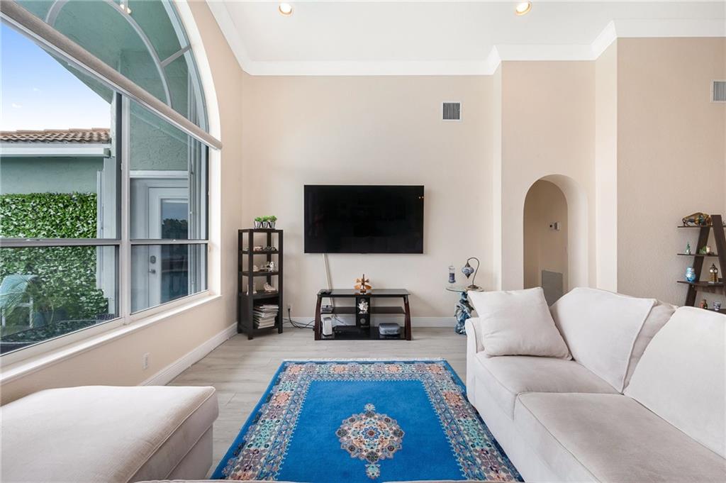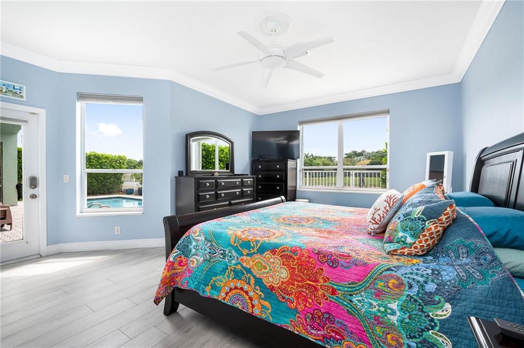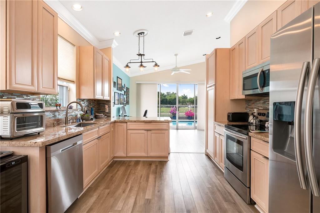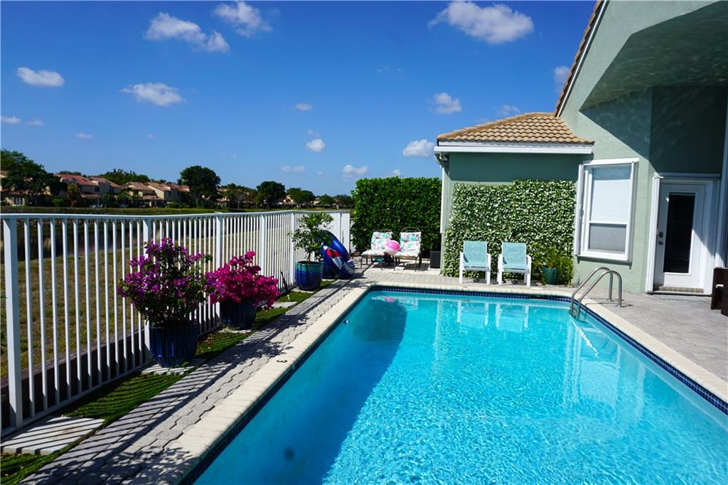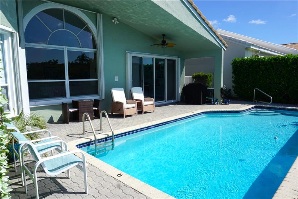 Boca Pointe/Costa Del Sol. Bright and airy one story home has an open floor plan with vaulted ceiling/windows offering extended picturesque backyard views overlooking your heated 15x30 pool, wide flowing canal and a landscaped park. Inside you'll find 3 bedrooms/2.5 baths, an updated kitchen(granite, S/S appl.,large cabinets) & bath vanities, indoor W/D room and more. 2 car garage with paver driveway, sprinkler system, alarm system, hurricane shutters, tile roof, all in a gated community with pool. HOA includes gatehouse guard, roaming Boca Pointe patrols, lawn/shrub maintenance, cable (incl. HBO), house painting and more. Boca Pointe Country Club is Optional & not required. Suburban quiet street setting yet close to many stores, shops, restaurants and a few minutes to the beach.