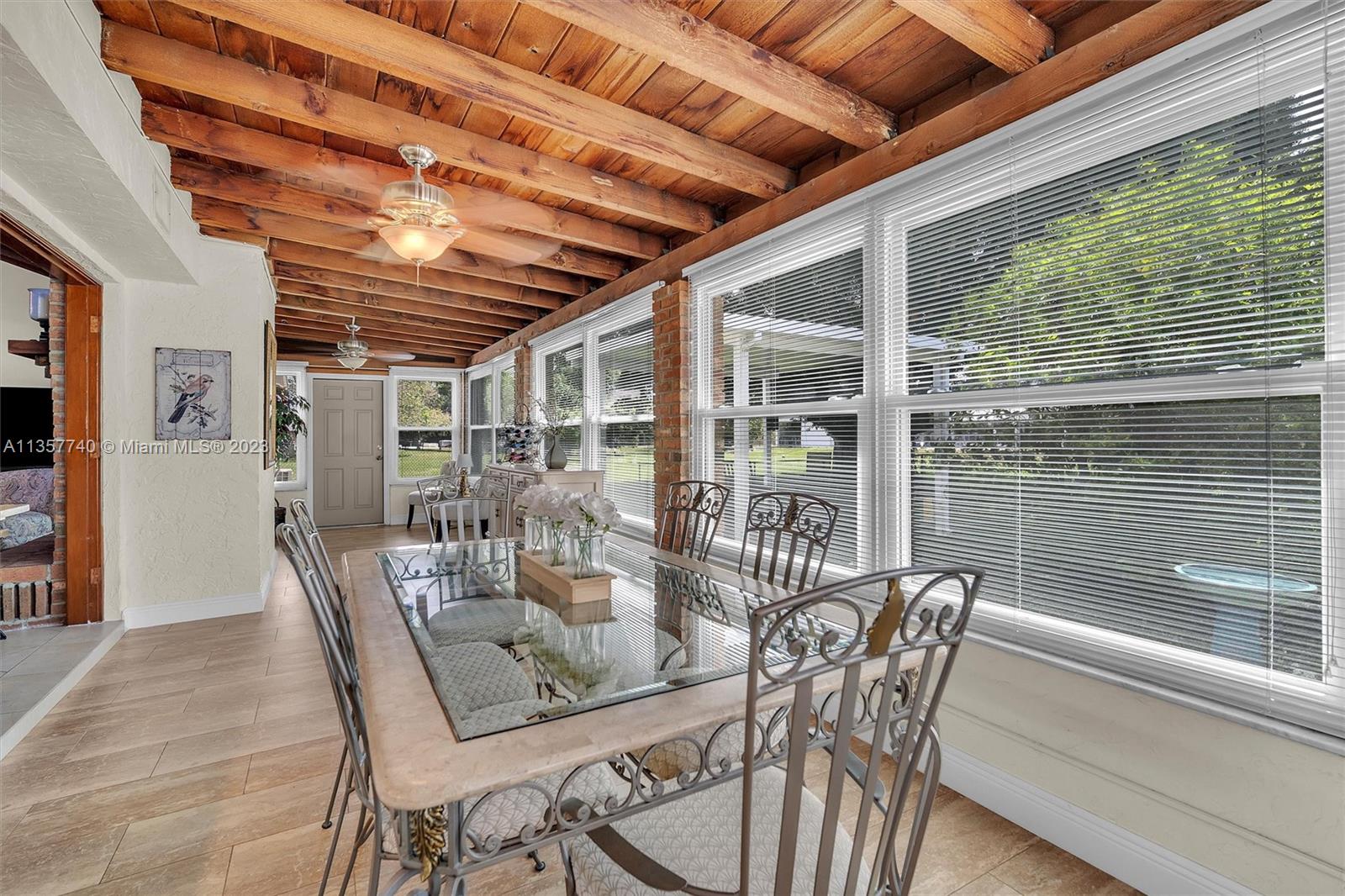 THIS UNIQUE DAVIE HOME SITS ON A 36,856 SQ.FT CORNER LOT. THE HOME OFFERS STACKED 3-BR & 2.5 BA IN THE MAIN HOUSE AND AN ATTACHED BONUS BUILDING THRU THE GARAGE THAT CAN EASILY BE THE 4TH BEDROOM, MAN'S CAVE, IN-LAW SUITE, OR HOME BUSINESS. (LET YOUR IMAGINATION RUN WILD) NEWER FEATURES INCLUDE: ROOF 2017, TWO A/C'S (5 MON.& 5 YRS.) KITCHEN (4YRS) 1/2 BATH (2022), FULL HOME GENERATOR, IMPACT WINDOWS & DOORS, SOLAR PANELS FOR LOW-COST ELECTRIC & SOLAR WATER HEATER. THE MAIN HOUSE IS FLOODED WITH NATURAL LIGHT AND FEATURES A FORMAL LIVING ROOM/DINING AREA, AND A FAMILY ROOM W/ WOOD BURNING FIREPLACE, THE FLORIDA ROOM IN THE REAR OF THE PROPERTY OFF THE KITCHEN ALLOWS FOR A GREAT ENTERTAINING EXPERIENCE. OVERSIZED DRIVE-THRU GARAGE & 2 LRG. DRIVEWAYS, NO HOA, HORSES WELCOME, A+ SCHOOLS.