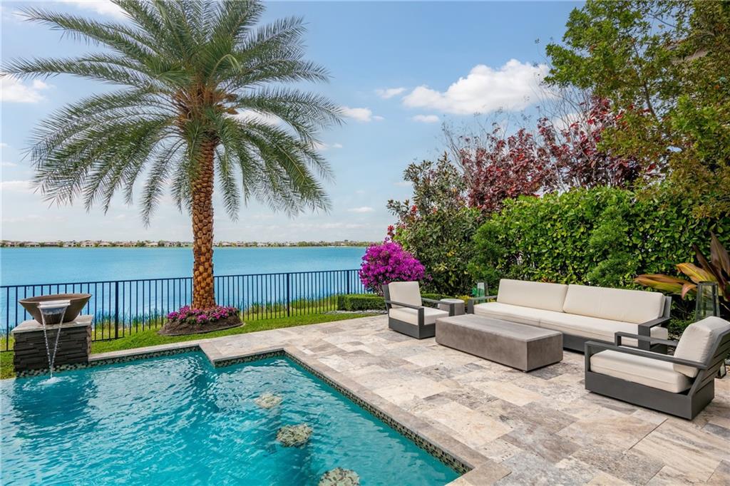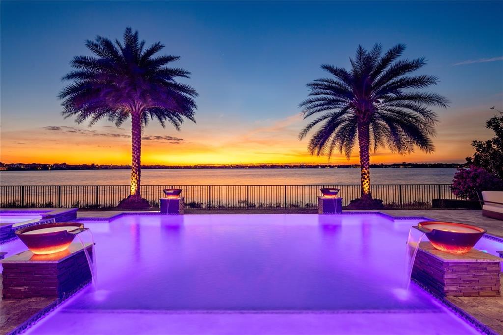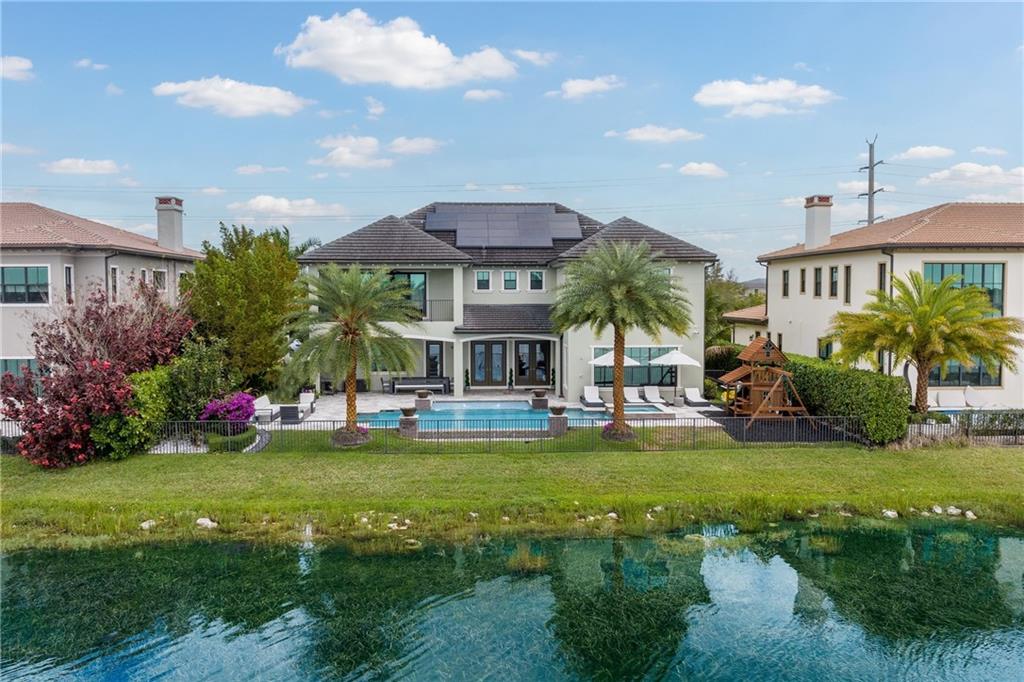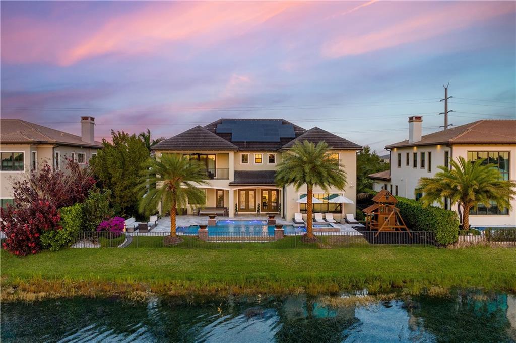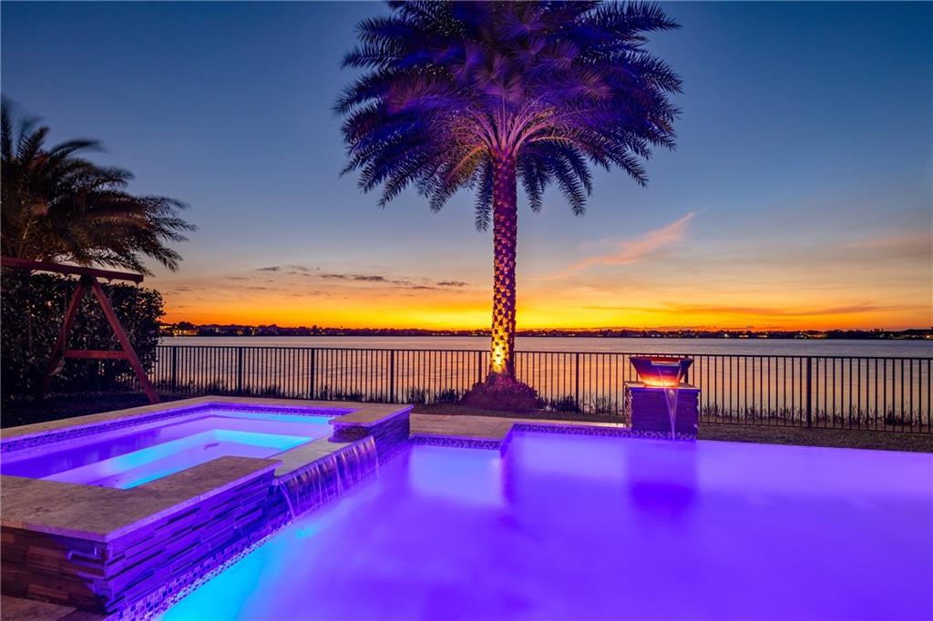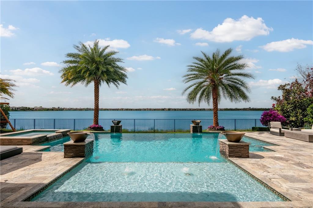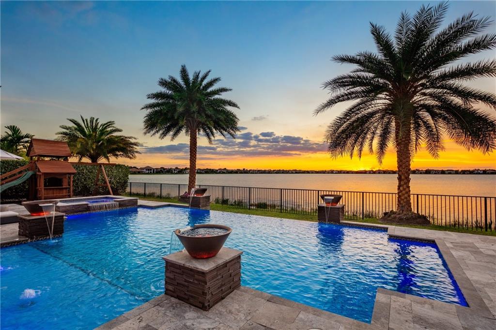 With over $500,000 in upgrades this expansive custom Barrington model features 6 bedrooms, 5 baths and 2 powder rooms and sits on 90 feet of lake frontage on a 11,250 square foot lot in the sought after neighborhood of Watercrest. Fully automated with Crestron, this home is professionally designed and completed with rich hardwood and porcelain flooring, a gourmet kitchen featuring Sub Zero and Wolf appliances with oversized quartz island, well appointed dining and living spaces, state-of-the-art theater room and office/optional 6th bedroom. Watch a stunning sunset from your living room, ultra-luxurious second floor master suite, or spacious backyard. Resort-style saltwater heated pool and spa, perfect for entertaining. Additional features: solar panels, outdoor play set and 3 car garage.