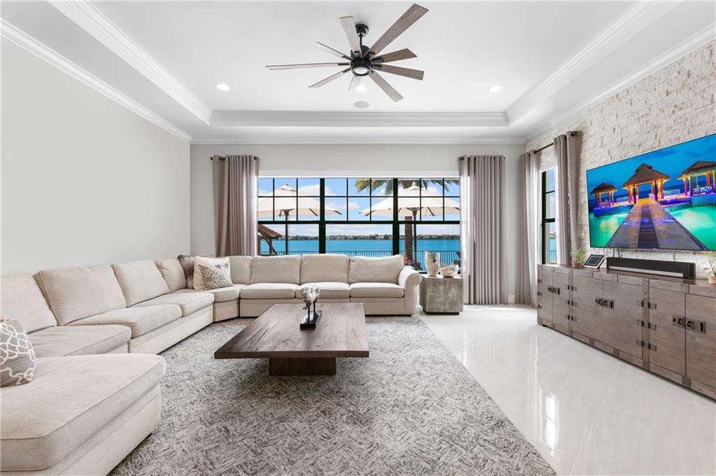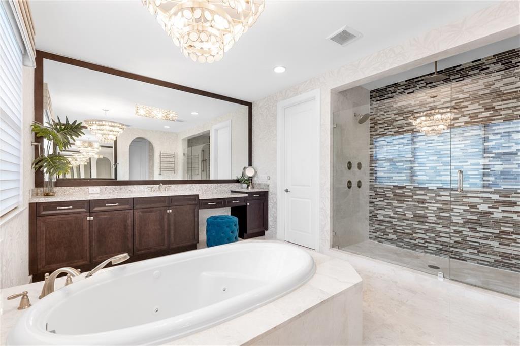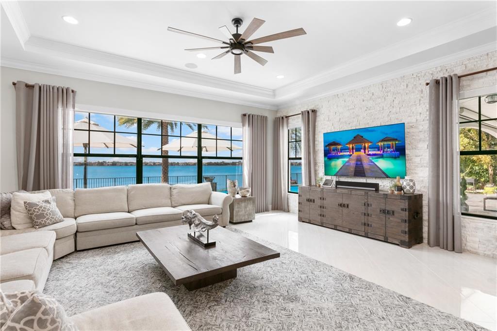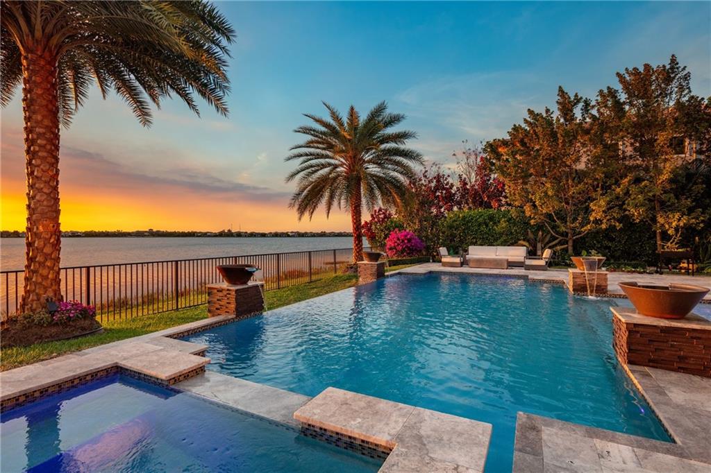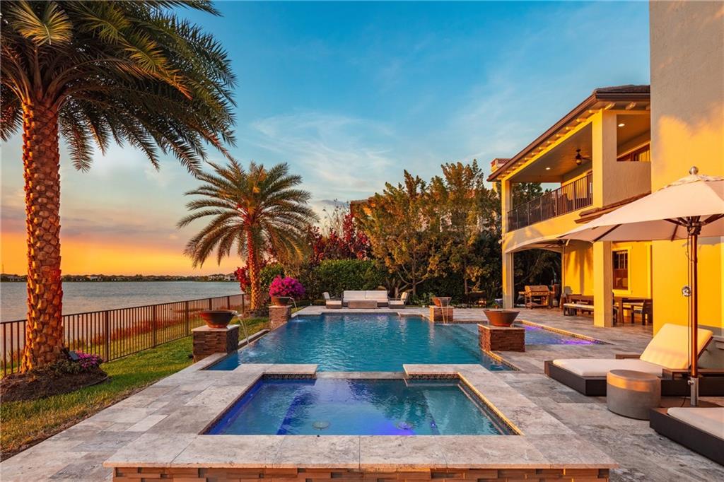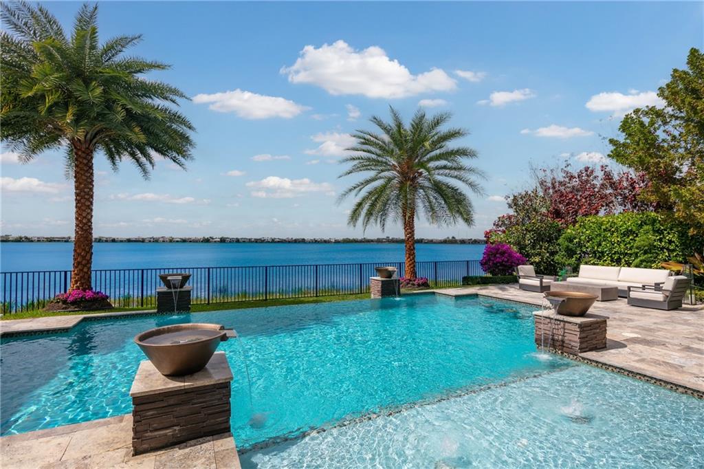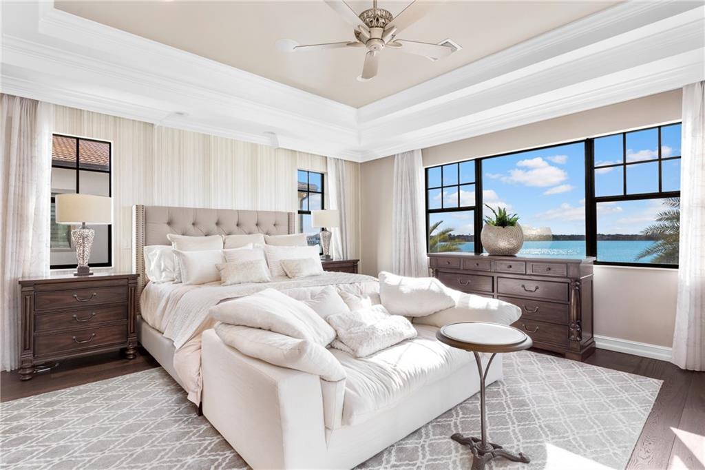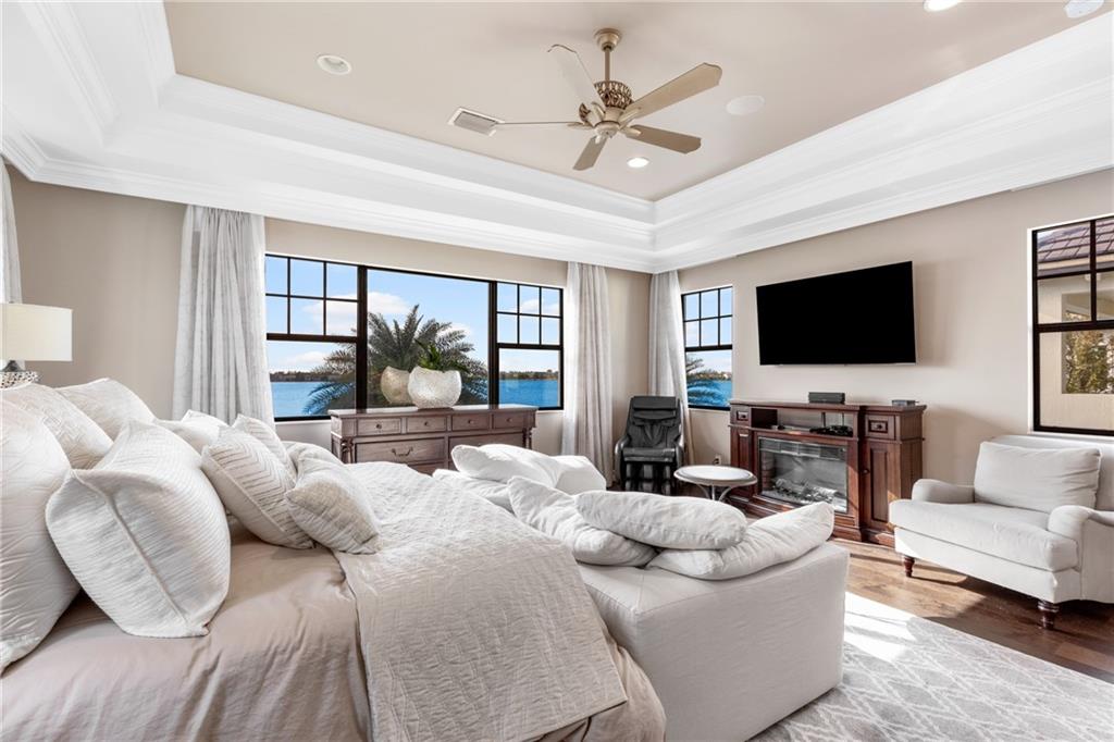 With over $500,000 in upgrades this expansive custom Barrington model features 6 bedrooms, 5 baths and 2 powder rooms and sits on 90 feet of lake frontage on a 11,250 square foot lot in the sought after neighborhood of Watercrest. Fully automated with Crestron, this home is professionally designed and completed with rich hardwood and porcelain flooring, a gourmet kitchen featuring Sub Zero and Wolf appliances with oversized quartz island, well appointed dining and living spaces, state-of-the-art theater room and office/optional 6th bedroom. Watch a stunning sunset from your living room, ultra-luxurious second floor master suite, or spacious backyard. Resort-style saltwater heated pool and spa, perfect for entertaining. Additional features: solar panels, outdoor play set and 3 car garage.