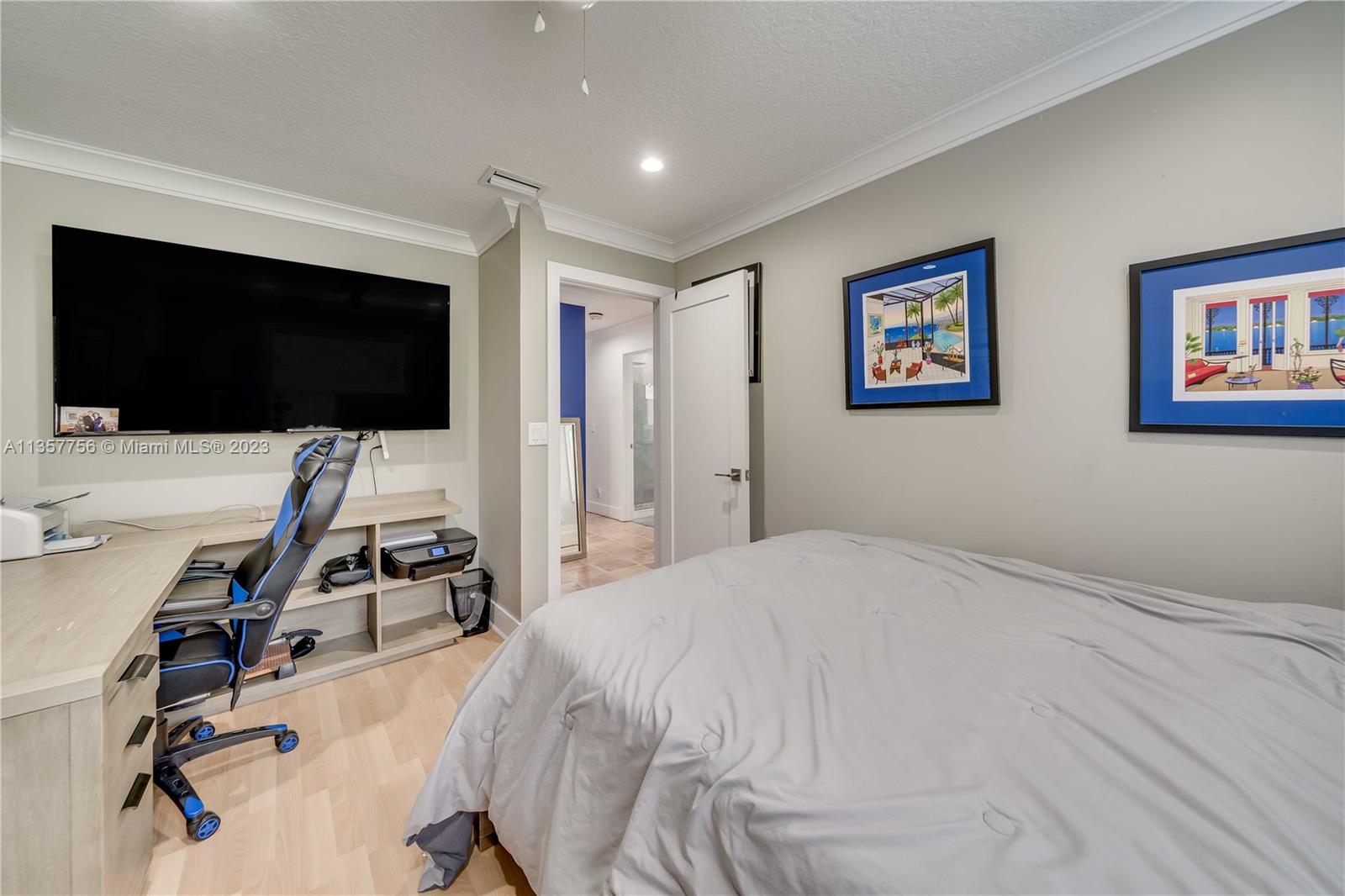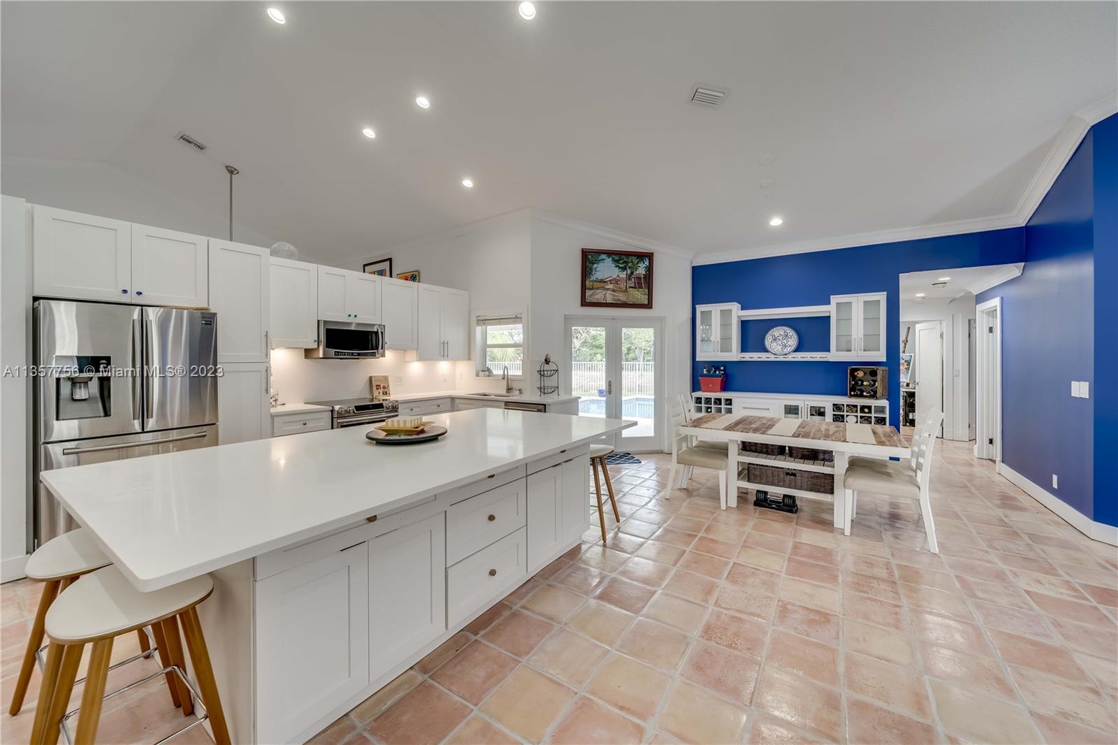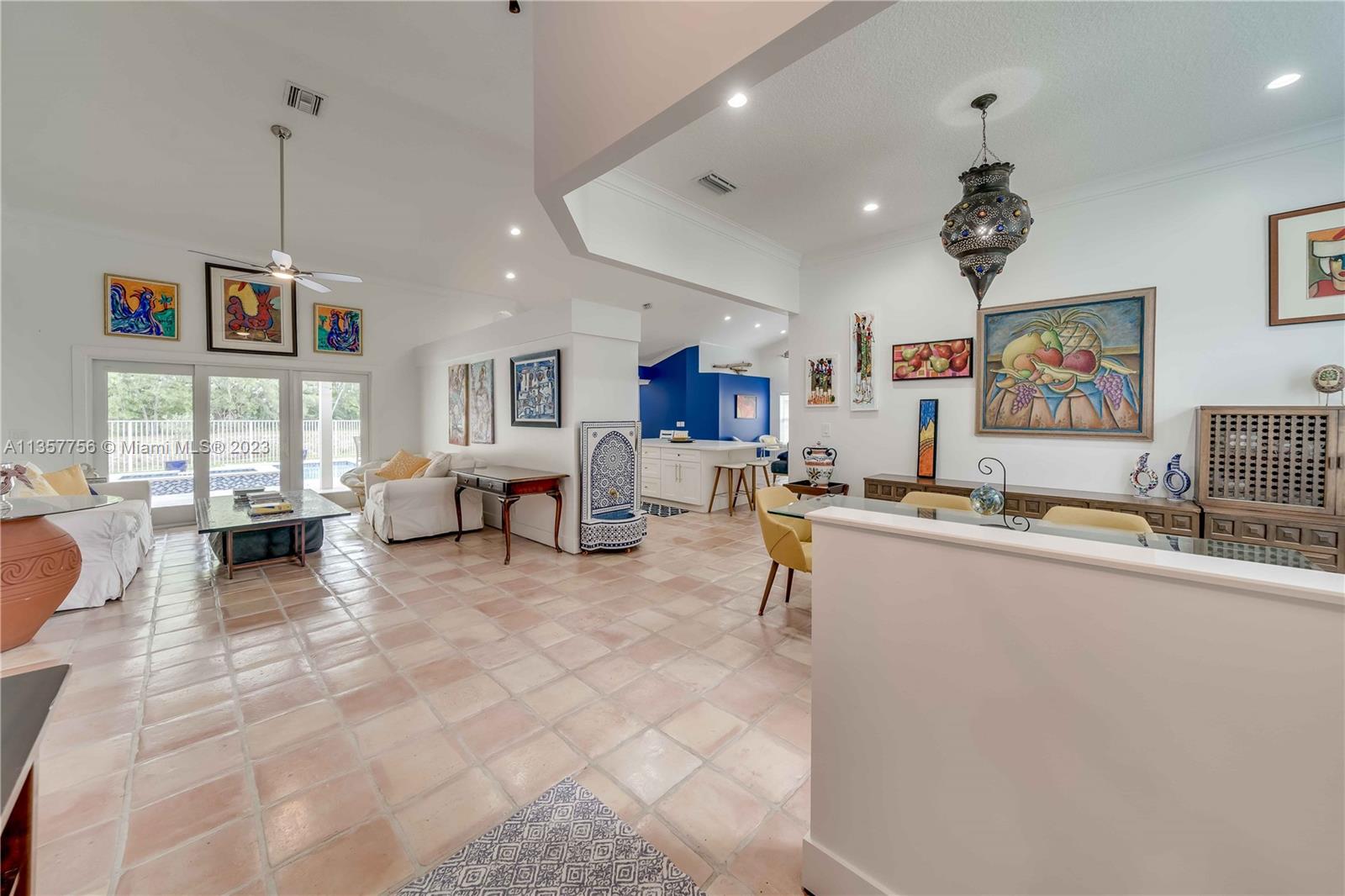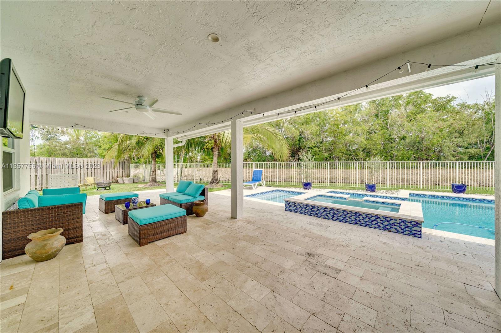Immaculate, 4 BR, 2.5 BA, 2310 sq ft ranch home in highly sought after Fox Run at Jacaranda in established Plantation, FL, located on water, rear of community, privacy and serenity, complete modern renovation, split bedroom, open floor plan w/volume ceilings, impact windows, spacious kitchen/great room w/upgraded appliances, built in bar, quartz countertops, extended island; custom wood cabinetry, closets, and doors; upgraded ceiling fans and LED lighting, master bedroom en suite w/soaking tub, walk in laundry room w/sink, 2 car garage, covered outdoor living space to entertain, custom pool built 2019 w/lounging pad, waterfall, bench swim-out, LED lighting, travertine deck, avocado and tamarind trees, lush coconut palms, close to local parks, shopping, dining, sports and So FL lifestyle.