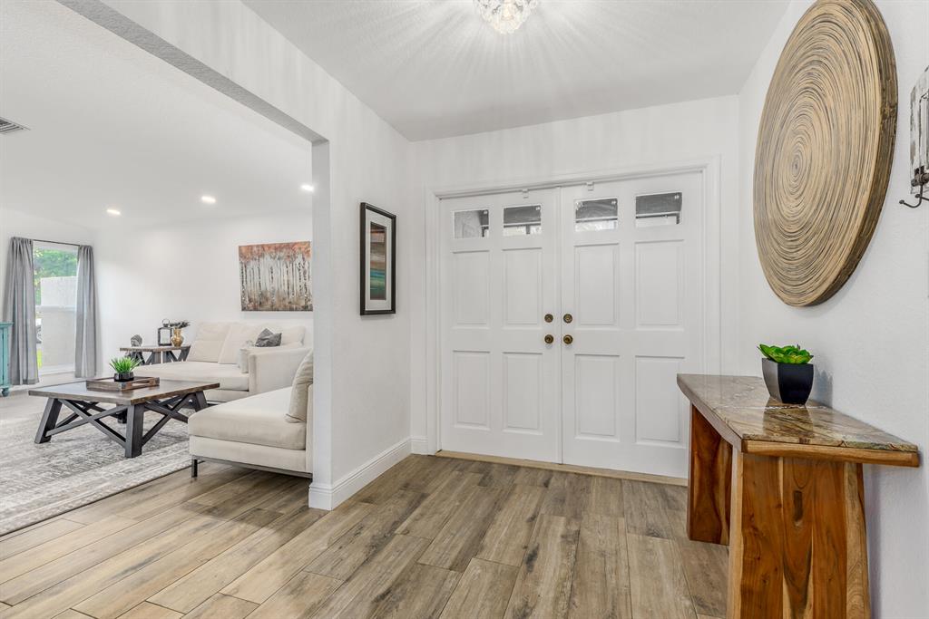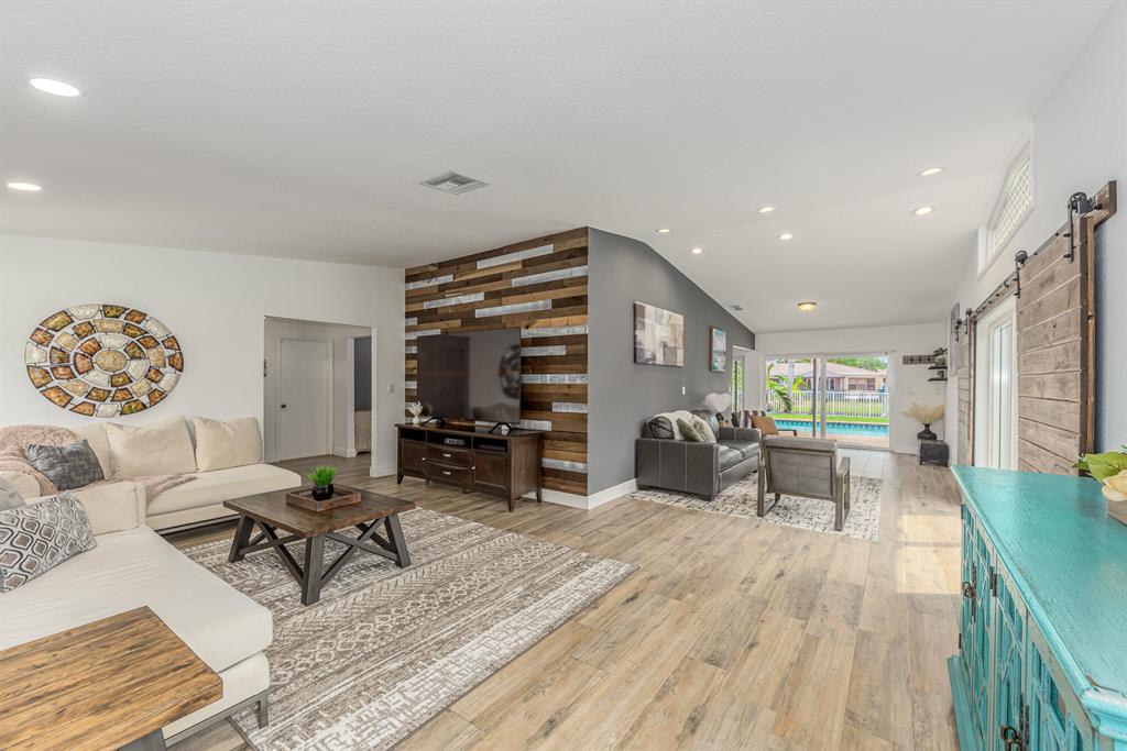 FINALLY, this is the ONE you have been waiting for. Be prepared to fall in love with this stunning, COMPLETELY remodeled 3/2, CBS, pool home. This oversized lakefront property is sure to wow you with its stunning waterfront views. Over $100,000 in recent upgrades to include: Freshly painted exterior, full kitchen remodel with gorgeous quartz countertops, stainless steel appliances & beautiful backsplash. Full bathroom remodels to include floor to wall tile, frameless shower door, dual vanity. All new wood plank tile flooring. Complete Impact glass windows & doors to include 4 sliders (2 triple wide). One of a kind custom build barn door window fixture. New Impact rated garage door, new pool pump, new electric panel with generator hook up and SO much more. This one you DO NOT want to miss!