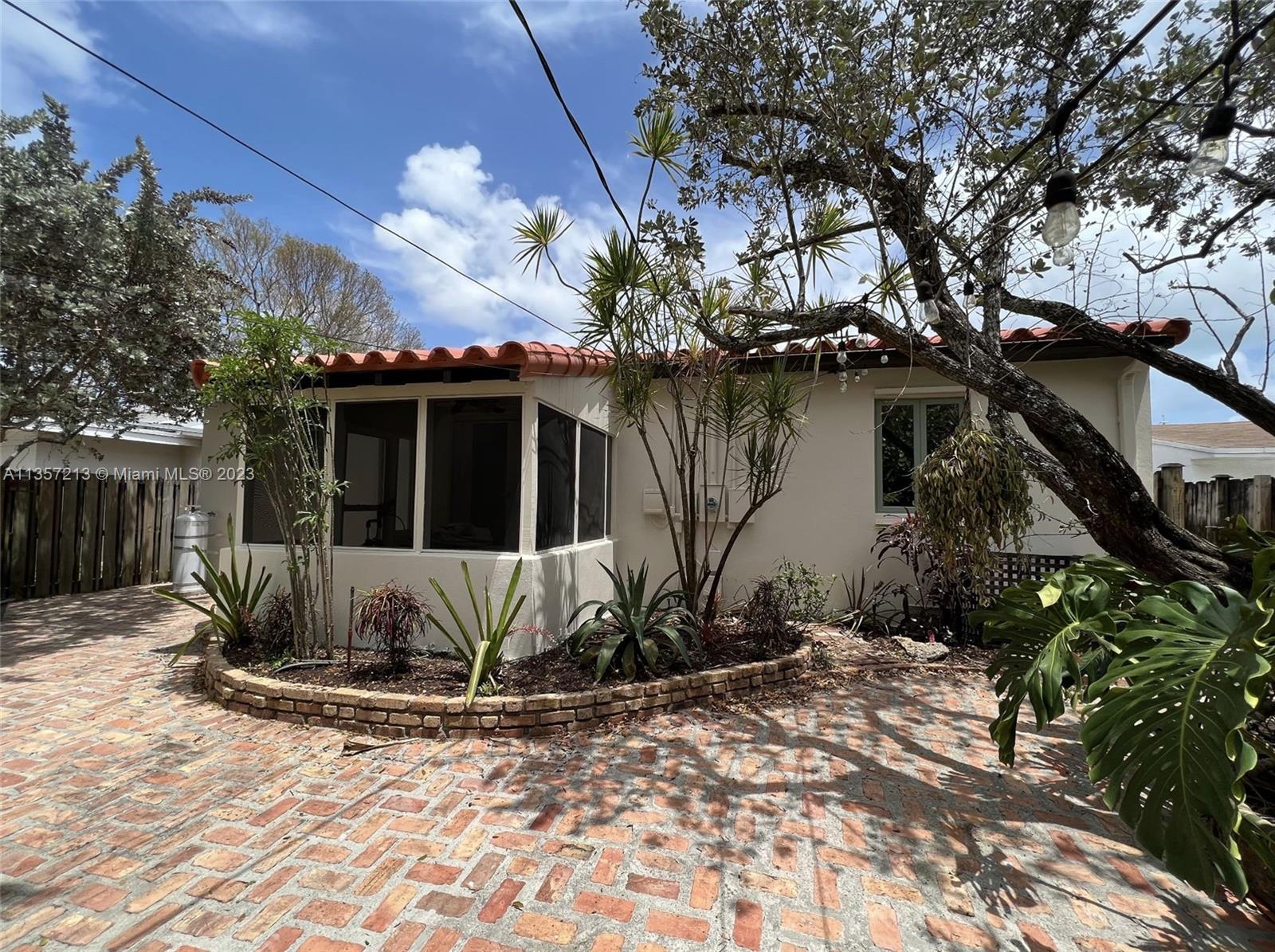 Looking for a peaceful, naturesque garden home? You've found it! Aptly named "La Casita", this charming single family home has been renovated to highlight it's original features, but with a modern touch. Curved archways lead you to the bedrooms and dining room. Original wood floors span the open living and dining rooms. The green kitchen backsplash + refinished cabinets add to the home's character. The bathroom has been recently renovated - a fresh contrast to the rest of the home. Centrally located - minutes from everything! Enjoy a handpicked mango underneath the lush shade of the backyard, or within the screened-in porch. The red brick paved garden area perfectly suites the home's unique style. The artificial turf is perfect for playtime. Keep your outdoor toys in the matching shed.