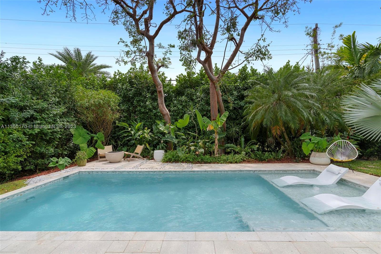 Welcome to your new home, a true tropical oasis, featuring a salt water pool where you can lavishly entertain rain or shine underneath the retractable pergola featuring a built-in outdoor grill, refrigerator and bar. Lush greenery and mature trees provide privacy and tranquility. This Coral Gables 2/1 home is a perfect blend of modern amenities and classic charm featuring a chef's kitchen; Miele appliances; quartz countertops; Waterworks bathroom fixtures; and original fireplace. The living room is bright and airy, with large windows that let in plenty of natural light. The living room seamlessly transitions into the dining area and open kitchen which is perfect for hosting family gatherings and dinner parties. Garage converted as a den/office and laundry room. New roof 2017, HVAC 2020.
