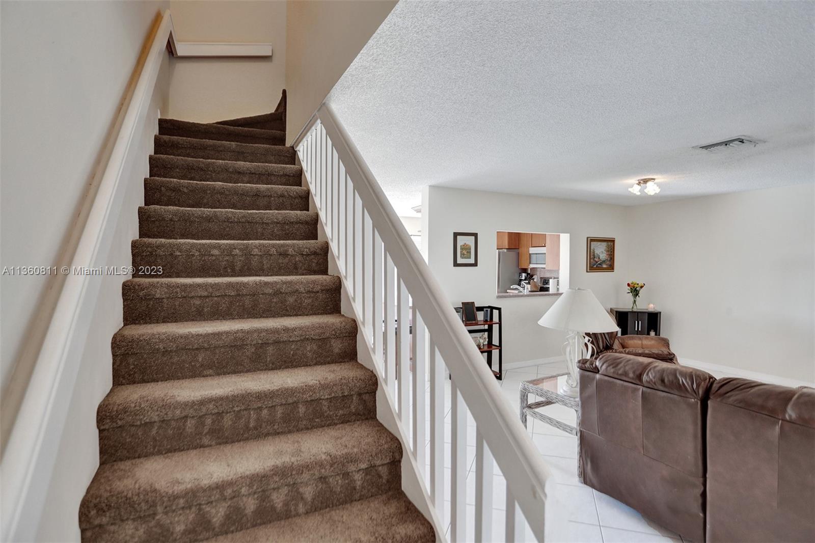 Real South Florida Sunsets views from this fabulous 3/2 townhome ready for new owners. Enjoy private fenced in patio with deck. All bedrooms located up stairs with beautiful wood flooring throughout and vaulted ceilings. Great community, pool, close to good schools, shopping and highways. Perfect for first time home buyers! ***OPEN HOUSE SATURDAY- March 25, 12- 3pm***