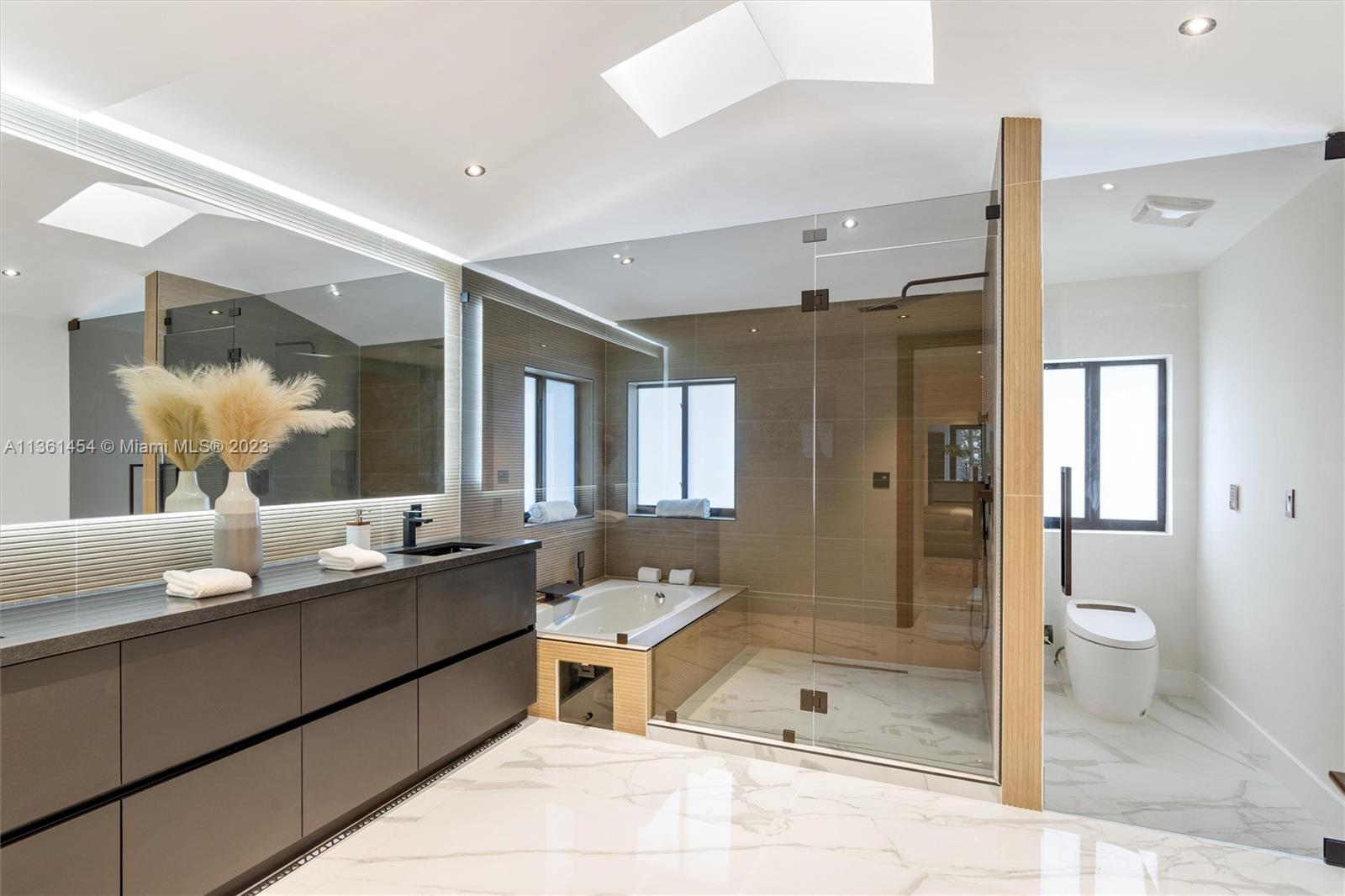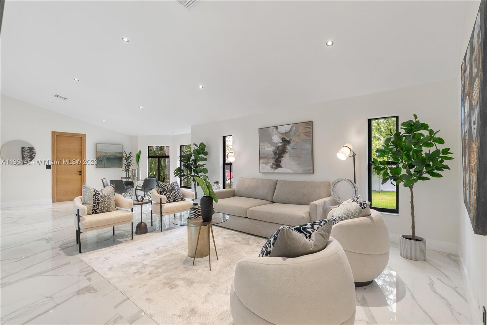 Exquisitely remodeled and turn-key 5 bedroom plus office, 6 bathroom Estate in rarely available Plantation Acres. This gorgeous property features an European style kitchen equipped with top of the line Subzero and Wolf appliances. 25 ft ceilings greet you as soon as you enter, making this estate seem 3x its size. 48x48 Calacatta tile throughout the entire home with the exception of European white oak floors in the bedrooms, all with their own en-suite bathrooms finished in ultra modern finishes. The master wing extends the length of the house and features privacy, access to the backyard, a bedroom sized walk in closet, and a fully custom bathroom with a jacuzzi tub. Not a single expense was spared designing and building this masterpiece. Come see this hidden gem! Hurry, will not last.