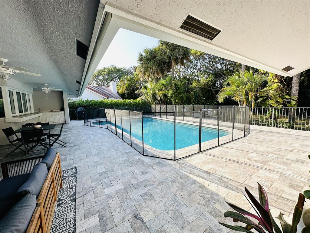 Step into this extraordinary Parkside 4bdr/3Ba home nestled on a large corner lot of a cul-de-sac. The home is remodeled with a beautiful kitchen overlooking the new pool patio, complete with quartz countertops, Samsung SS appliances, all wood soft close cabinets, and a glass wine closet that will wow your guests. All bathrooms have been updated, including a cabana bath and a luxurious primary on-suite. Vaulted ceilings, wall-to-wall sliding glass doors and sky lights fill the open floor plan home with natural light. Impact windows throughout, real wood floors, porcelain tile, Smart home system, & Ring Security. Close to the 95, fabulous restaurants, Sugar Sand Park, & the beach. This turn key home is a must see!
