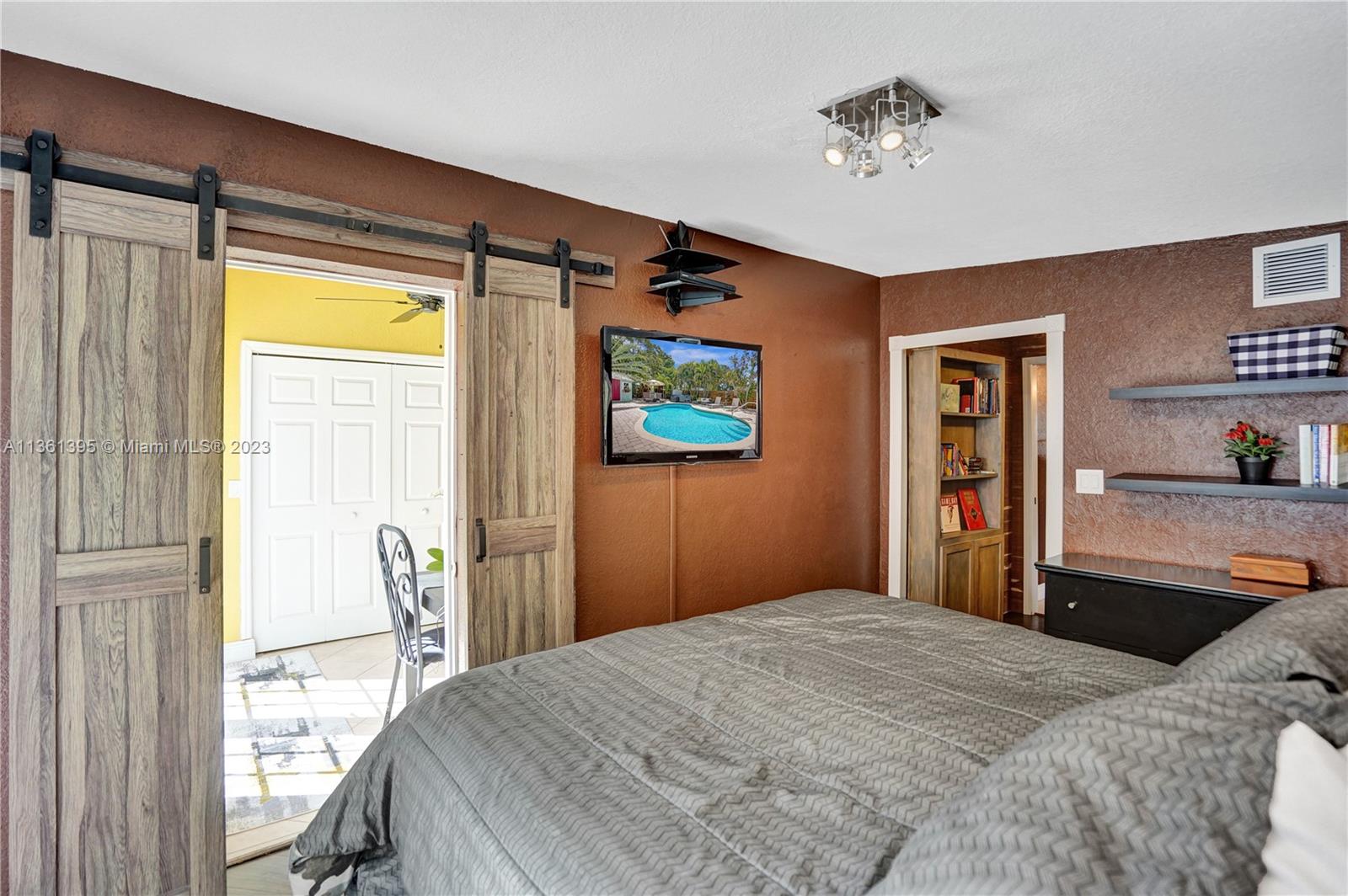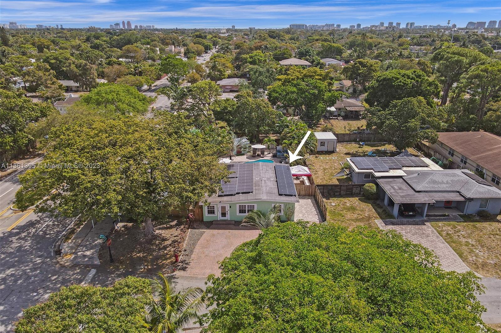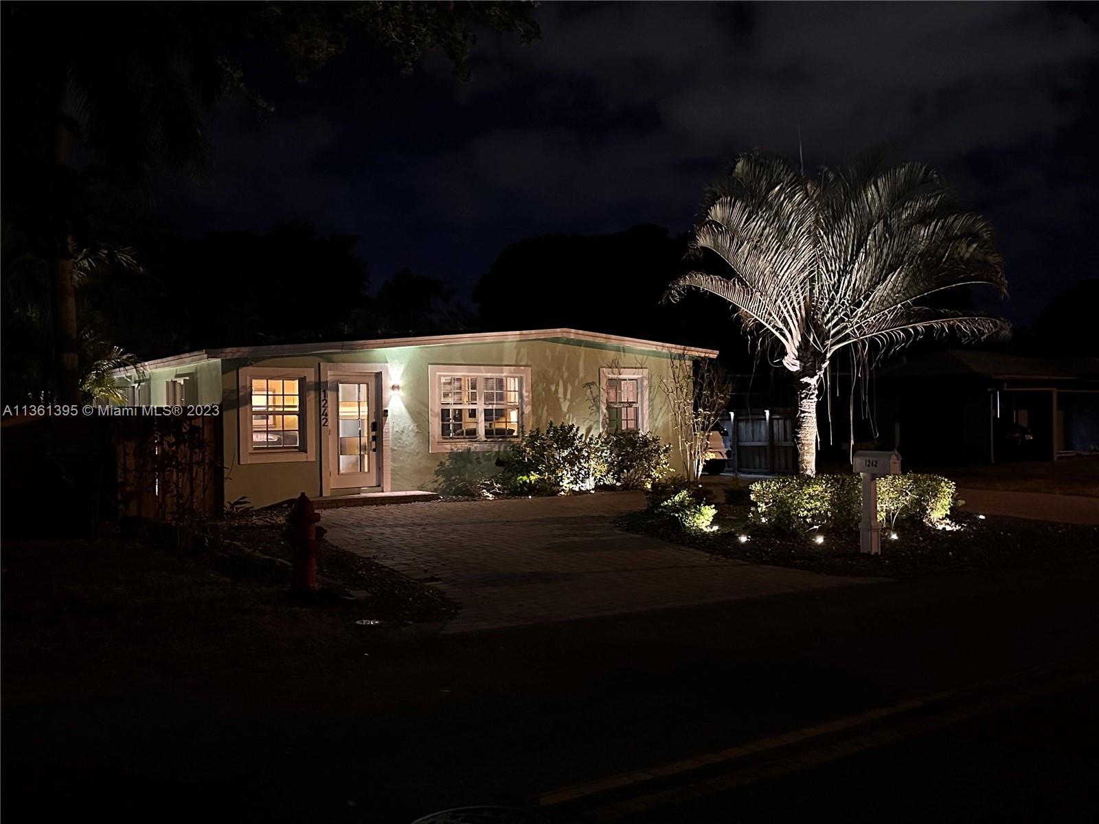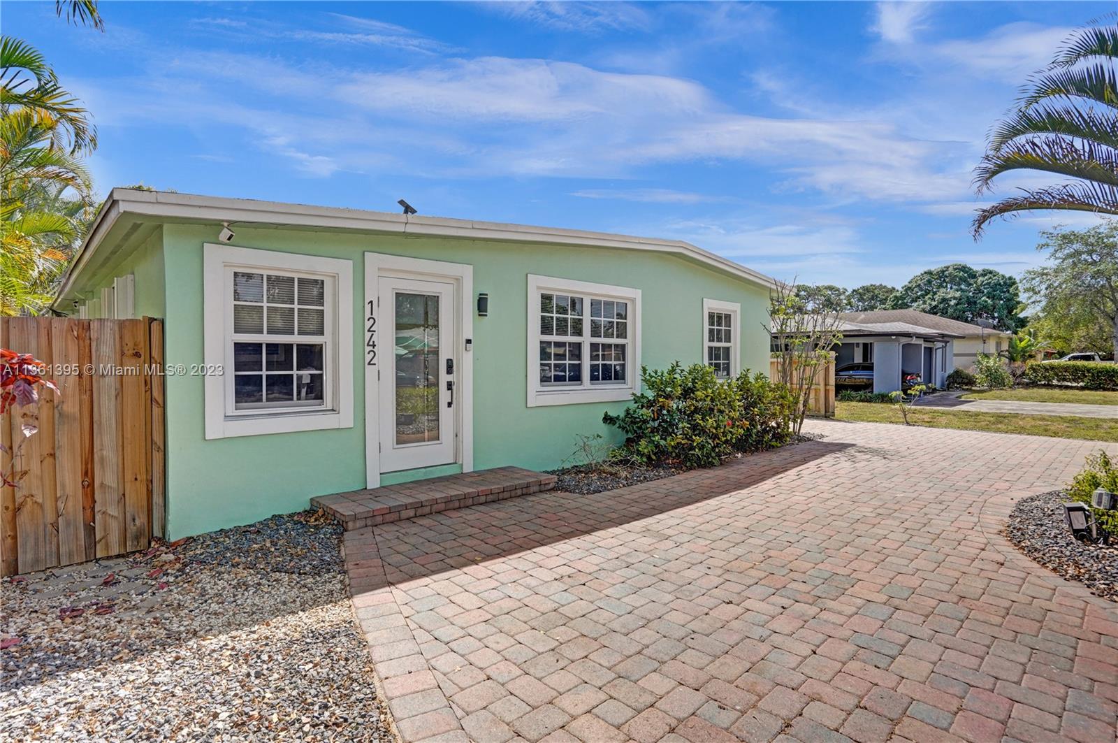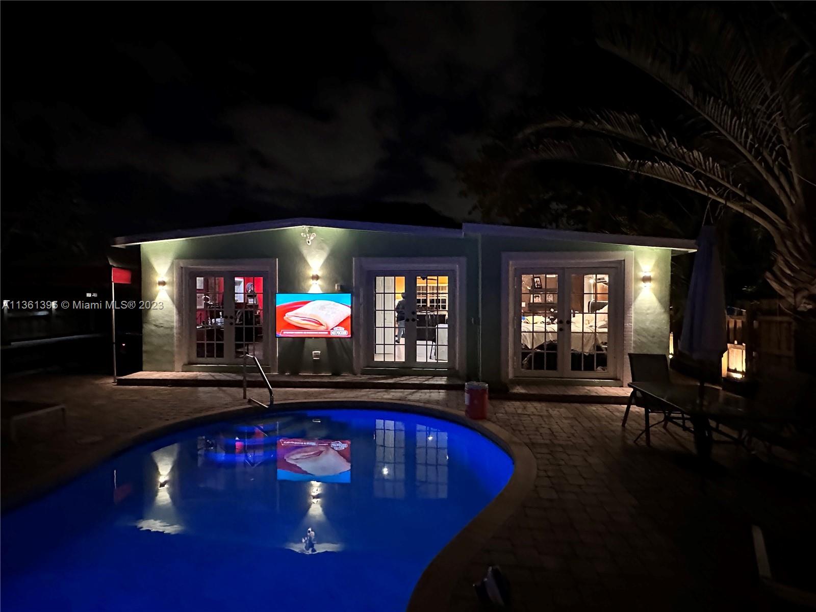 Live or Air B & B the Florida dream in this beautifully renovated 3/2 Pool Home plus cottage. This one has it all: 3 bedrooms 2 baths plus cottage, open plan, stunning updated kitchen and baths, large pool with heater and chiller, Hot Springs Spa, impact windows & doors & accordion panels, Tropical Kitchen, roof top whole house solar panels, car charging station, on demand tankless hot water, low maintenance tropical rock garden, 7 car parking. Open flexible living space and chef’s kitchen with stainless steel appliances and granite counters. The split bedroom plan ensures privacy for the primary bedroom. French doors from the Primary bedroom, main living, and guest bedroom lead to the garden oasis where you will splash, soak, relax, barbecue and dine amongst exotic palms and fruit trees.