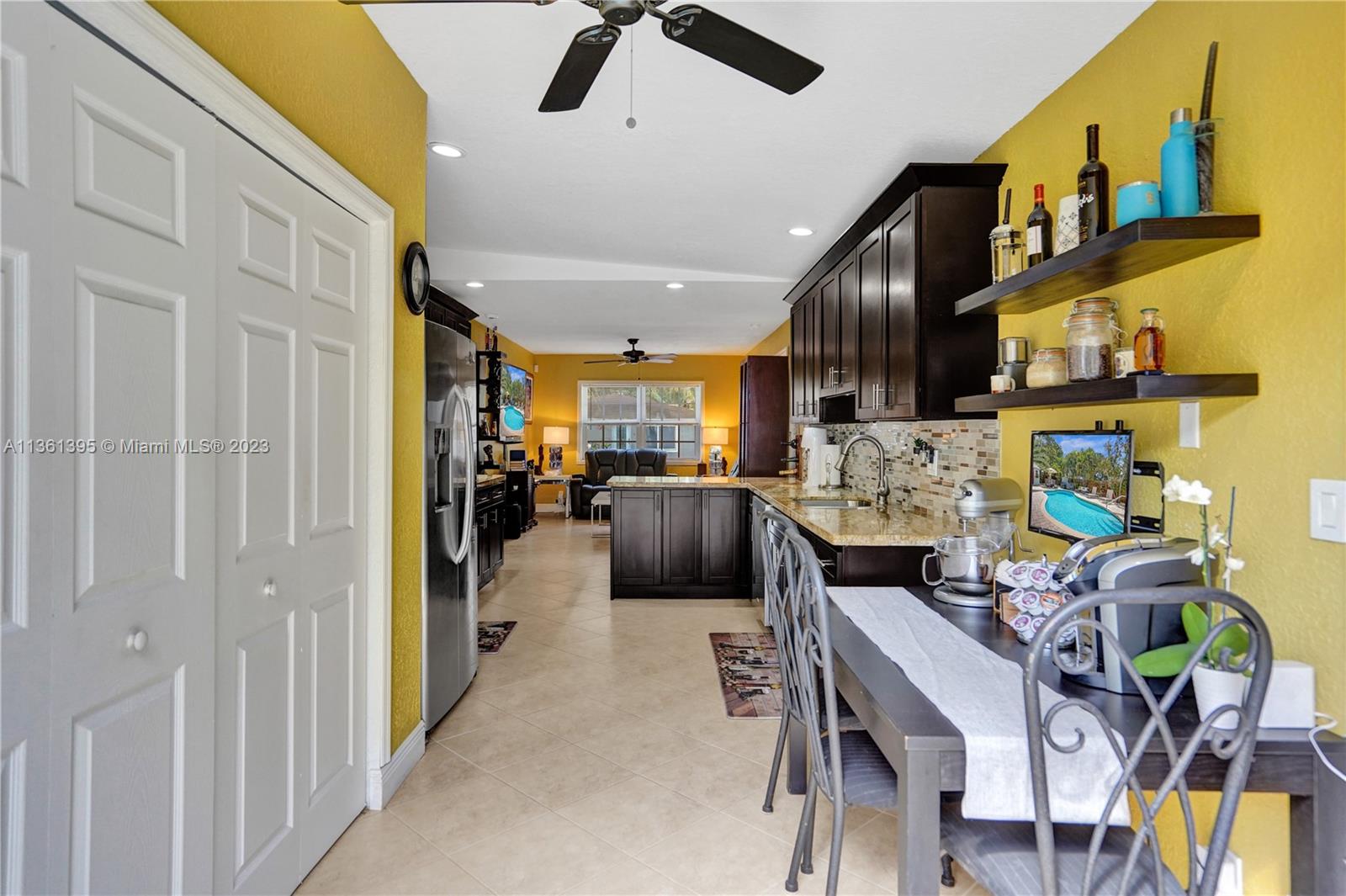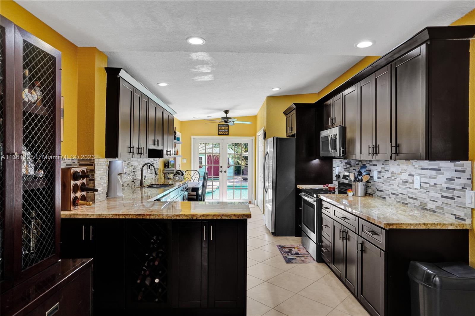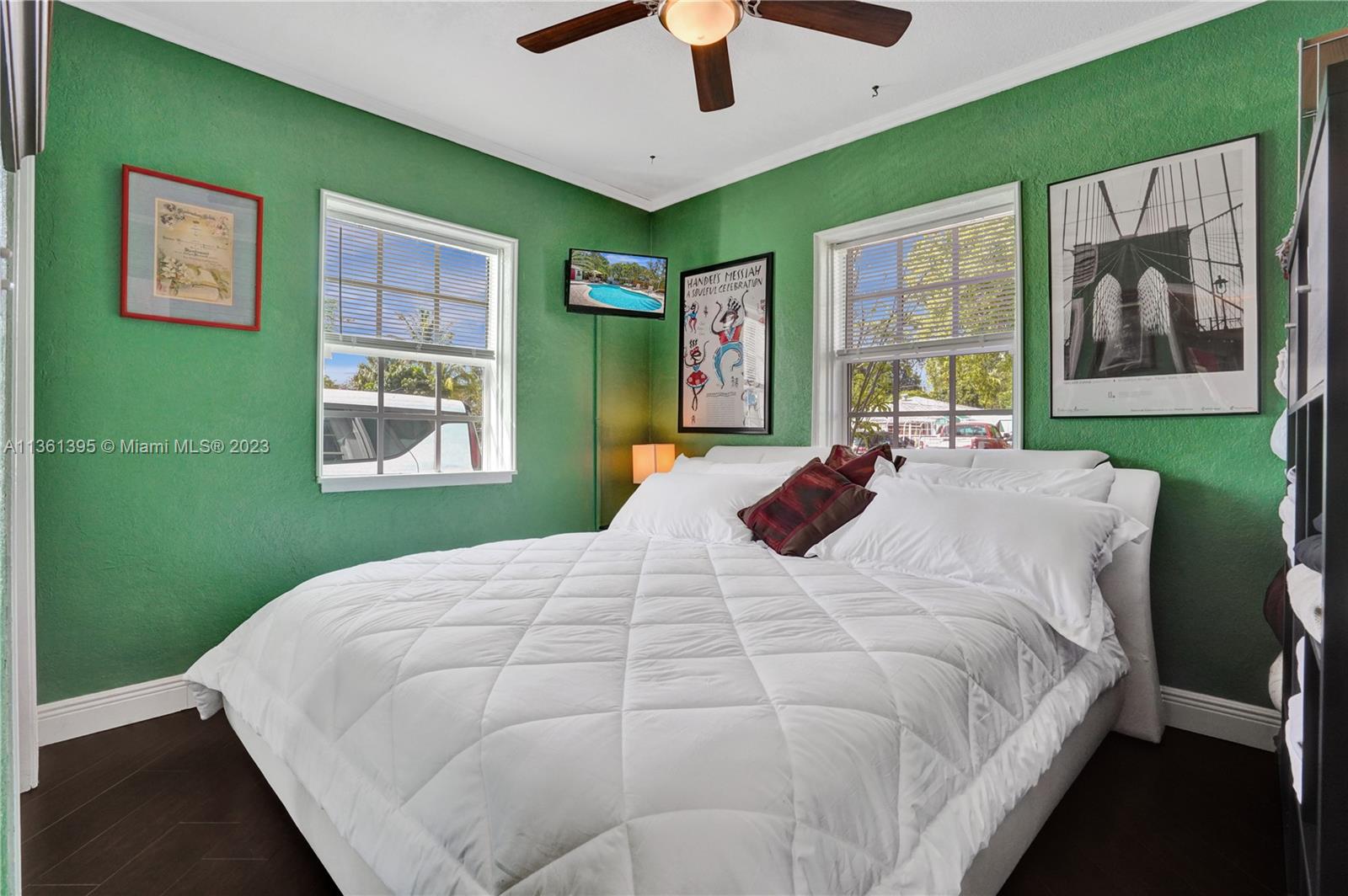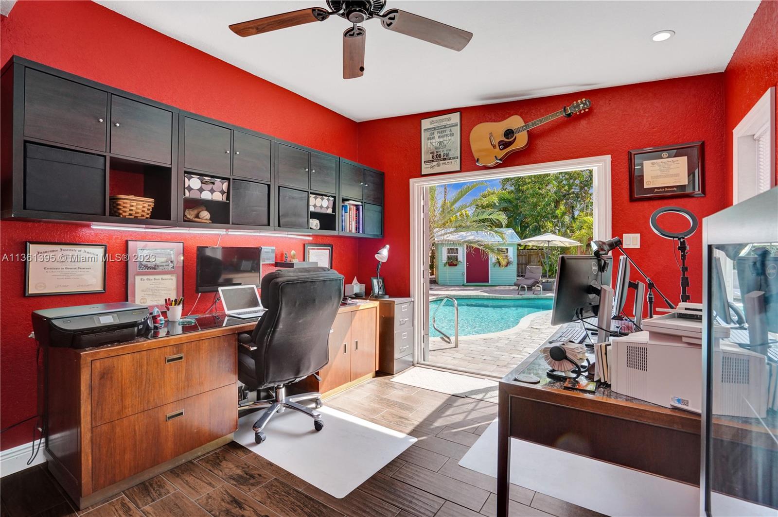 Live or Air B & B the Florida dream in this beautifully renovated 3/2 Pool Home plus cottage. This one has it all: 3 bedrooms 2 baths plus cottage, open plan, stunning updated kitchen and baths, large pool with heater and chiller, Hot Springs Spa, impact windows & doors & accordion panels, Tropical Kitchen, roof top whole house solar panels, car charging station, on demand tankless hot water, low maintenance tropical rock garden, 7 car parking. Open flexible living space and chef’s kitchen with stainless steel appliances and granite counters. The split bedroom plan ensures privacy for the primary bedroom. French doors from the Primary bedroom, main living, and guest bedroom lead to the garden oasis where you will splash, soak, relax, barbecue and dine amongst exotic palms and fruit trees.