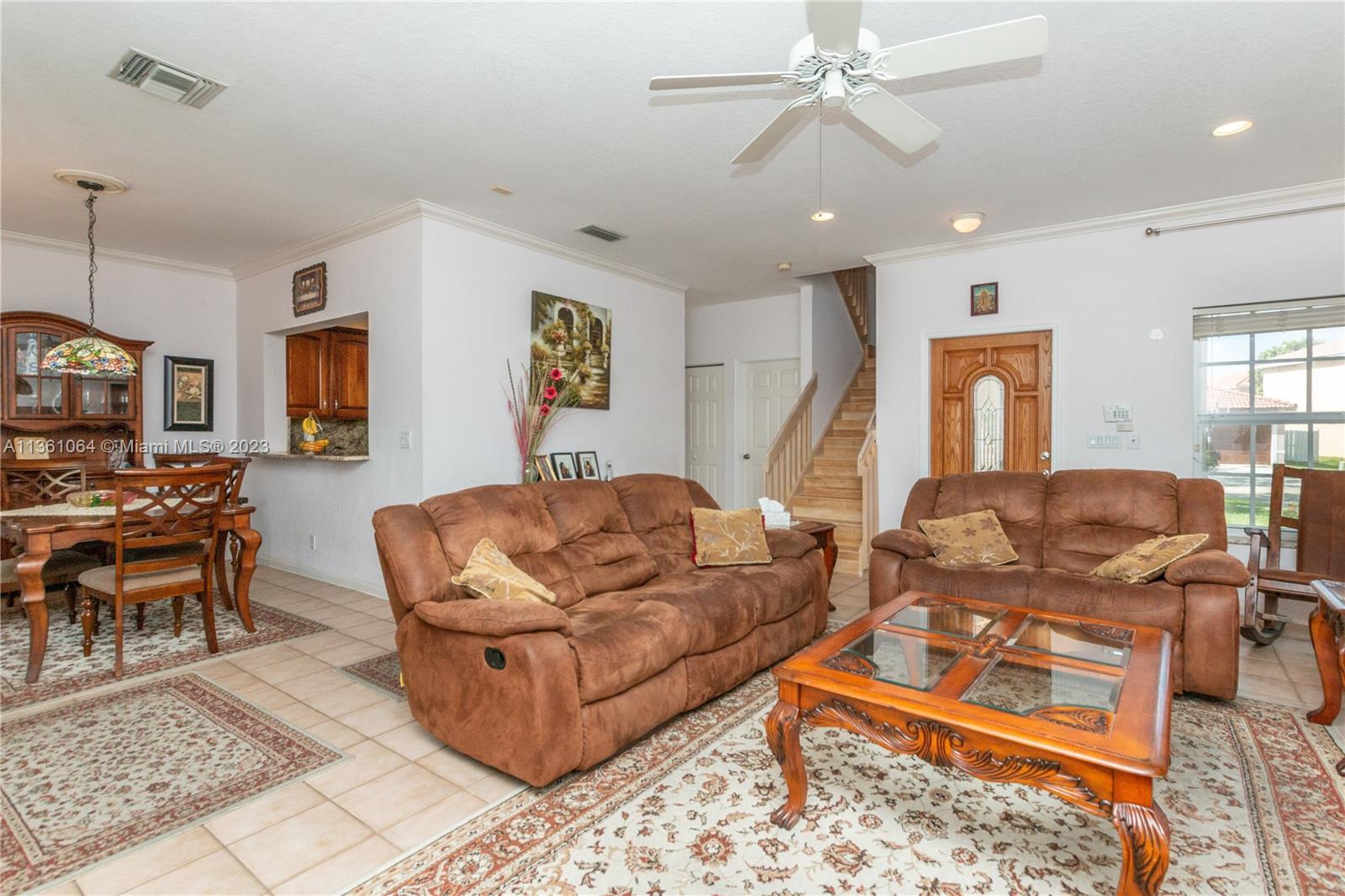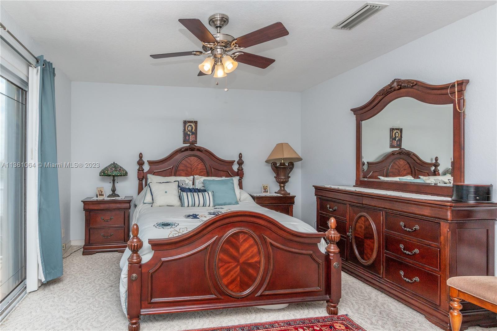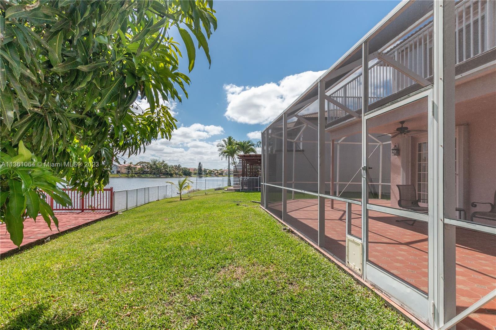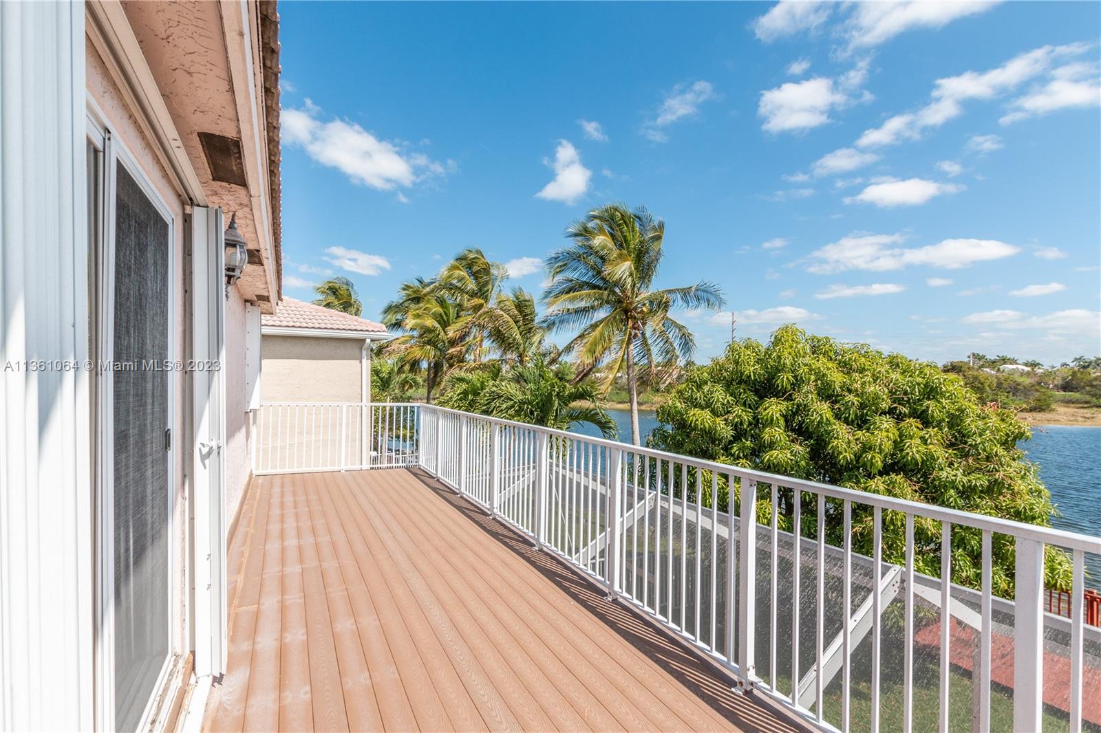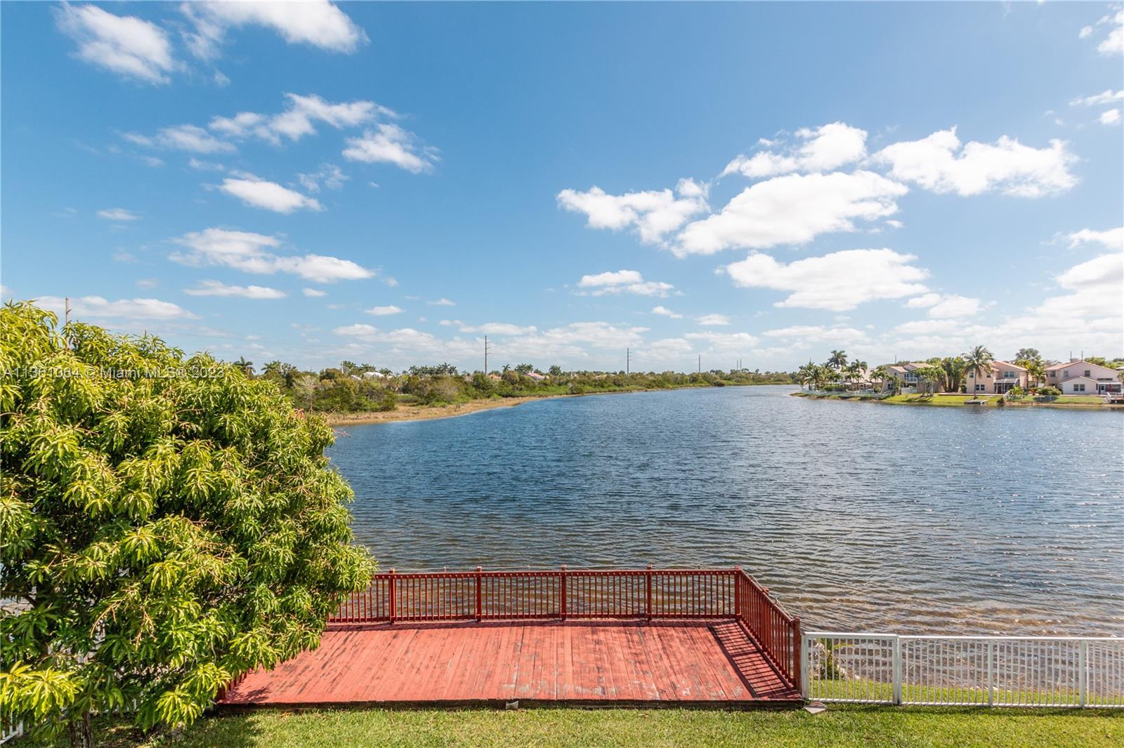 You won't find a better view than this house on the lake. Beautiful 2 story corner lot home with the biggest backyards in the neighborhood. Screened in patio, wooden dock, and more than enough space for a pool. Large primary bedroom with walk in closet, updated bathroom and massive private balcony. overlooking the lake. Impact window plus accordion shutters, recently changed A/C, sprinklers that pump water from the lake so low water bill, and a mango tree that can feed an army. House is in great shape and well taken care of. Separate fridge and freezer in garage do not convey.