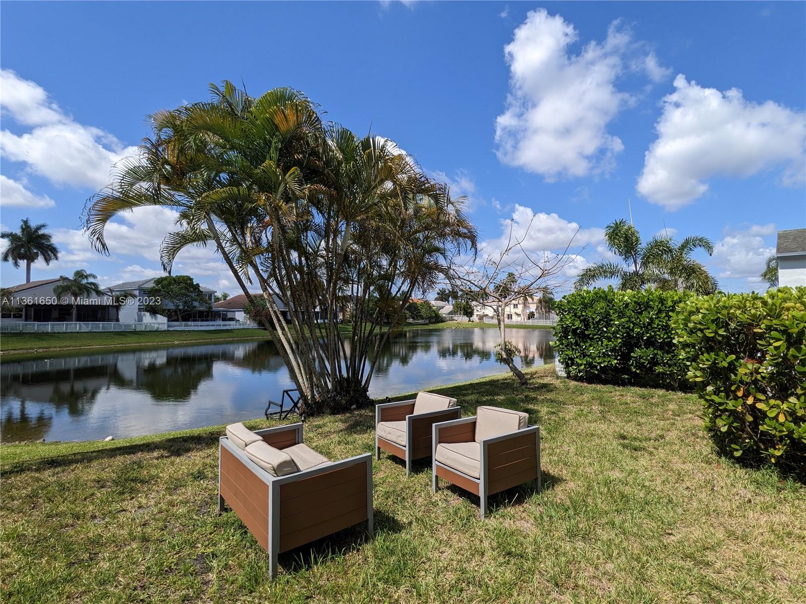 Back in Market as buyer coud not obtain financing. LAKE FRONT 2 story home in a quiet cul de sac in the highly sought after community of Shenandoah. Lake views from living room, kitchen and master bedroom where you will enjoy amazing sunrises and sunsets! The backyard has beautiful vegetation offering an oasis of relaxation perfect for family gatherings. Vaulted ceilings and french doors in living room and kitchen bring natural light throughout the main areas. Master bedroom and bathroom on ground floor. Many improvements: Exterior paint 2022, Dishwasher/refrigerator 2021, Hurricane impact windows/doors 2020, Hurricane proof garage door 2014, Dryer 2020, Washer 2017, Water heater 2018, AC Handler 2019. Close to Sawgrass Mall, A+ rated schools, I-75 and I-595.